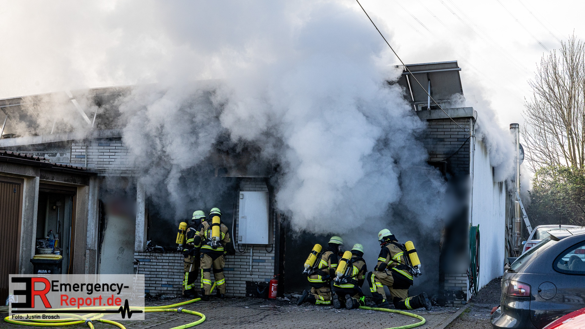 Am Donnerstagmorgen wurde die Feuerwehr Essen um 07:51 Uhr zu einem Brand in einer Kfz-Werkstatt an der Bäuminghausstraße in Essen-Altenssen-Süd alarmiert. Bereits auf der Anfahrt war eine deutliche Rauchsäule sichtbar. Beim Eintreffen der ersten Einsatzkräfte schlugen die Flammen sowohl aus dem Garagentor als auch aus angrenzenden Fenstern der Werkstatt. Das Gebäude war bereits stark verraucht.