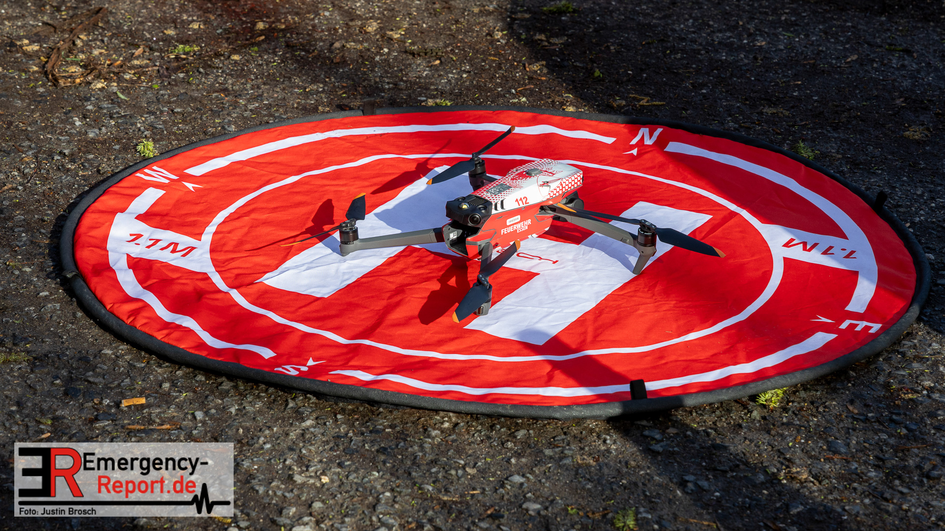 Zur Beurteilung der Lage kamen im weiteren Einsatzverlauf fortlaufend Drohnen zum Einsatz. Da eine Einsturzgefahr der Deckenkonstruktion nicht ausgeschlossen werden konnte, war ein Vorgehen im Inneren der Halle für die Einsatzkräfte nicht möglich.