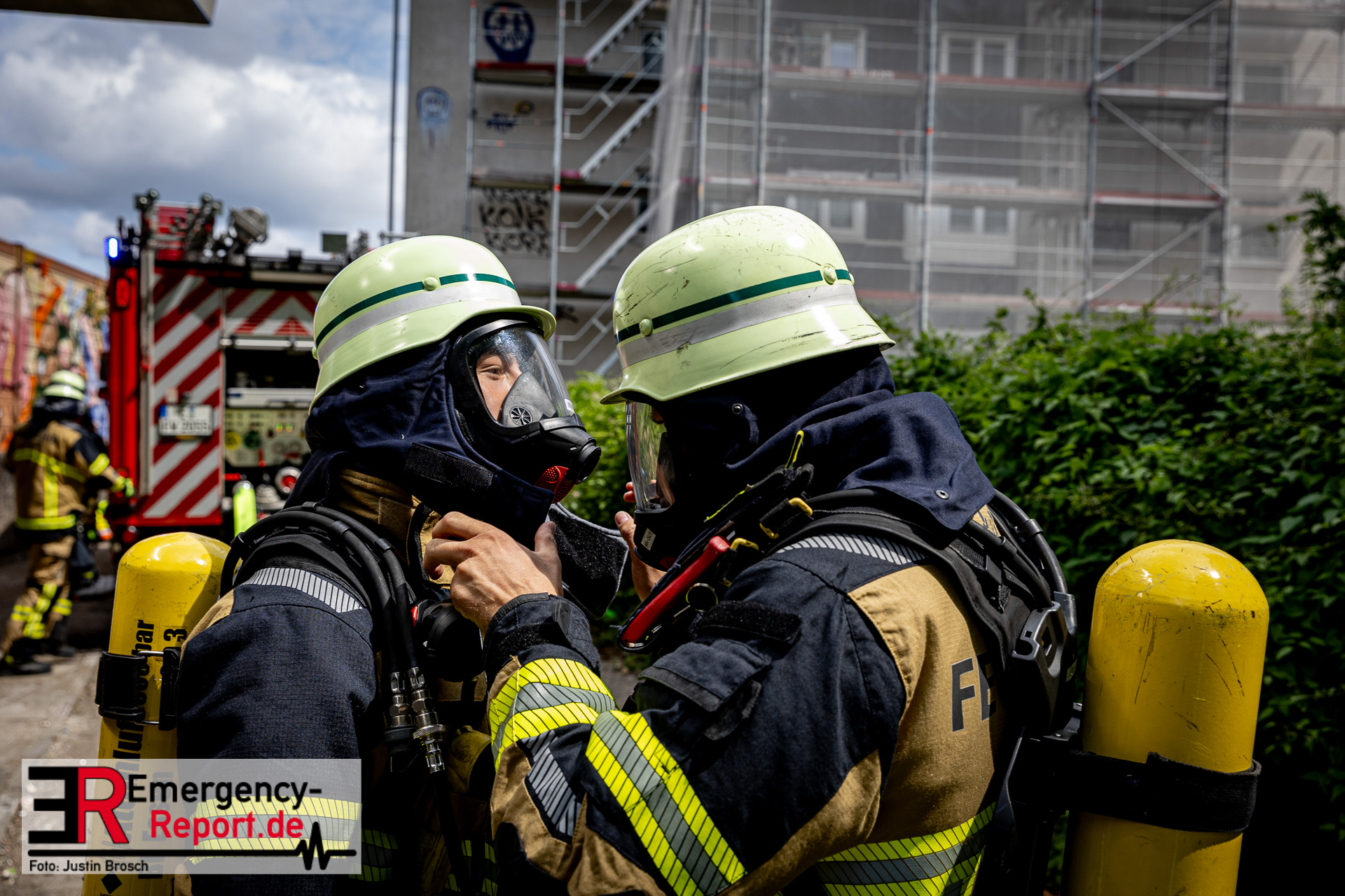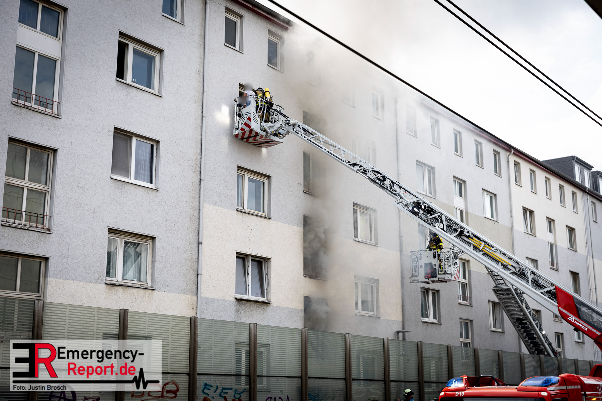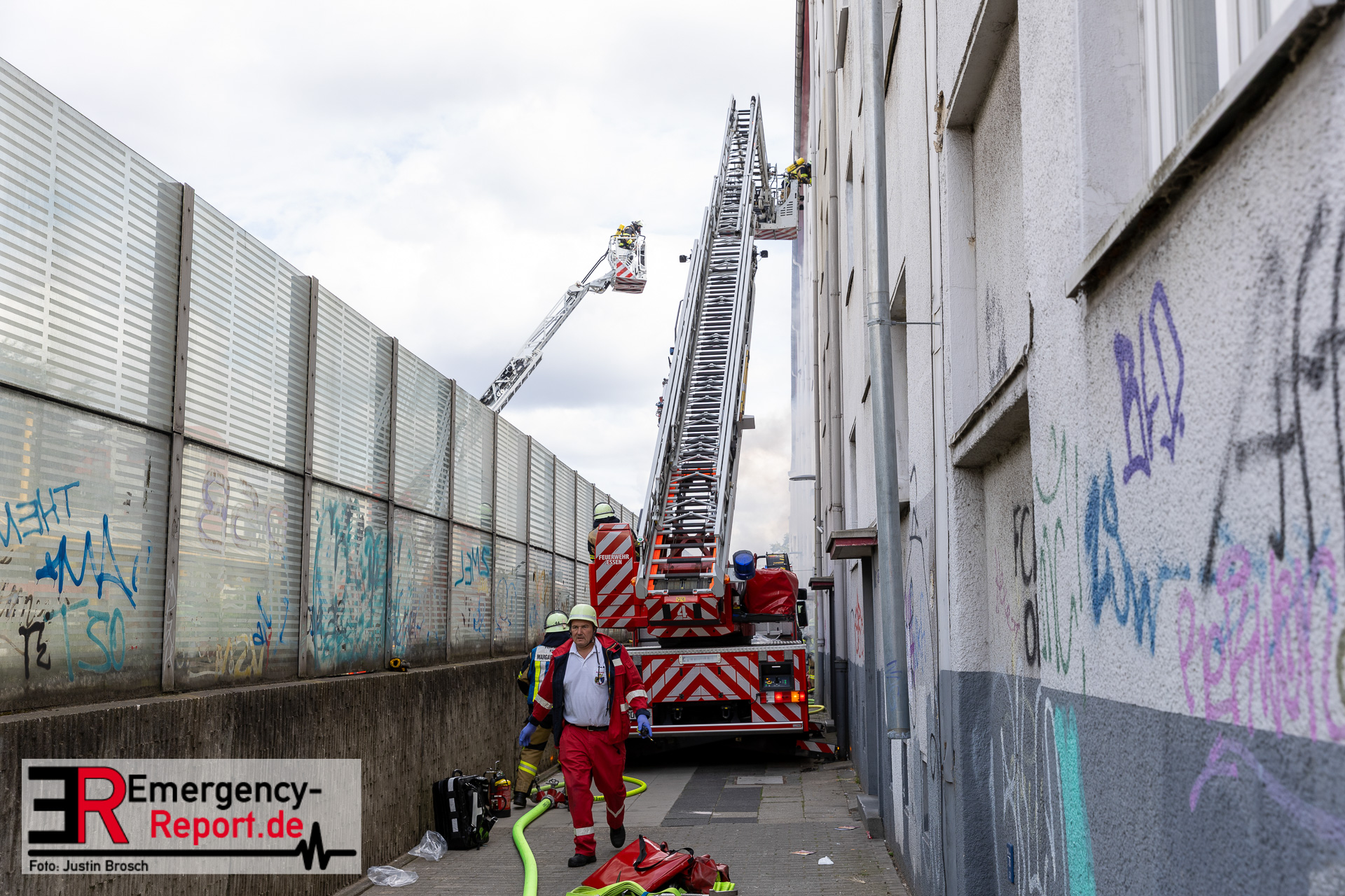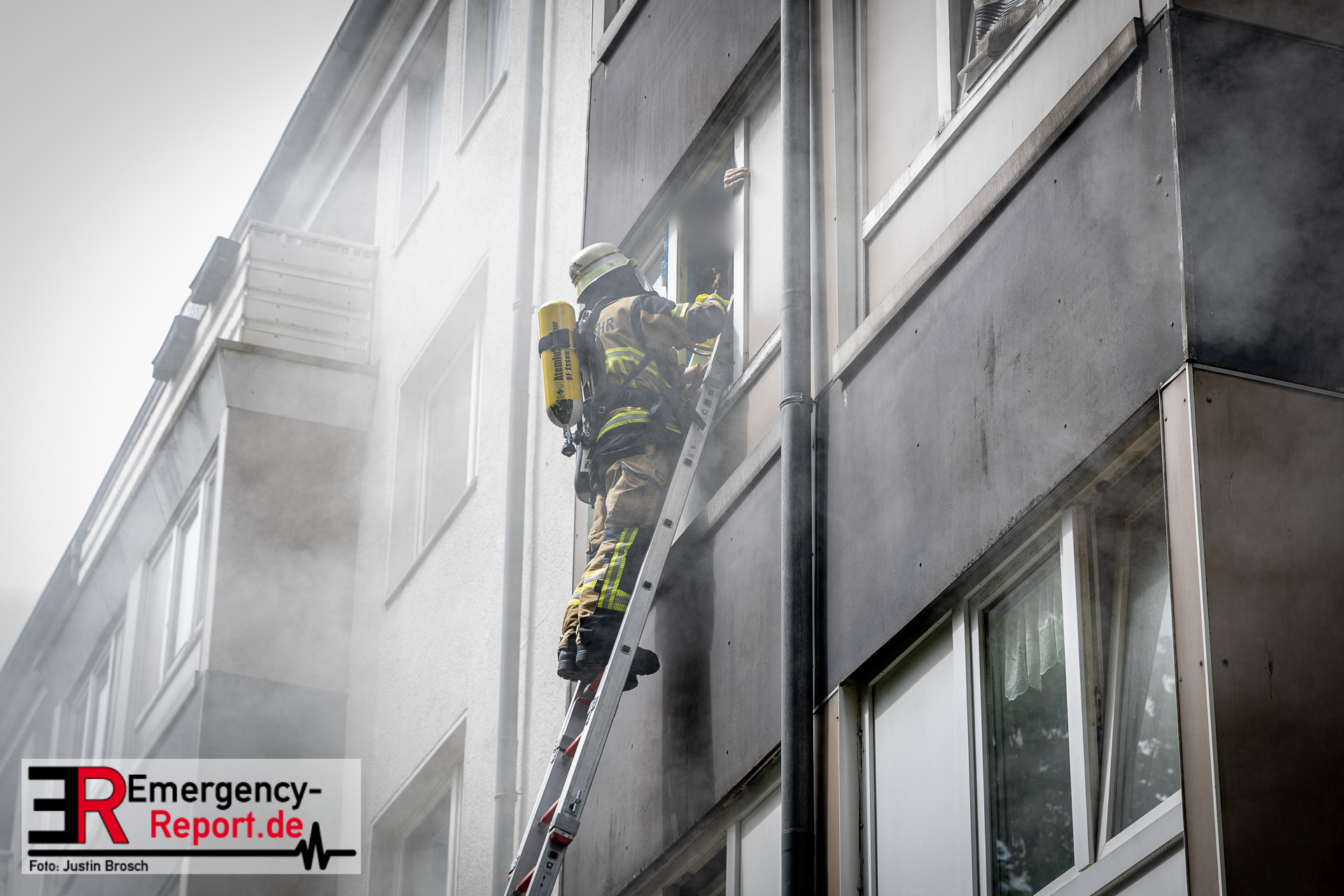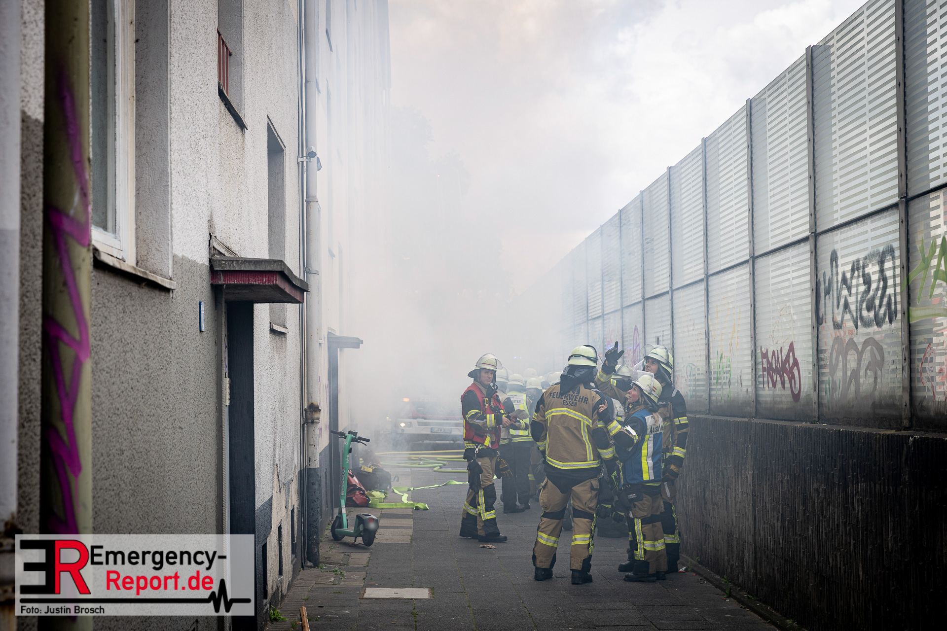 Im Innenhof kamen zudem tragbare Leitern zum Einsatz, um die von Brandrauch gefährdeten Personen aus ihren Wohnungen zu retten.