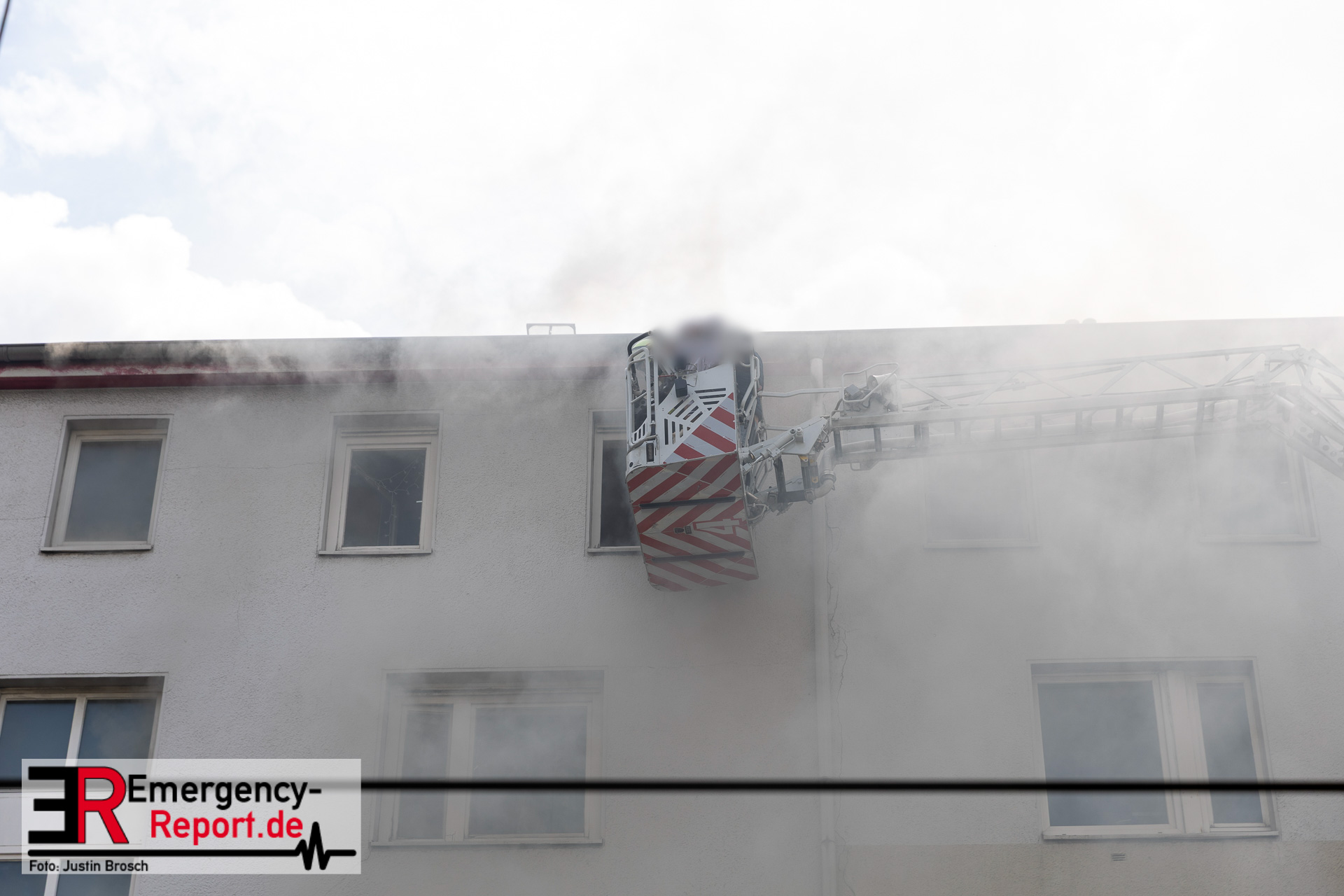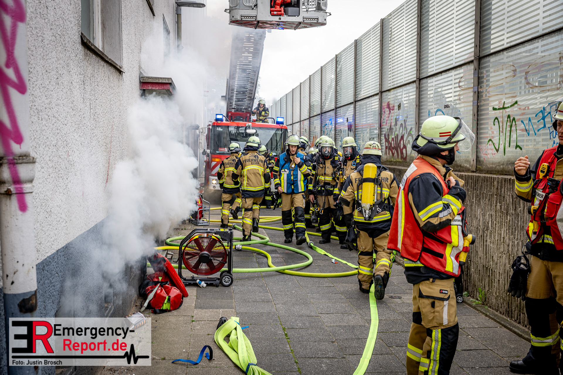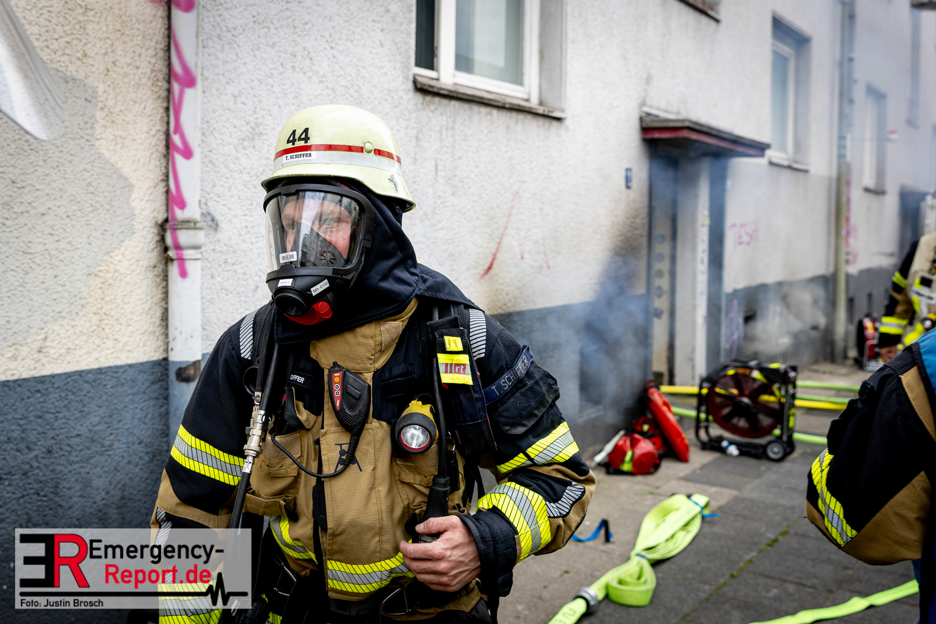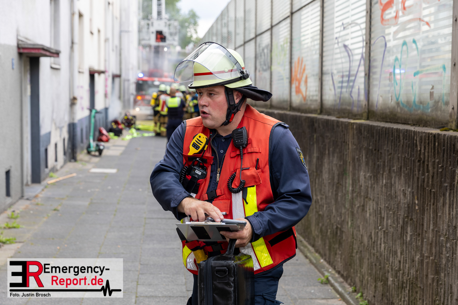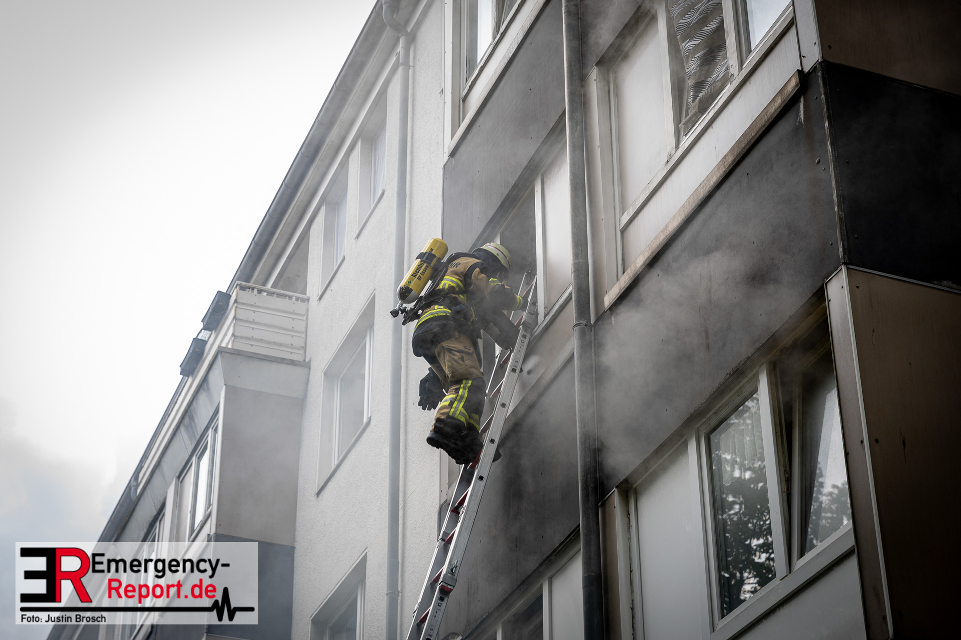 Im Innenhof kamen zudem tragbare Leitern zum Einsatz, um die von Brandrauch gefährdeten Personen aus ihren Wohnungen zu retten.
