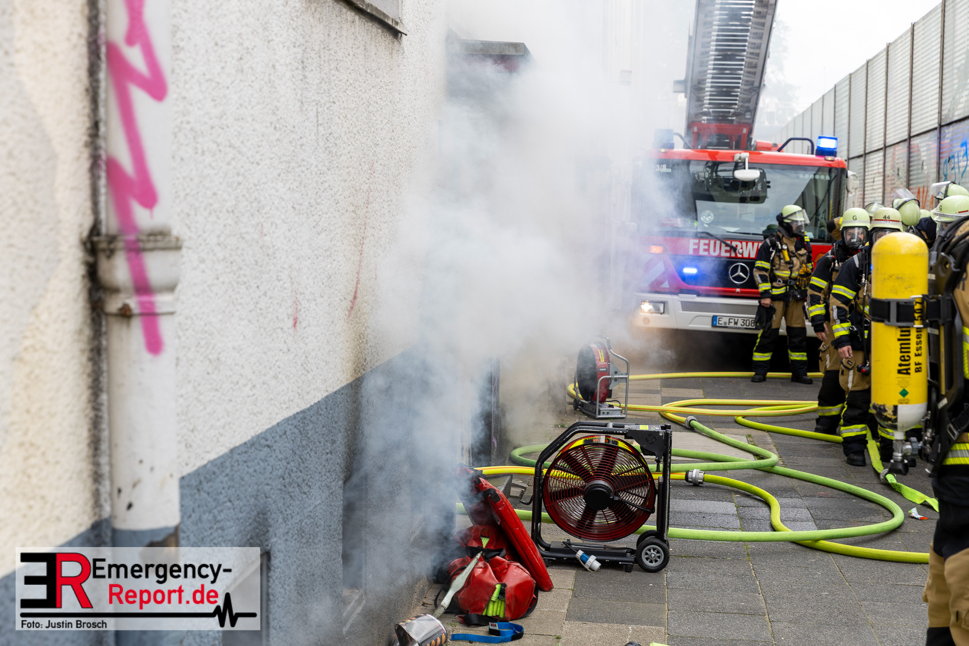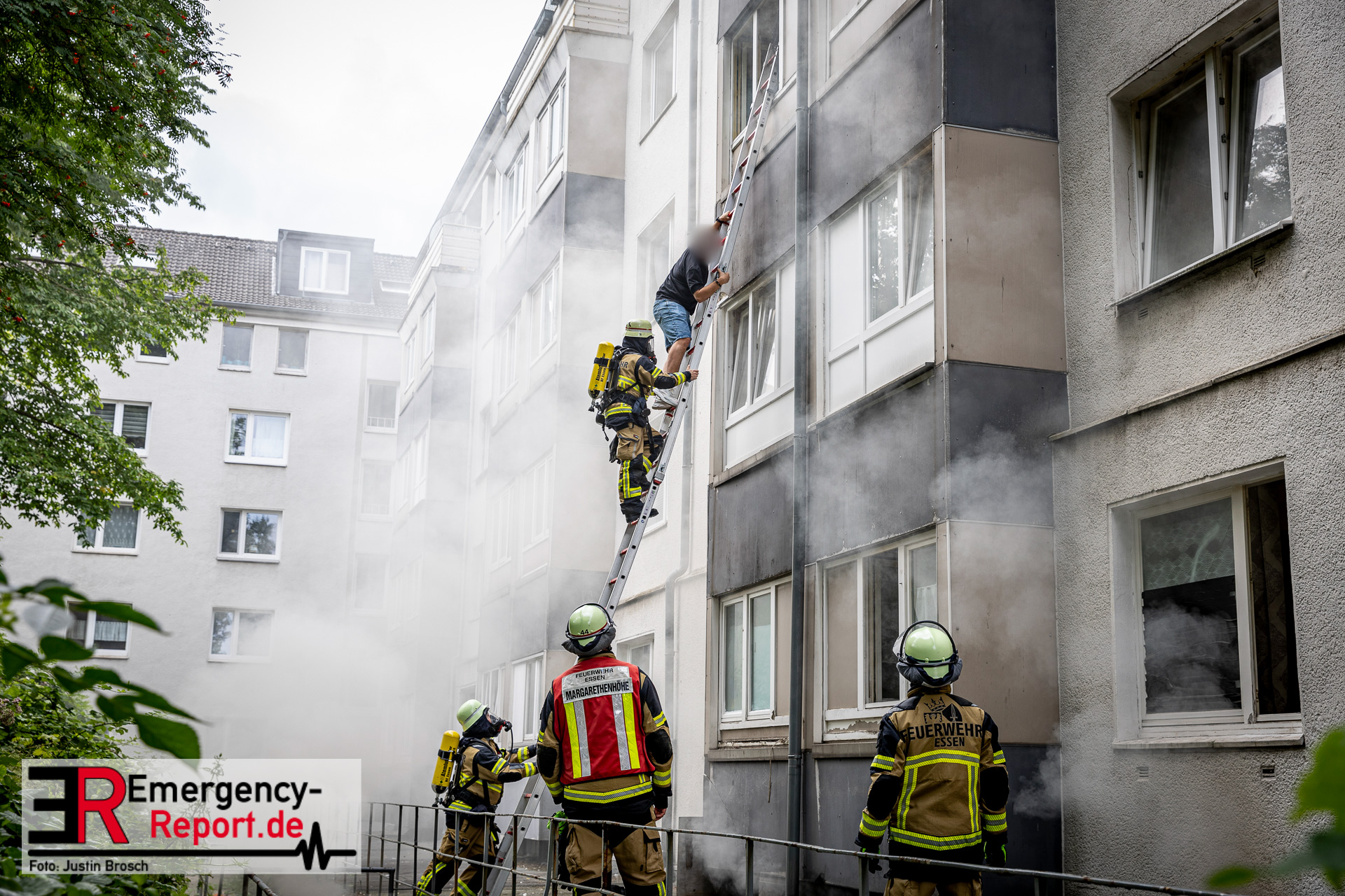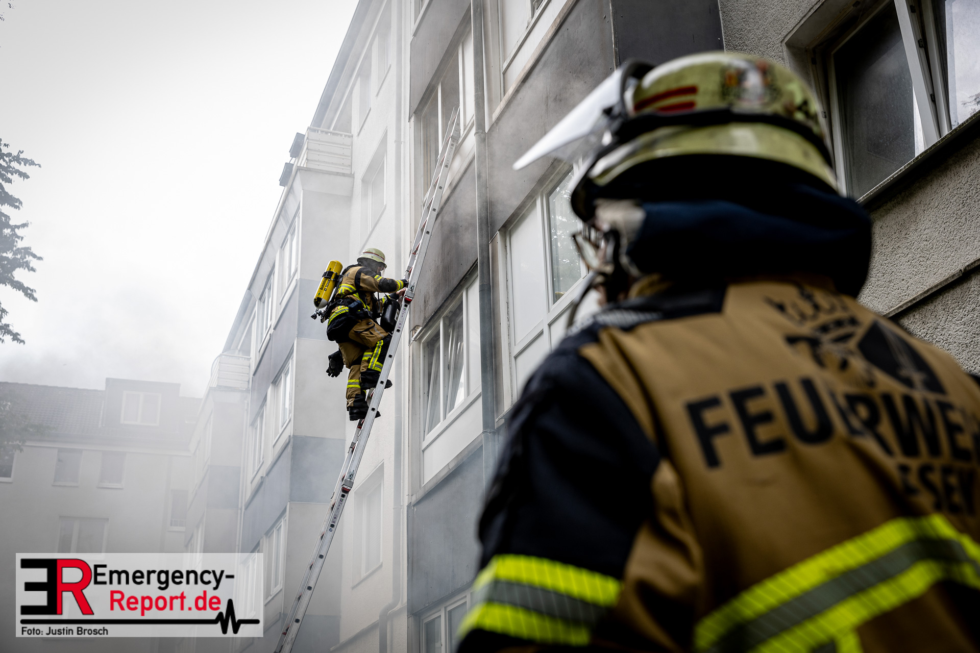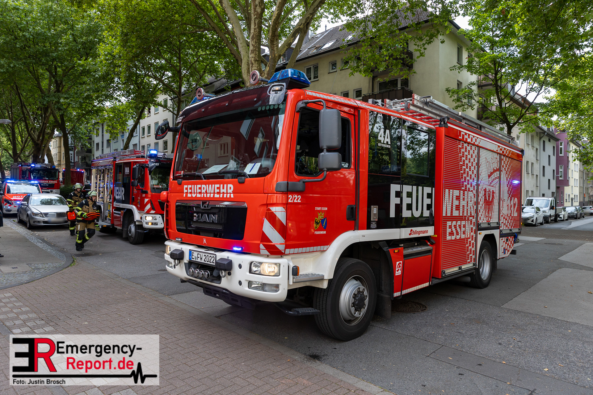 Essen (ots) – Am Sonntagnachmittag (27.07.2025) wurde die Feuerwehr Essen um 13:37 Uhr zu einem gemeldeten Kellerbrand in einem Mehrfamilienhaus an der Kruppstraße im Stadtteil Holsterhausen alarmiert. Bereits beim Notruf hieß es, dass sich noch mehrere Personen im Gebäude befänden und durch Rauch und Feuer eingeschlossen seien. Die Leitstelle alarmierte daraufhin sofort zwei Löschzüge sowie zahlreiche Kräfte des Rettungsdienstes.