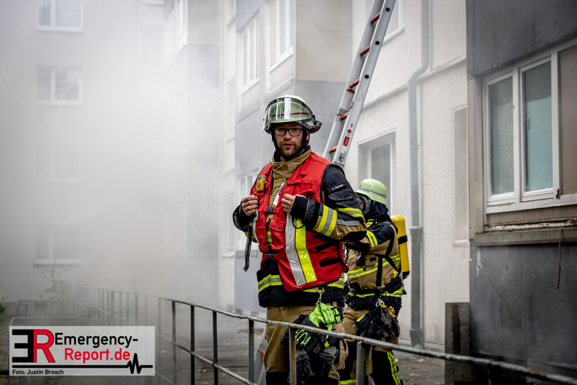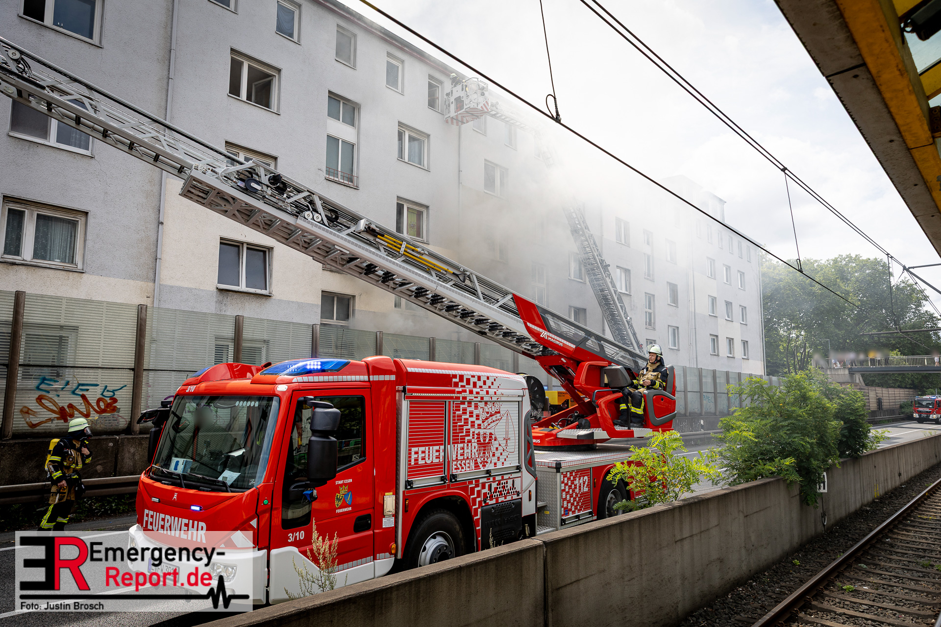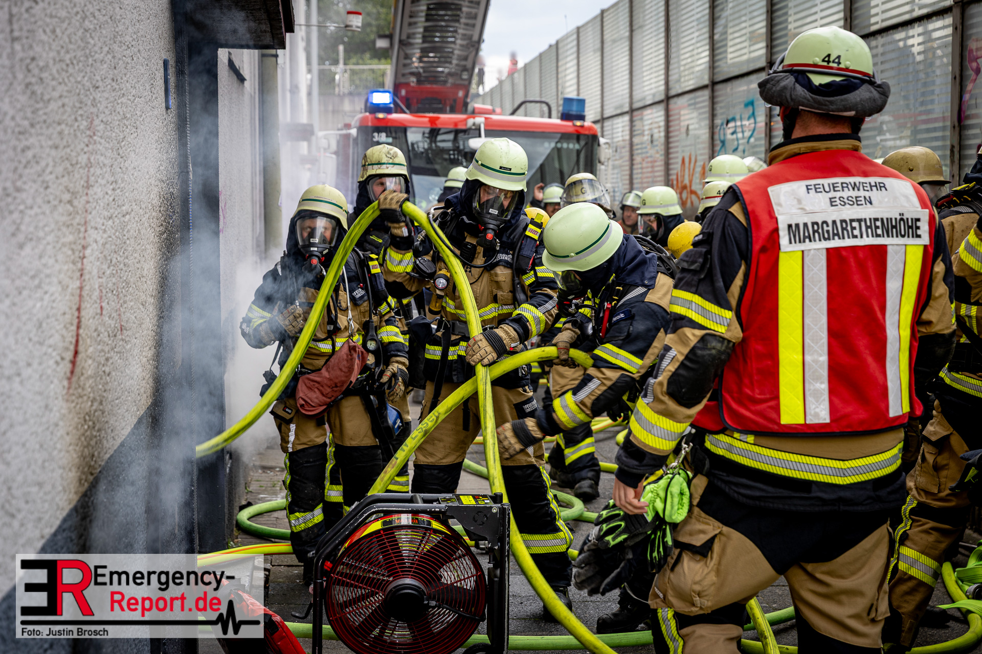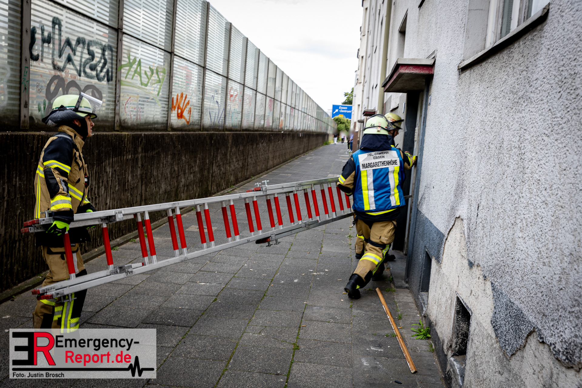 Essen (ots) – Am Sonntagnachmittag (27.07.2025) wurde die Feuerwehr Essen um 13:37 Uhr zu einem gemeldeten Kellerbrand in einem Mehrfamilienhaus an der Kruppstraße im Stadtteil Holsterhausen alarmiert. Bereits beim Notruf hieß es, dass sich noch mehrere Personen im Gebäude befänden und durch Rauch und Feuer eingeschlossen seien. Die Leitstelle alarmierte daraufhin sofort zwei Löschzüge sowie zahlreiche Kräfte des Rettungsdienstes.