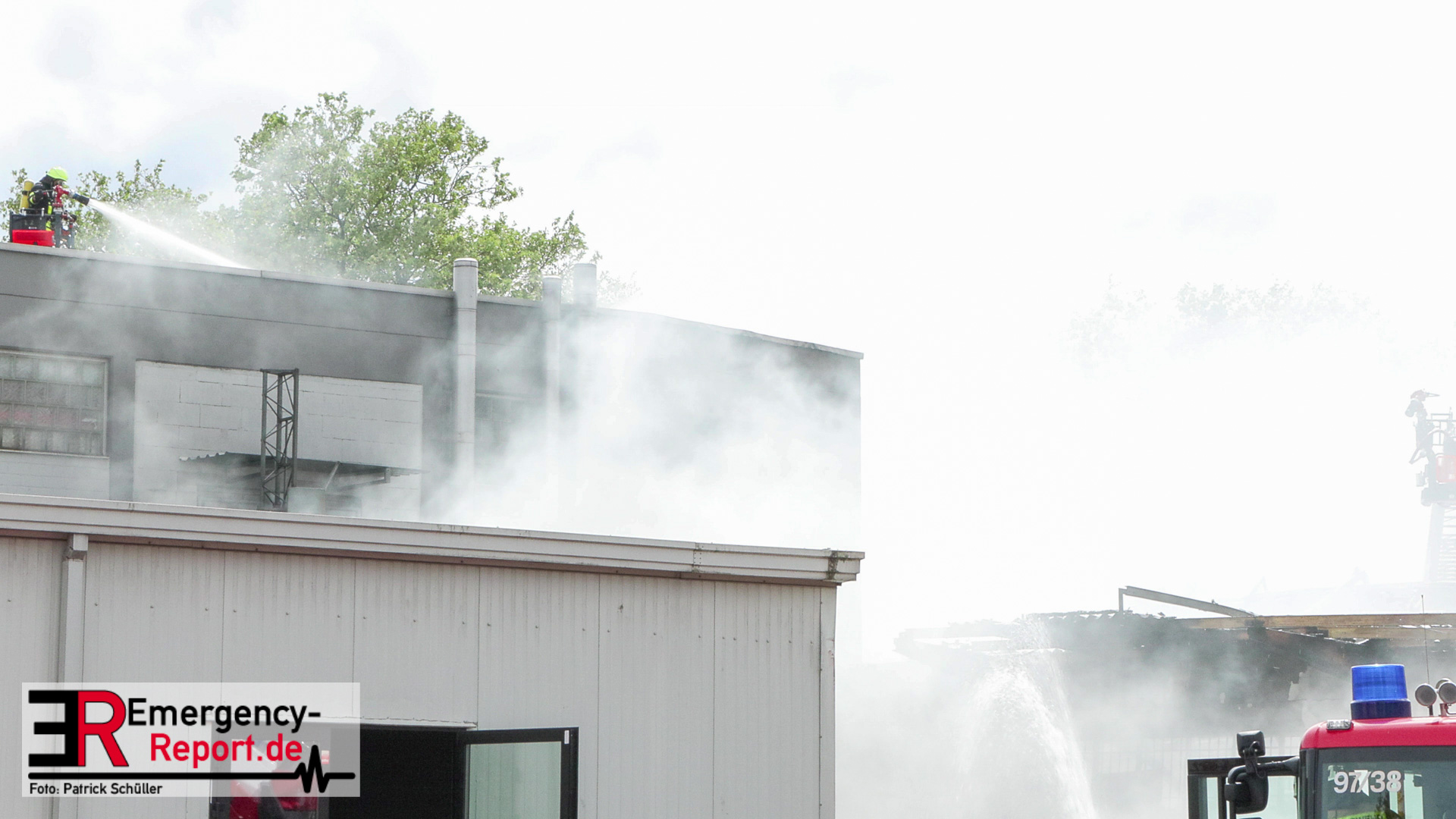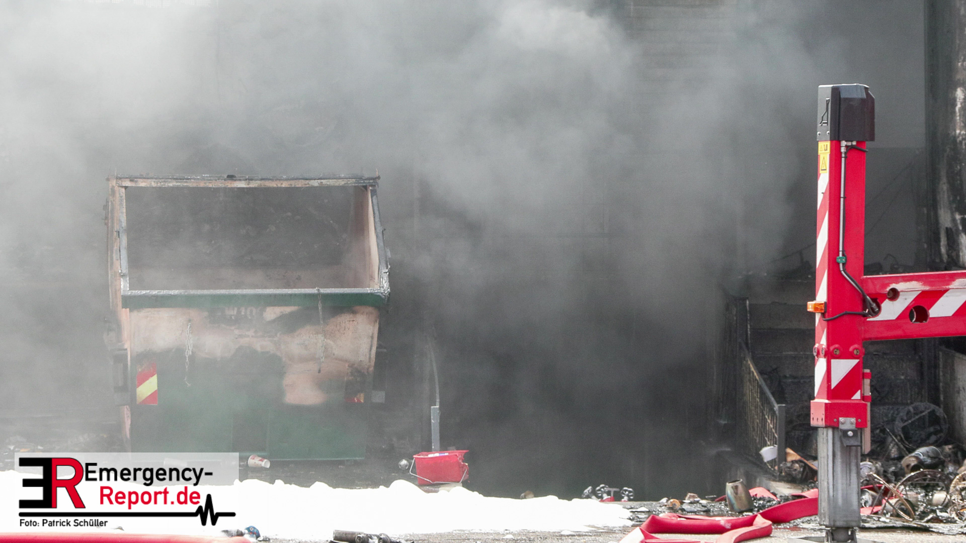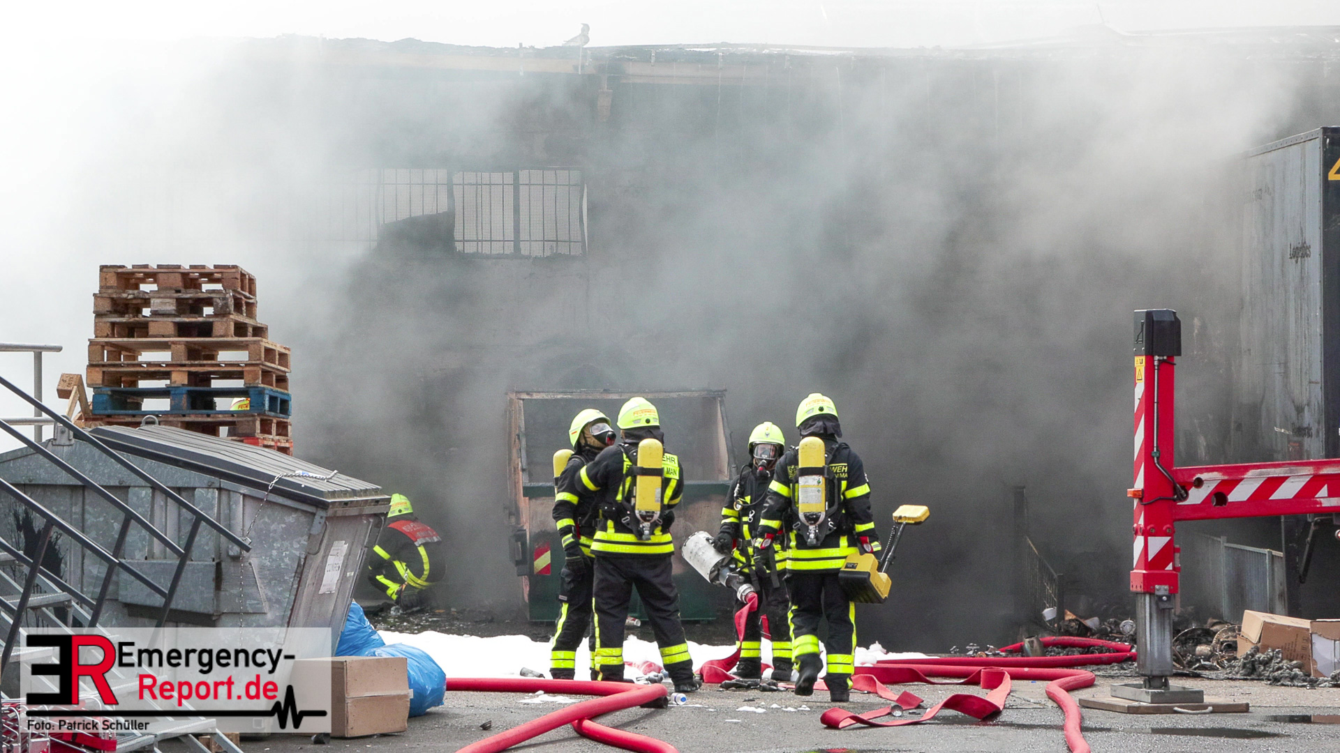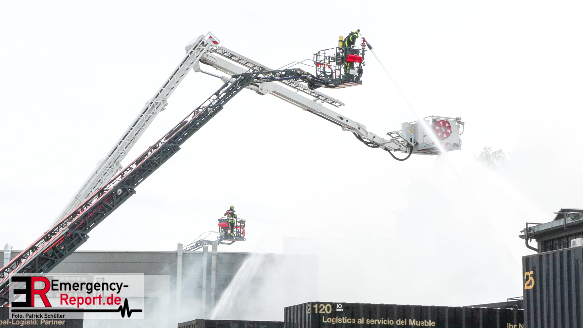 Gegen 13:00 Uhr (04.05.2024) erreichten viele Notrufe die Leitstelle der Feuerwehr Frankfurt am Main. Zahlreiche Menschen meldeten Flammen und Rauch aus einer Lagerhalle in der Lärchenstraße. Sofort wurde Großalarm für die Berufsfeuerwehr und die Freiwilligen Feuerwehren ausgelöst.