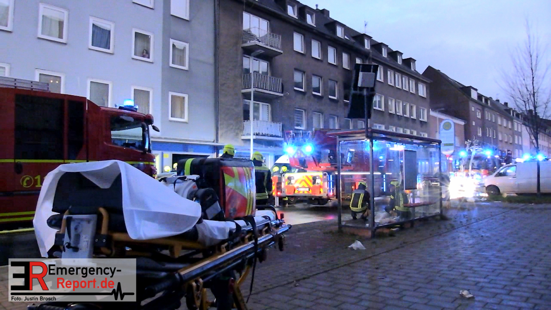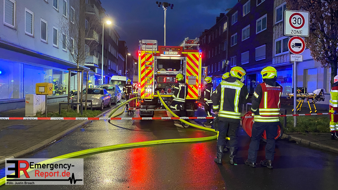 Am Sonntag (06.02.) gegen 17.20 Uhr wurde die Feuerwehr Gelsenkirchen zu einem Wohnungsbrand in die Schalker Straße nach GE-Schalke alarmiert. Bei Eintreffen der ersten Einsatzkräfte schlugen die Flammen bereits aus der Brandwohnung im 2.OG eines 3,5 geschossigen Wohn- und Geschäftshauses. Der Wohnungsinhaber war aus dem Fenster gesprungen und wurde durch Ersthelfer versorgt. Neben der Versorgung des schwerverletzten Wohnungsinhabers wurden zeitgleich alle weiteren Wohnungen durchsucht und die Brandbekämpfung eingeleitet. Zwei weitere Personen erlitten leichte Rauchgasvergiftungen; zwei junge Mädchen erlitten aufgrund der Ereignisse einen Schock. Alle Personen wurden durch einen Notarzt und durch Rettungsdienstbesatzungen von 3 Rettungswagen versorgt. Aus der Brandwohnung wurde noch ein Hund schwerverletzt gerettet, mit Sauerstoff versorgt und mit einem Kleinalarmfahrzeug mit Blaulicht in eine Tierklinik gebracht. 28 Einsatzkräfte der Berufsfeuerwehrwachen Altstadt, Buer und Hessler waren zusammen mit Einsatzkräften der Freiwilligen Feuerwehr -Löschzug 11 Altstadt- im Einsatz. Die Brandursache ist derzeit unbekannt, die Kripo hat noch an der Einsatzstelle die Ermittlungen aufgenommen. Das Wohnzimmer der Brandwohnung brannte komplett aus. Während der Brandbekämpfung war die Schalker Straße gesperrt, die Gewerkenstraße war halbseitig gesperrt.