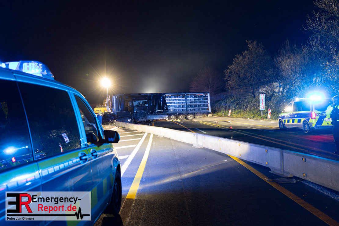 Die A 1 in Fahrtrichtung Köln ist ab Hagen-West bis zur Unfallstelle gesperrt. Die A 1 in Fahrtrichtung Bremen ist ab Gevelsberg bis zur Unfallstelle gesperrt. Die Sperrungen müssen voraussichtlich bis Sonntagmittag aufrechterhalten werden.