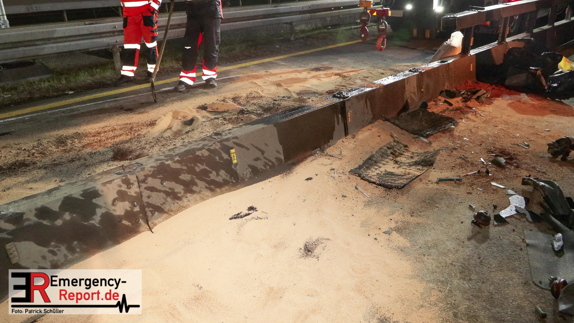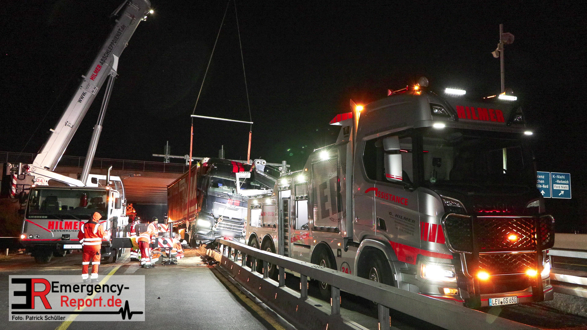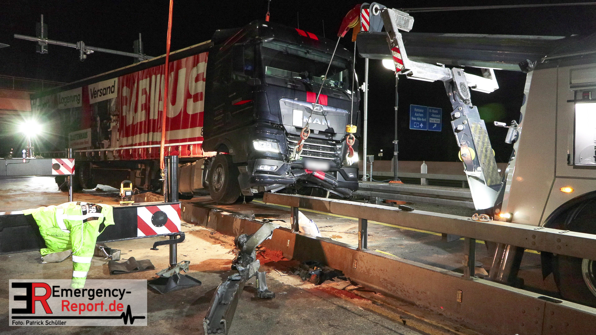 Die Feuerwehr Köln wurde am Abend des 01.03.2023, zu einem LKW-Unfall, auf die A1 in Fahrtrichtung Dortmund, alarmiert. Bei Eintreffen der ersten Einsatzkräfte stellte sich heraus, dass ein Lastwagen, im Bereich der Schrankenanlage vor der Leverkusener Rheinbrücke, auf eine Leitplanke aufgefahren war. Durch die Wucht des Aufpralls wurde der Lastwagen erheblich beschädigt und größere Mengen Betriebsmittel liefen auf die Fahrbahn. Die Einsatzkräfte streuten die Fahrbahn mit Bindemittel ab. Die Bergungsmaßnahmen, die durch ein Abschleppunternehmen durchgeführt wurden, dauerten bis ca. 02:00 Uhr.