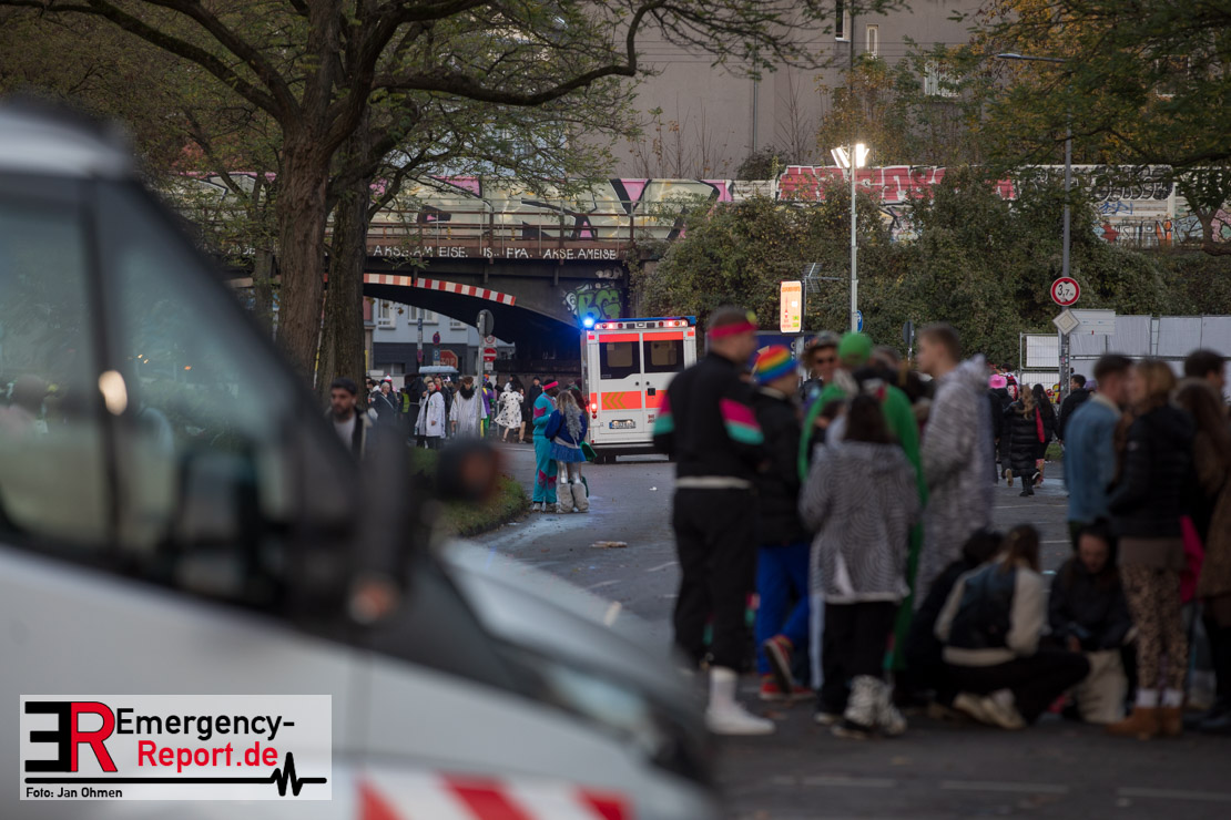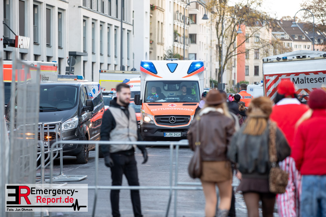 An den Unfallhilfsstellen in der Altstadt und im Kwartier Latäng wurden 376 Personen behandelt, sowohl chirurgische Fälle (beispielsweise Platz- oder Schnittwunden, Verstauchungen, Knochenbrüche) als auch internistische Fälle (beispielsweise Übelkeit/Erbrechen infolge übermäßigen Alkoholkonsums). Am 11.11.2023 waren es noch insgesamt 626 Personen.