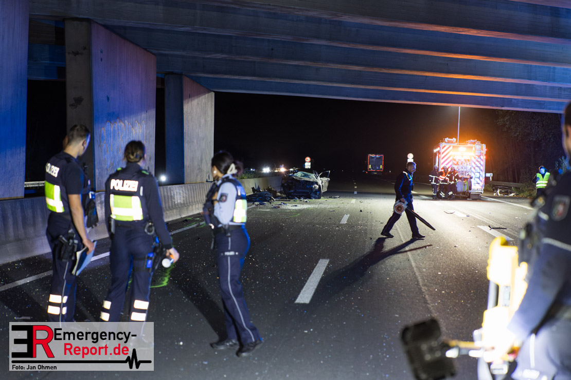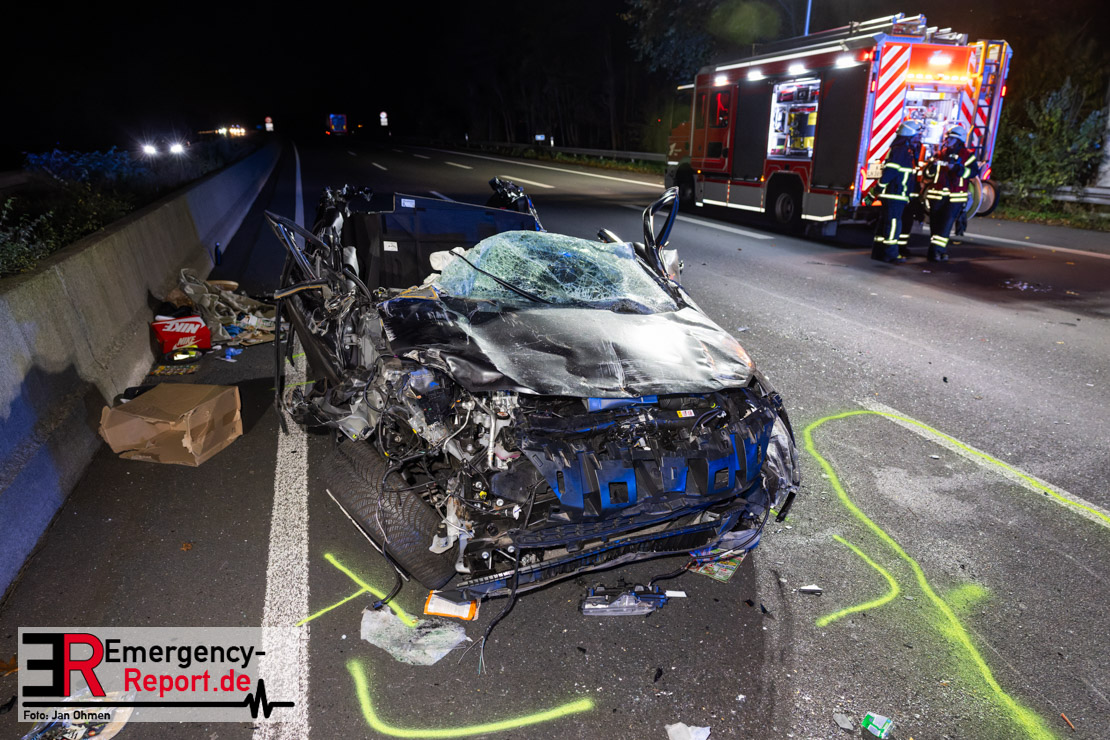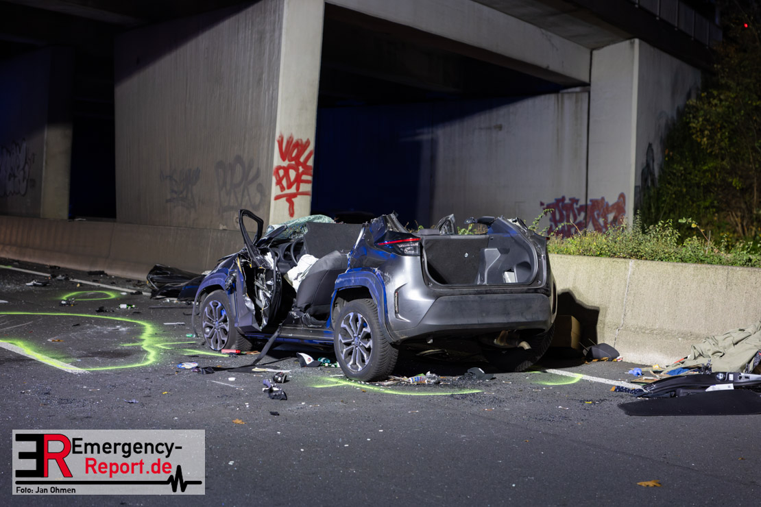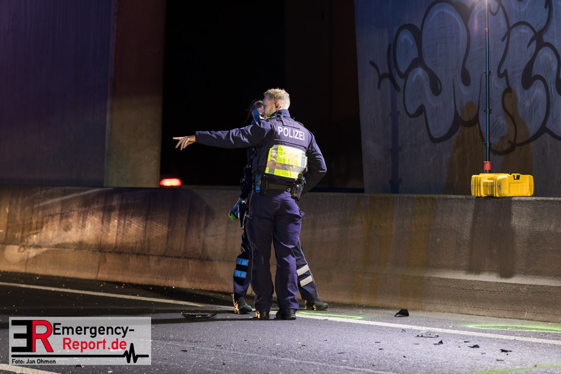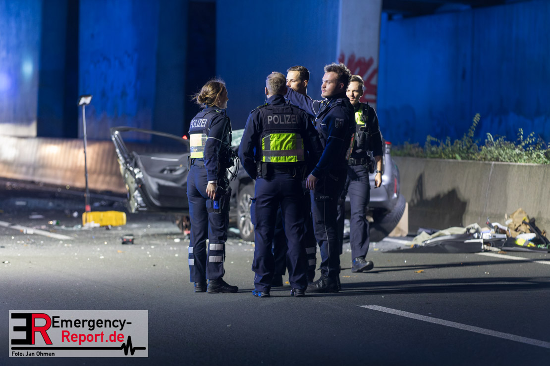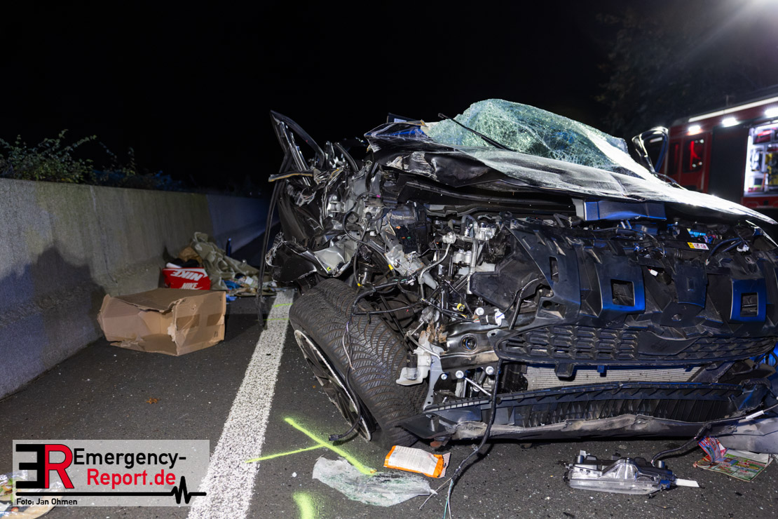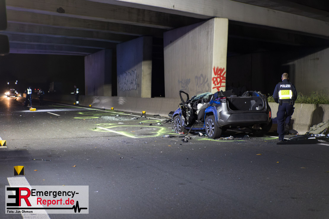 Gegen 20.15 Uhr (11.11.2025) gingen mehrere Notrufe in der Leitstelle zu einem Verkehrsunfall zwischen einem LKW und einem PKW auf der A57, Anschlussstelle Worringen, in Fahrtrichtung Köln ein. Einer davon schien direkt aus dem Unfallauto zu kommen, eine Kommunikation mit dem Anrufenden war seitens des Leitstellendisponenten aber nicht möglich. Die parallel einlaufenden Notrufe berichteten währenddessen von einer eingeklemmten Person in einem PKW. Als die Rettungskräfte am Einsatzort eintrafen, lag das Fahrzeug auf der Seite. Ersthelfer, zwei Mitarbeiter einer Hilfsorganisation, die mit einem Krankentransportwagen unterwegs waren, kümmerten sich bereits um den Verletzten, als die ersten Einsatzkräfte, Rettungsdienst und die Freiwillige Feuerwehr aus Worringen, den Unfallort erreichten. Sofort begannen die Rettungskräfte den schwerverletzten Fahrer zu versorgen und die Rettung einzuleiten. Dazu wurde das Fahrzeug zurück auf die Räder gestellt, das Dach geöffnet und der Patient schnellstmöglich aus dem Fahrzeug befreit. Zur medizinischen Unterstützung wurde ein Rettungshubschrauber angefordert. Alarmiert wurde der ITH aus Dortmund. Nach der Erstversorgung wurde der Schwerverletzte schließlich mit dem Rettungswagen ins Krankenhaus transportiert.