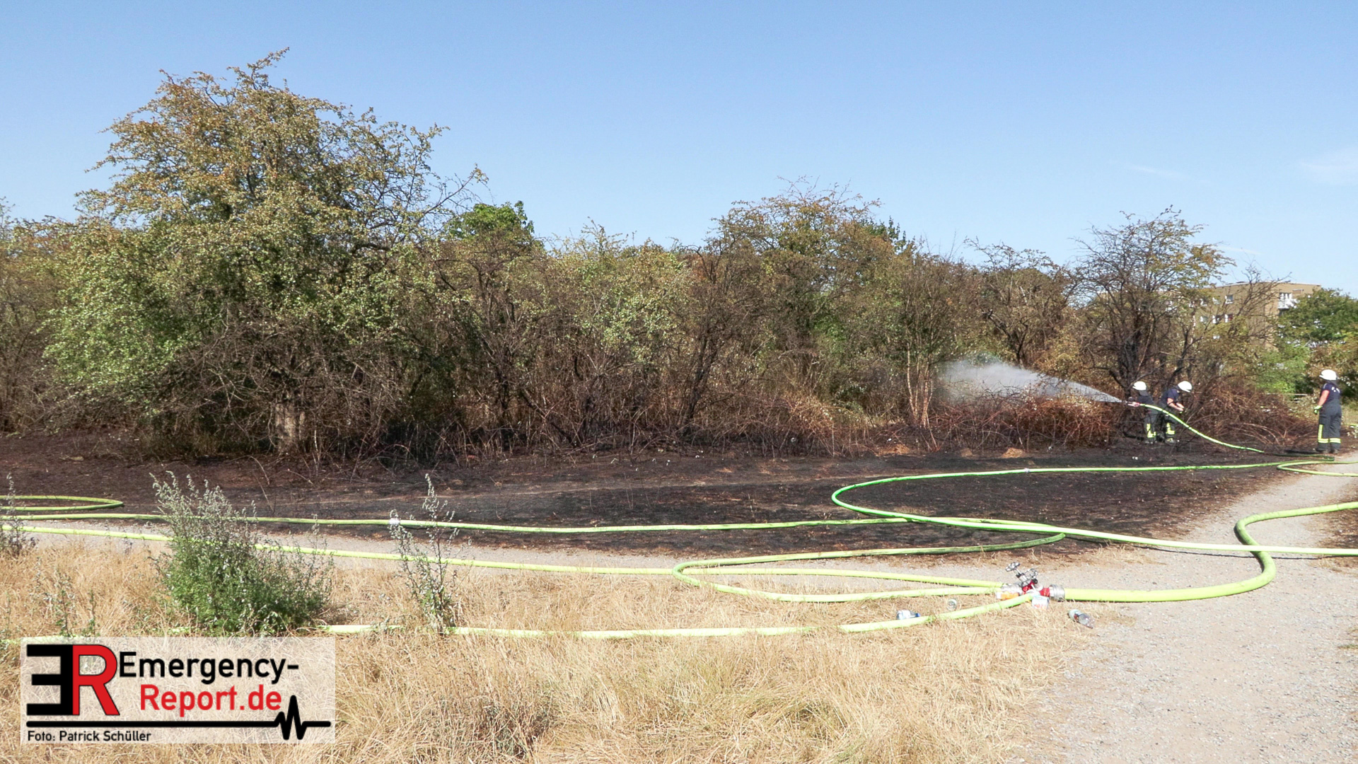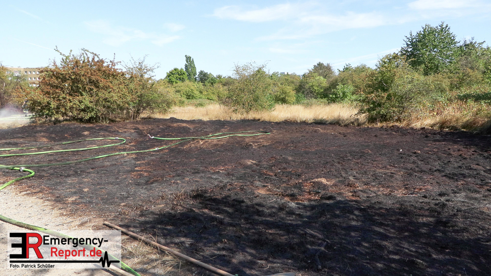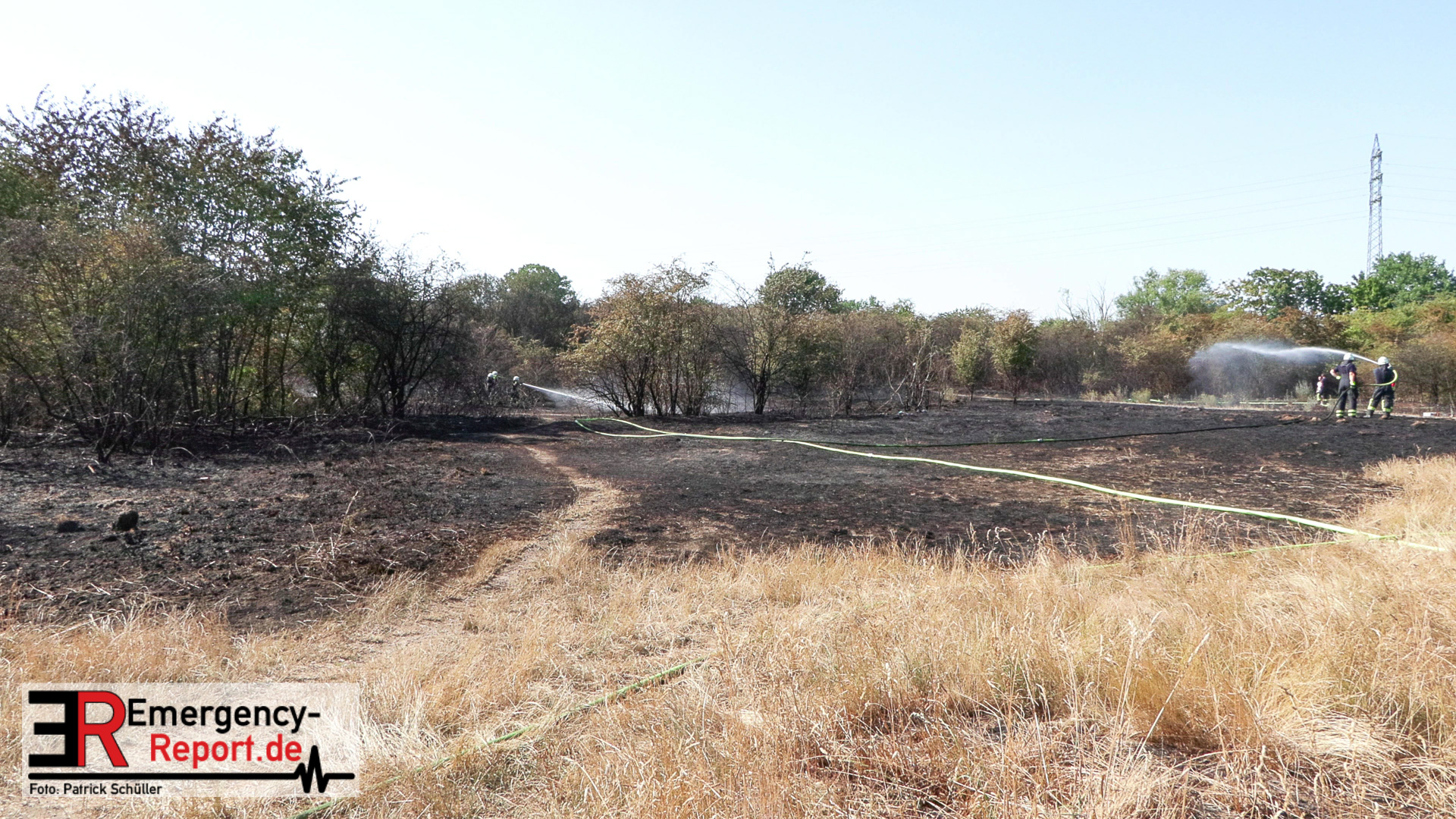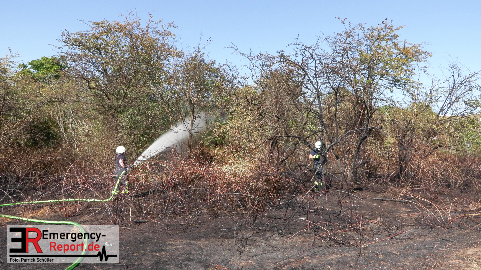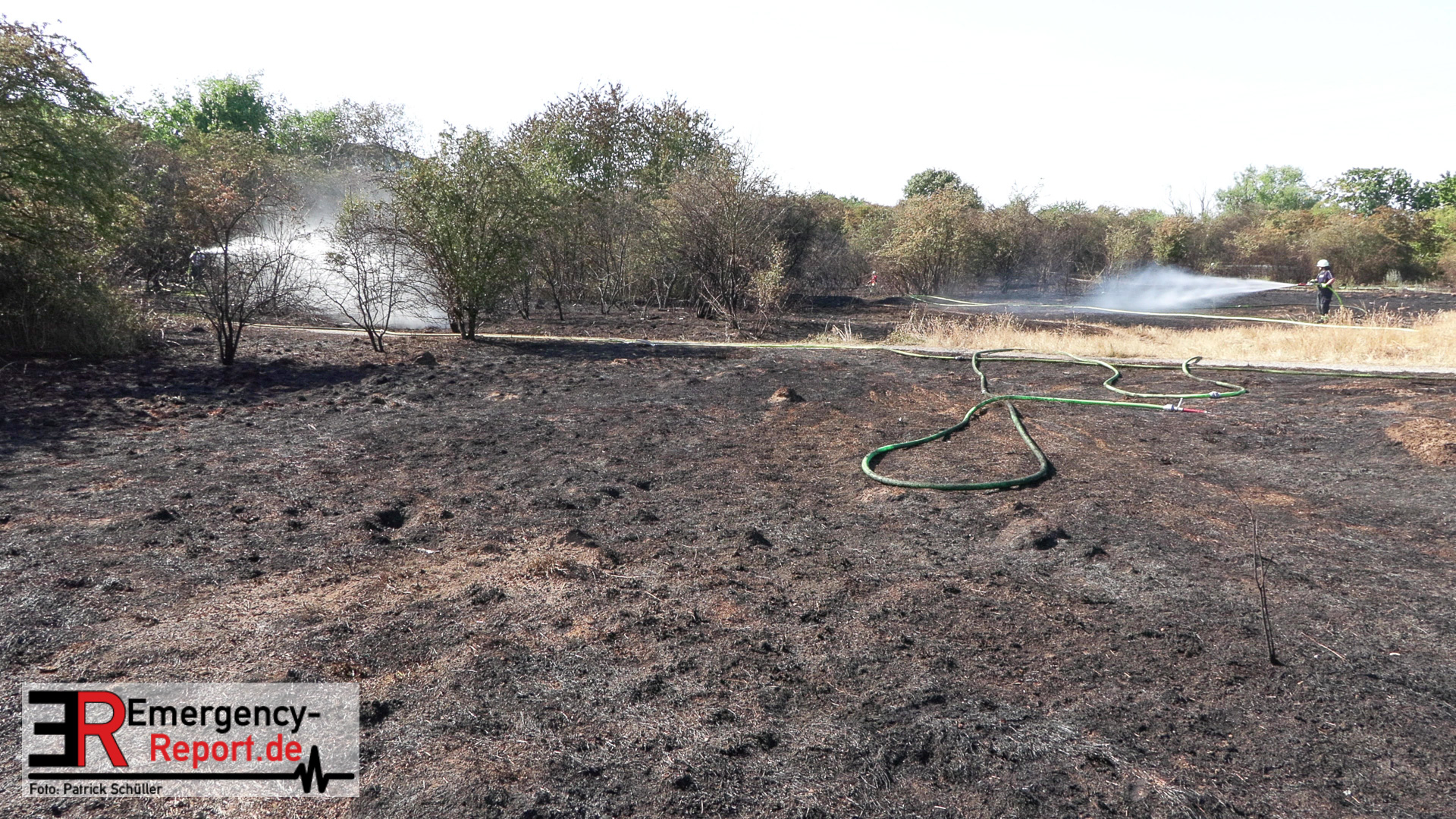 Rund 60 Kräfte von Berufsfeuerwehr und Freiwilliger Feuerwehr hatten das Feuer, das inzwischen auf einer Fläche von rund 40.000 Quadratmetern brannte, schließlich rasch unter Kontrolle.