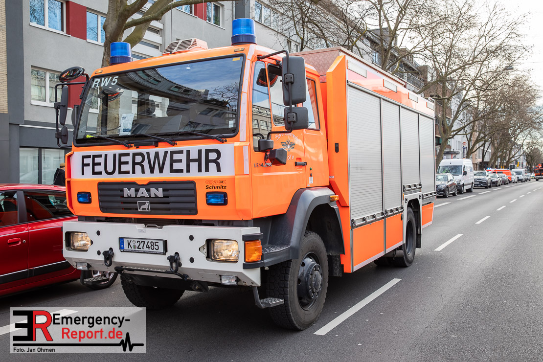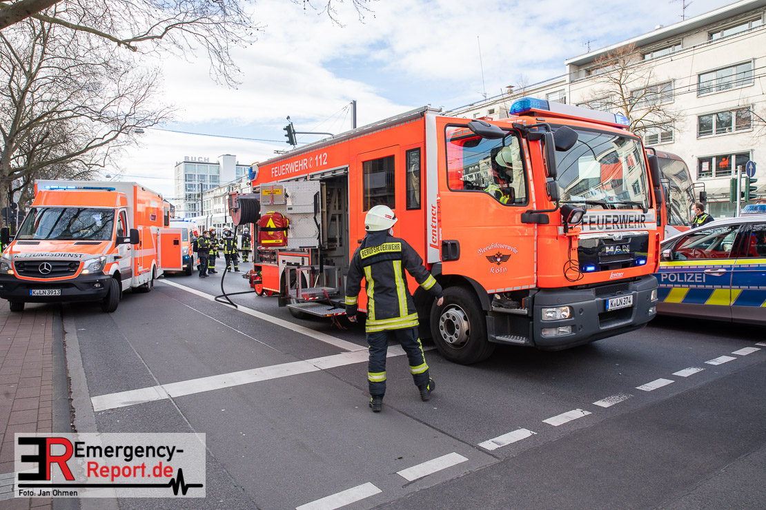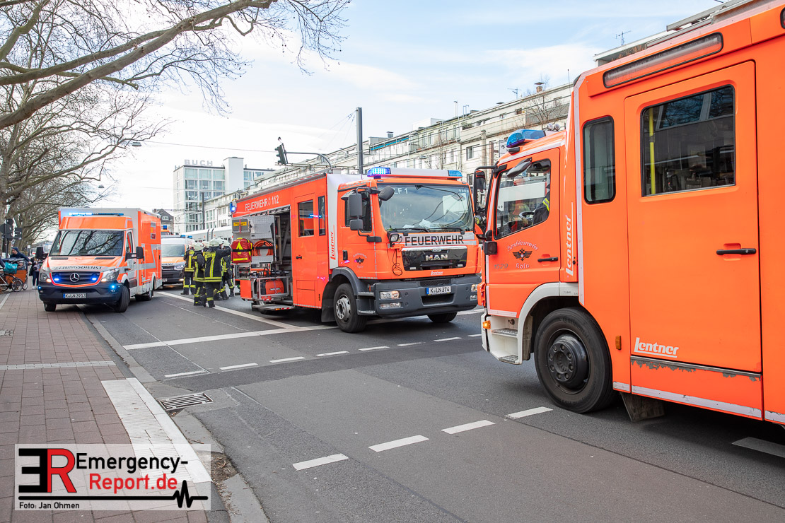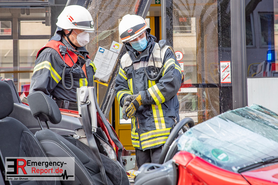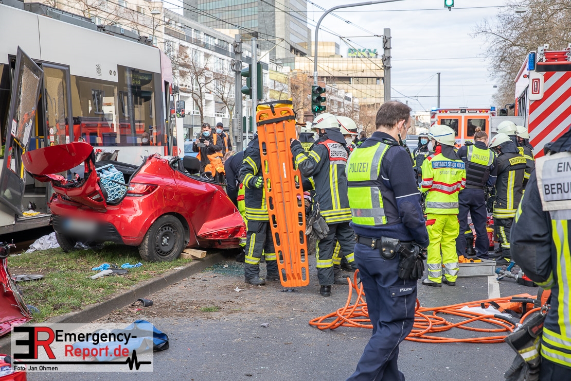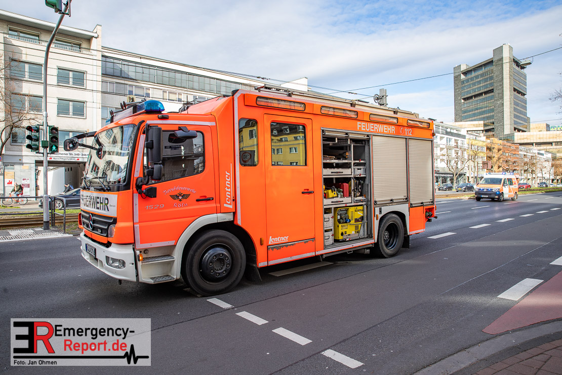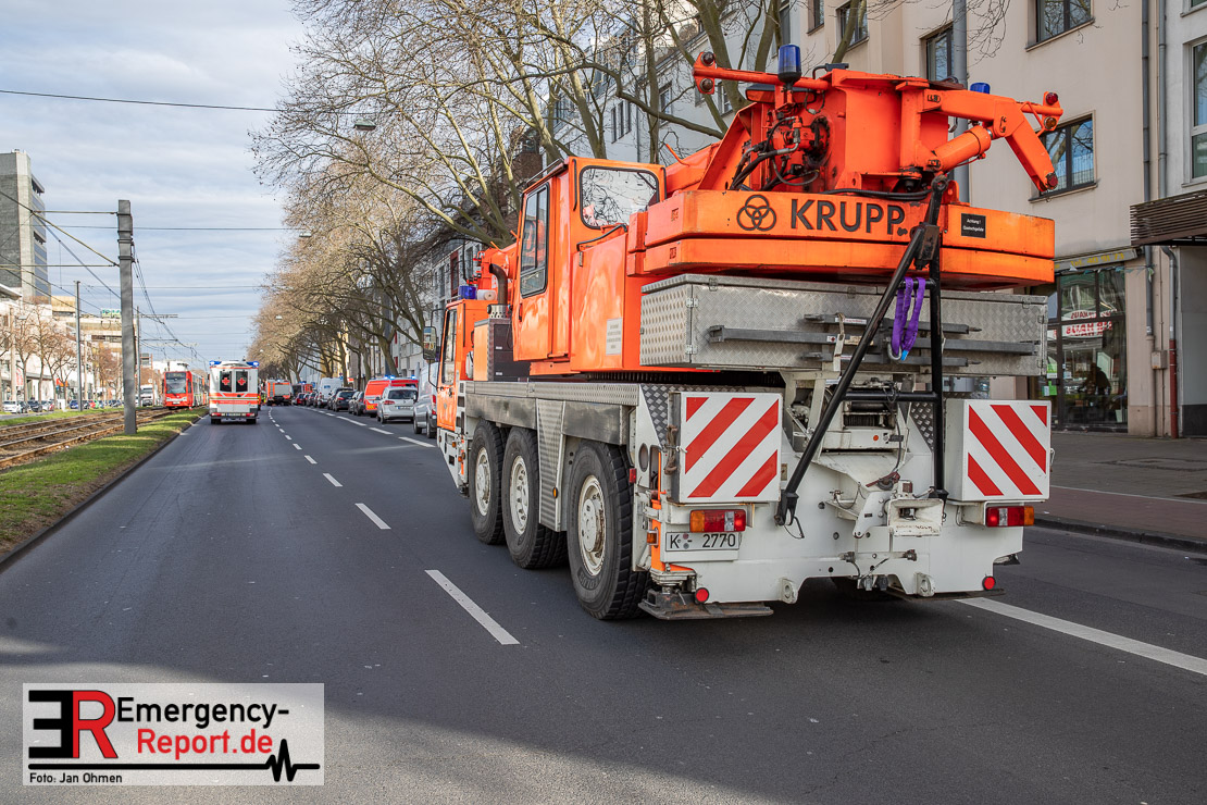 Die Feuerwehr Köln wurde am Nachmittag, gegen 15:10 Uhr zu einem Verkehrsunfall mit eingeklemmter Person auf die Aachener Straße in den Stadtteil Braunsfeld alarmiert. In Höhe der Hausnummer 457 kam es zu einem Zusammenstoß zwischen einem, mit zwei Insassen besetzten PKW und einer Straßenbahn der KVB. In der Straßenbahn befanden sich außer dem Fahrer, der sich leicht verletzte, keine weiteren Personen mehr. Der PKW wurde bei dem Unfall so stark deformiert, dass zwei Personen durch die Feuerwehr, mit schwerem hydraulischem Gerät gerettet, werden mussten. Beide Insassinnen des PKWs wurden unter notärztlicher Versorgung und umliegende Krankenhäuser transportiert. Auch der Fahrer der Straßenbahn wurde in ein Krankenhaus transportiert. Die Polizei hat den Unfall aufgenommen und Ermittelt nun den genauen Unfallhergang. Nach ersten Erkenntnissen fuhr der PKW, über eine rot zeigende Lichtzeichenanlage.