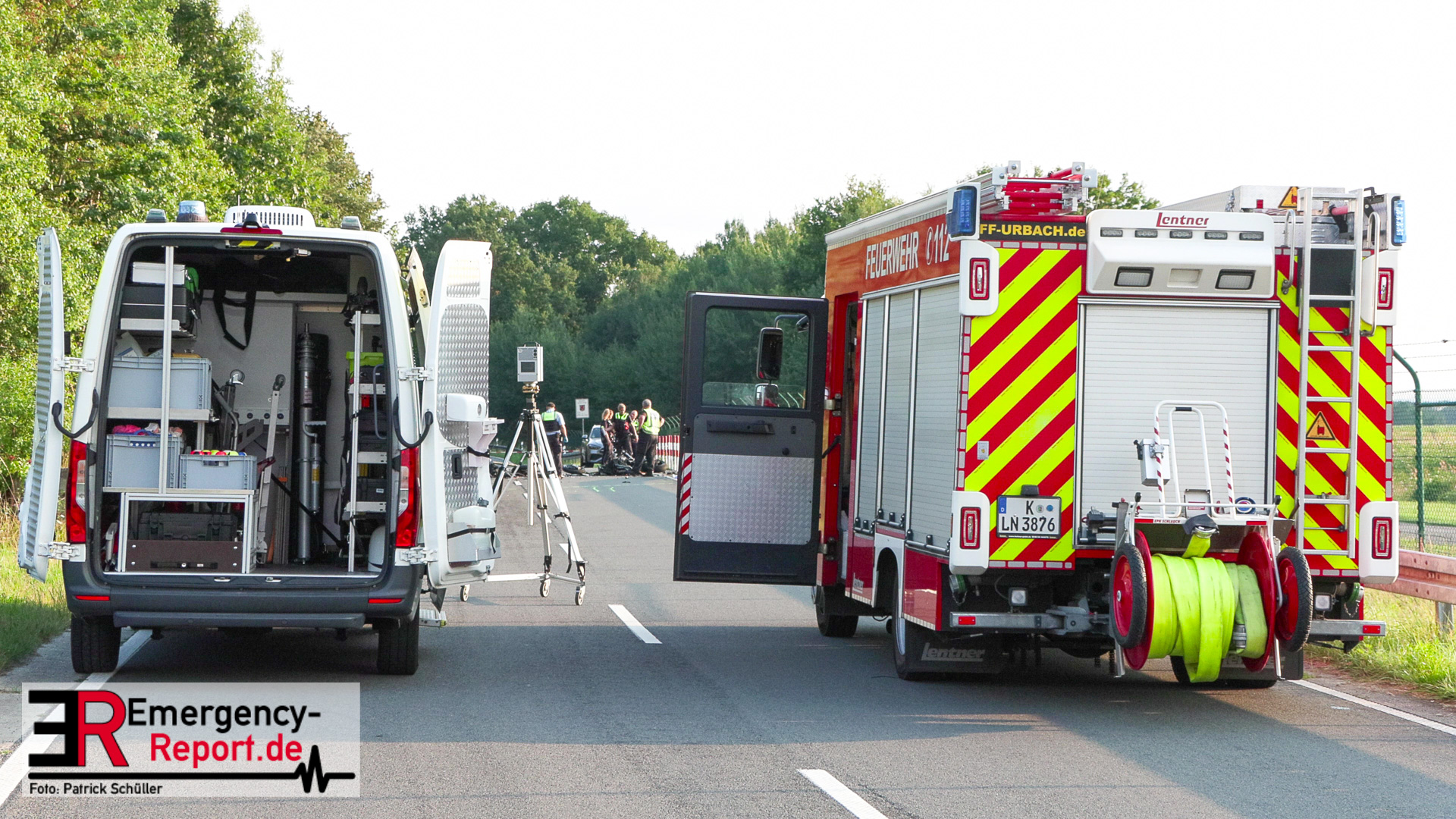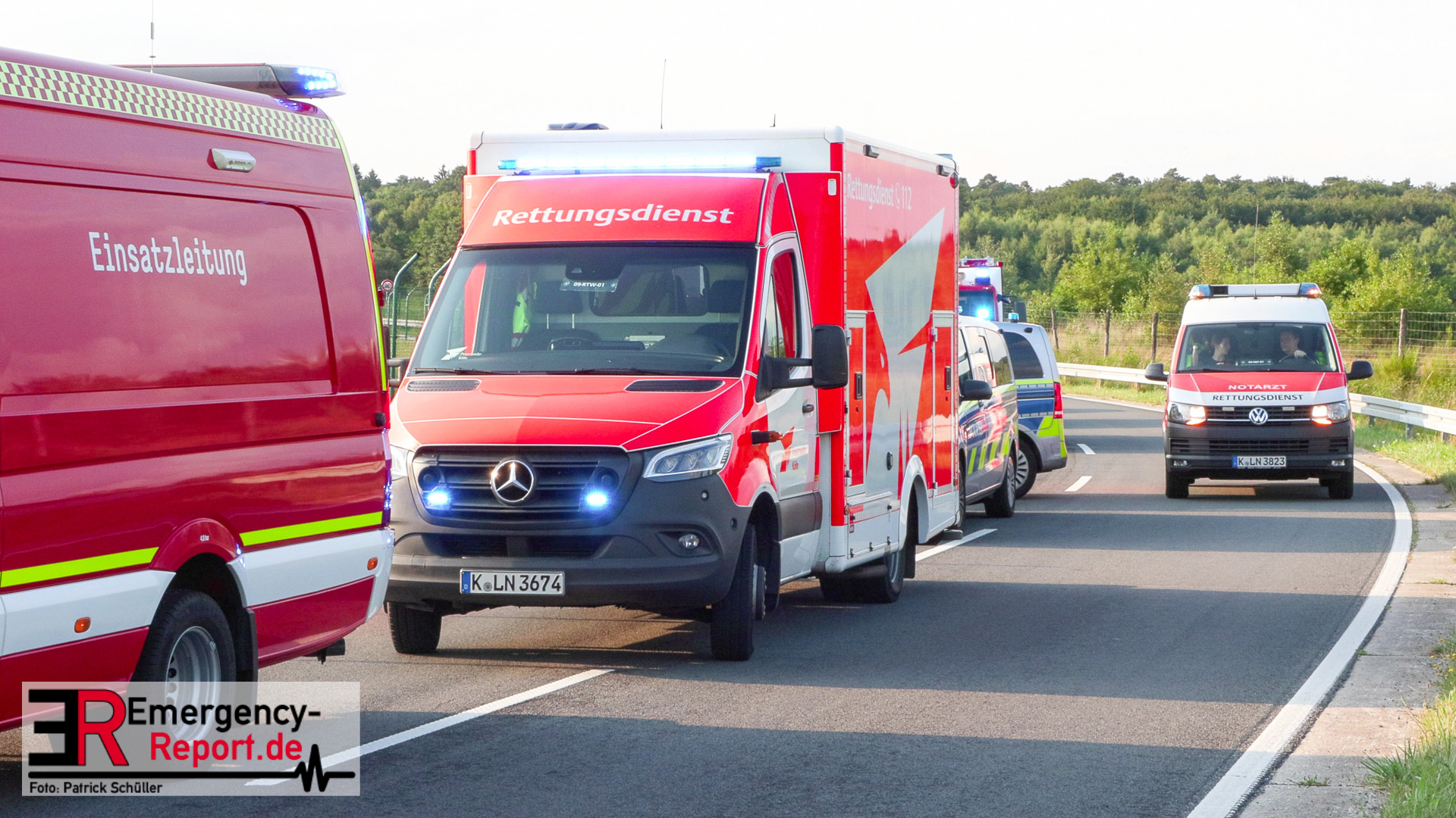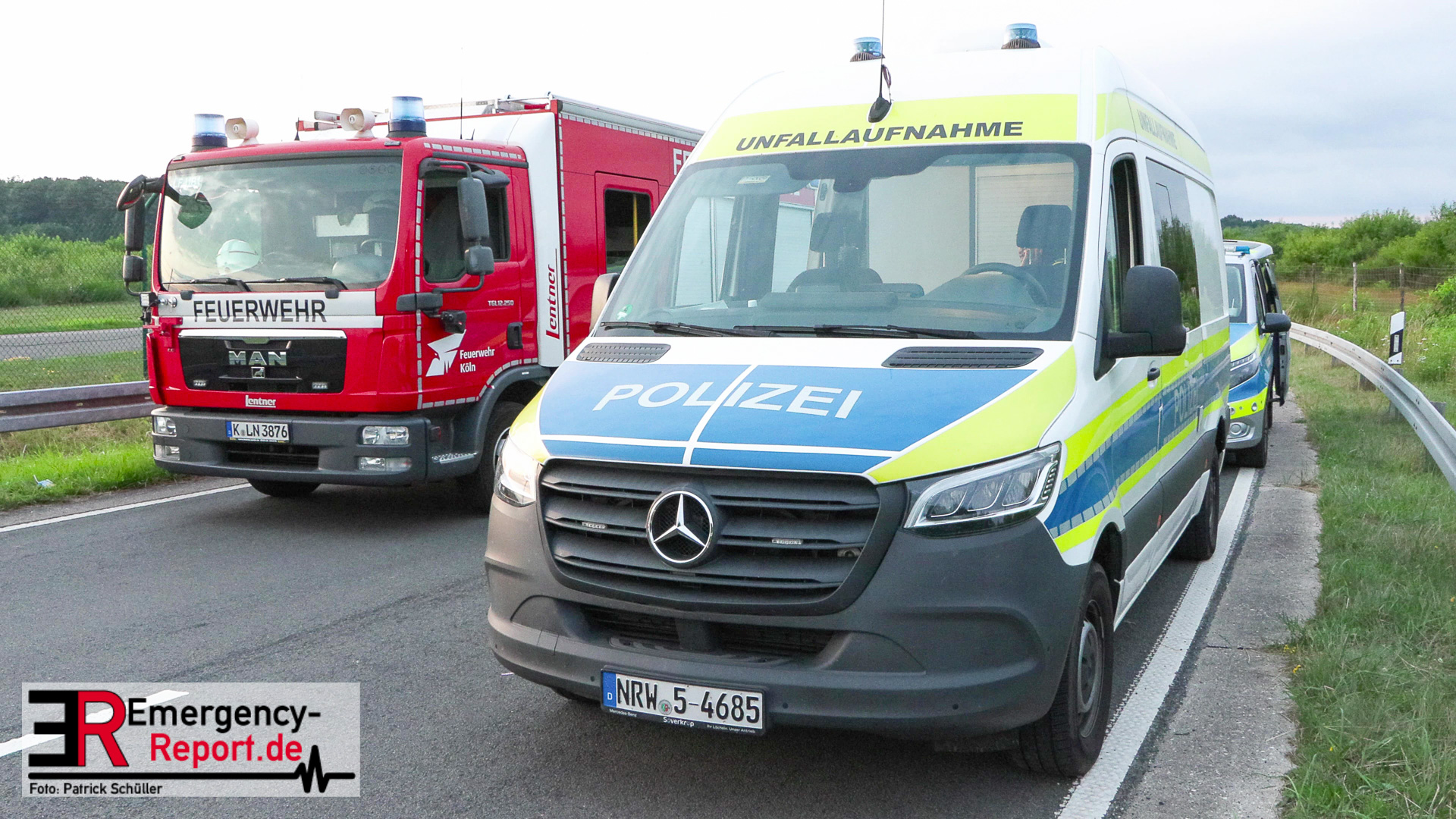 Köln (ots) – Zwei Motorradfahrer sind am Freitagabend (25. Juli 2025) bei einem Frontalzusammenstoß im Stadtteil Grengel tödlich verletzt worden. Nach Aussagen von Zeugen überholte der noch nicht identifizierte Fahrer einer BMW gegen 18.40 Uhr auf der „Alte Kölner Straße“ einen in Richtung Grengeler Mauspfad fahrenden Opel. Beim Überholmanöver stieß er frontal mit einem entgegenkommenden Motorrad (Fahrer: 20) zusammen. Die beiden Motorradfahrer erlagen noch vor Ort ihren schweren Verletzungen. Die 23-Jährige Fahrerin des beim Unfall ebenfalls beschädigten Opel Adam sowie die 23-Jährige Beifahrerin erlitten einen Schock. Ein Verkehrsunfallaufnahmeteam sichert derzeit die Spuren vor Ort. Derzeit ist die Alte Kölner Straße für die Unfallaufnahme gesperrt. Der Opferschutz der Polizei Köln bietet im Nachgang Betreuung für alle Unfallzeugen an. Zeugen, die Angaben zum Unfallhergang machen können, werden gebeten, sich bei den Ermittlern des Verkehrskommissariats 2 telefonisch unter 0221 229-0 oder per E-Mail an poststelle.koeln@polizei.nrw.de zu melden.