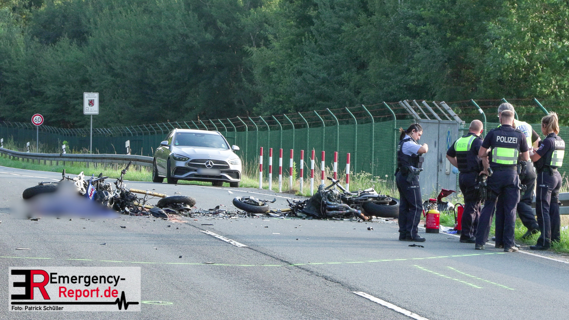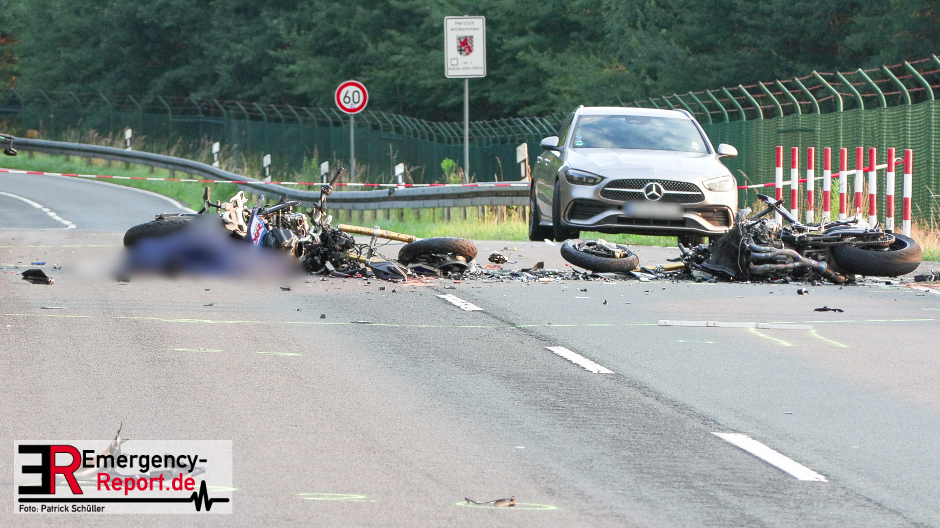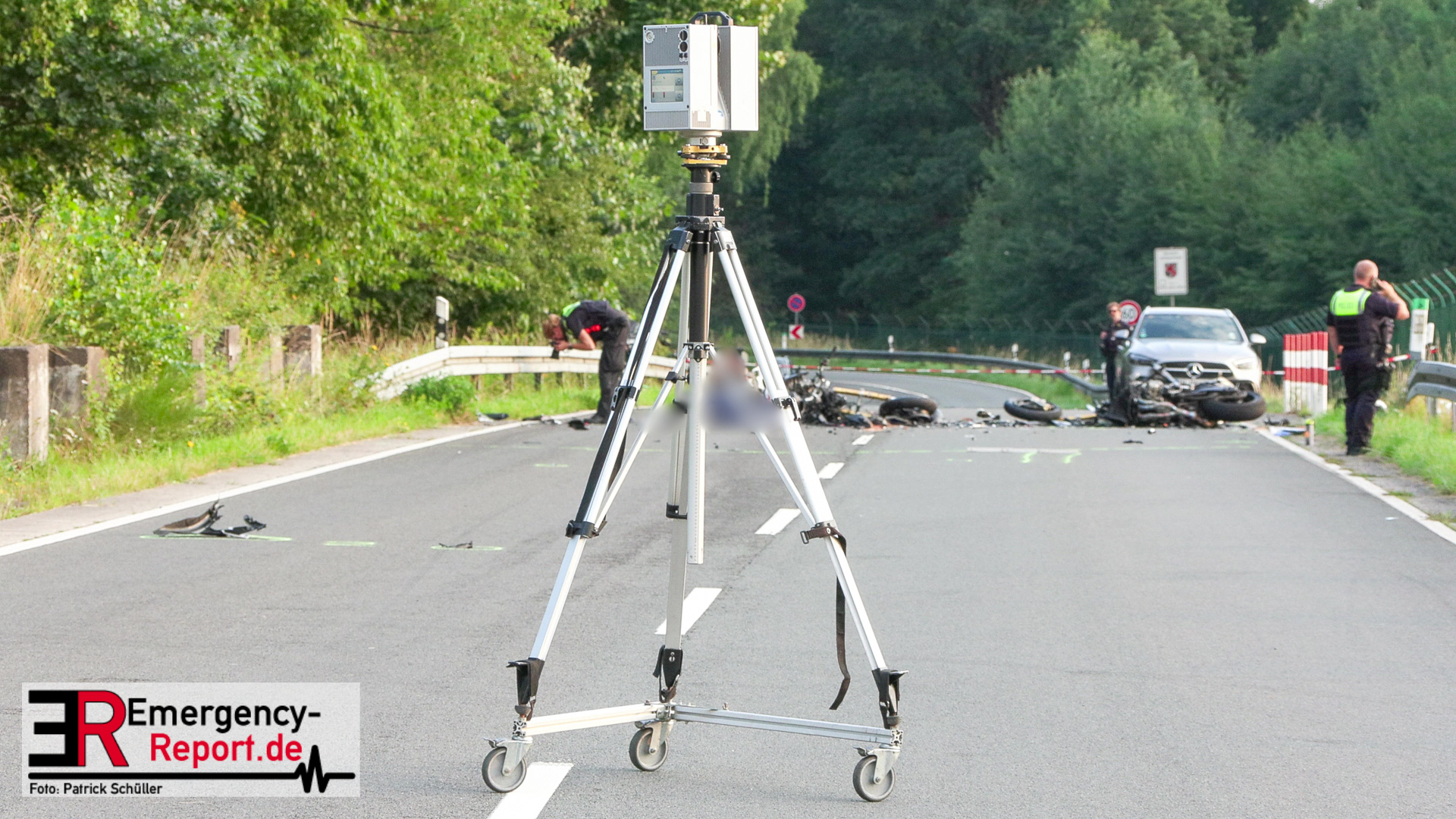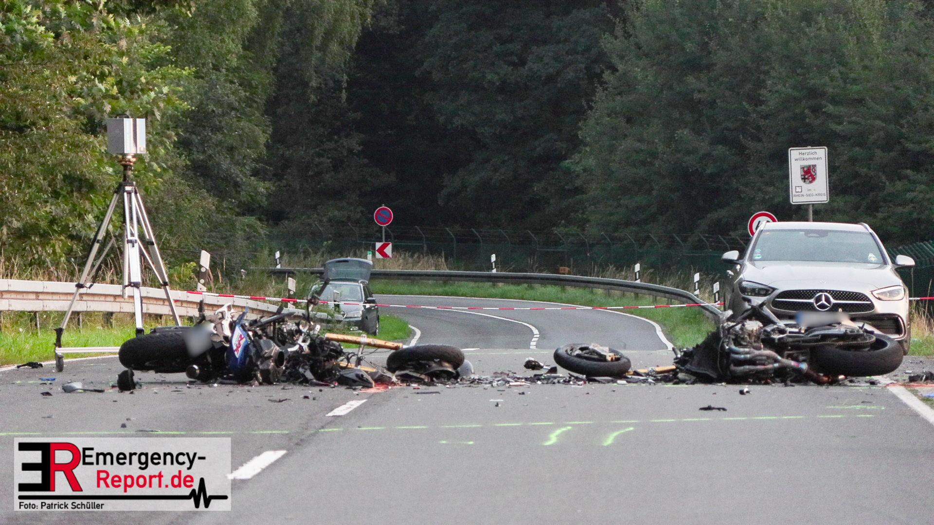 Köln (ots) – Zwei Motorradfahrer sind am Freitagabend (25. Juli 2025) bei einem Frontalzusammenstoß im Stadtteil Grengel tödlich verletzt worden. Nach Aussagen von Zeugen überholte der noch nicht identifizierte Fahrer einer BMW gegen 18.40 Uhr auf der „Alte Kölner Straße“ einen in Richtung Grengeler Mauspfad fahrenden Opel. Beim Überholmanöver stieß er frontal mit einem entgegenkommenden Motorrad (Fahrer: 20) zusammen. Die beiden Motorradfahrer erlagen noch vor Ort ihren schweren Verletzungen. Die 23-Jährige Fahrerin des beim Unfall ebenfalls beschädigten Opel Adam sowie die 23-Jährige Beifahrerin erlitten einen Schock. Ein Verkehrsunfallaufnahmeteam sichert derzeit die Spuren vor Ort. Derzeit ist die Alte Kölner Straße für die Unfallaufnahme gesperrt. Der Opferschutz der Polizei Köln bietet im Nachgang Betreuung für alle Unfallzeugen an. Zeugen, die Angaben zum Unfallhergang machen können, werden gebeten, sich bei den Ermittlern des Verkehrskommissariats 2 telefonisch unter 0221 229-0 oder per E-Mail an poststelle.koeln@polizei.nrw.de zu melden.