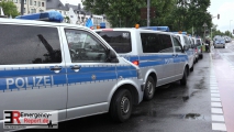 Mit der Anmelderin der rechtsgerichteten Gegenkundgebung konnte auch in einem letzten Abstimmungsgespräch keine Einigung erzielt werden. Zu dem avisierten Aufzug erschienen in der Spitze circa 330 Teilnehmer des rechten Spektrums, darunter auch zahlreiche Hooligans. Diese Personen stellten sich mehrheitlich als stark alkoholisiert, aggressiv und unkooperativ dar. Auch Ordner konsumierten auf der Versammlungsfläche alkoholische Getränke. Im Bereich des Aufstellungsorts Bahnhofsvorplatz wurden zudem Quarzsandhandschuhe und Reizstoffsprühgeräte sichergestellt. Die Versammlungsleiterin rief zudem zu einem Aufzug auf, der ihr unmittelbar zuvor seitens der Polizei untersagt worden war. Ihr war die Auflage erteilt worden, ausschließlich eine Standkundgebung durchzuführen. Um 16.25 Uhr wurde infolgedessen die Versammlung durch die Polizei aufgelöst. Teilnehmer wurden durch Einsatzkräfte der Bundespolizei zu den Zügen geleitet. Ein 44-Jähriger wurde hierbei in Gewahrsam genommen.