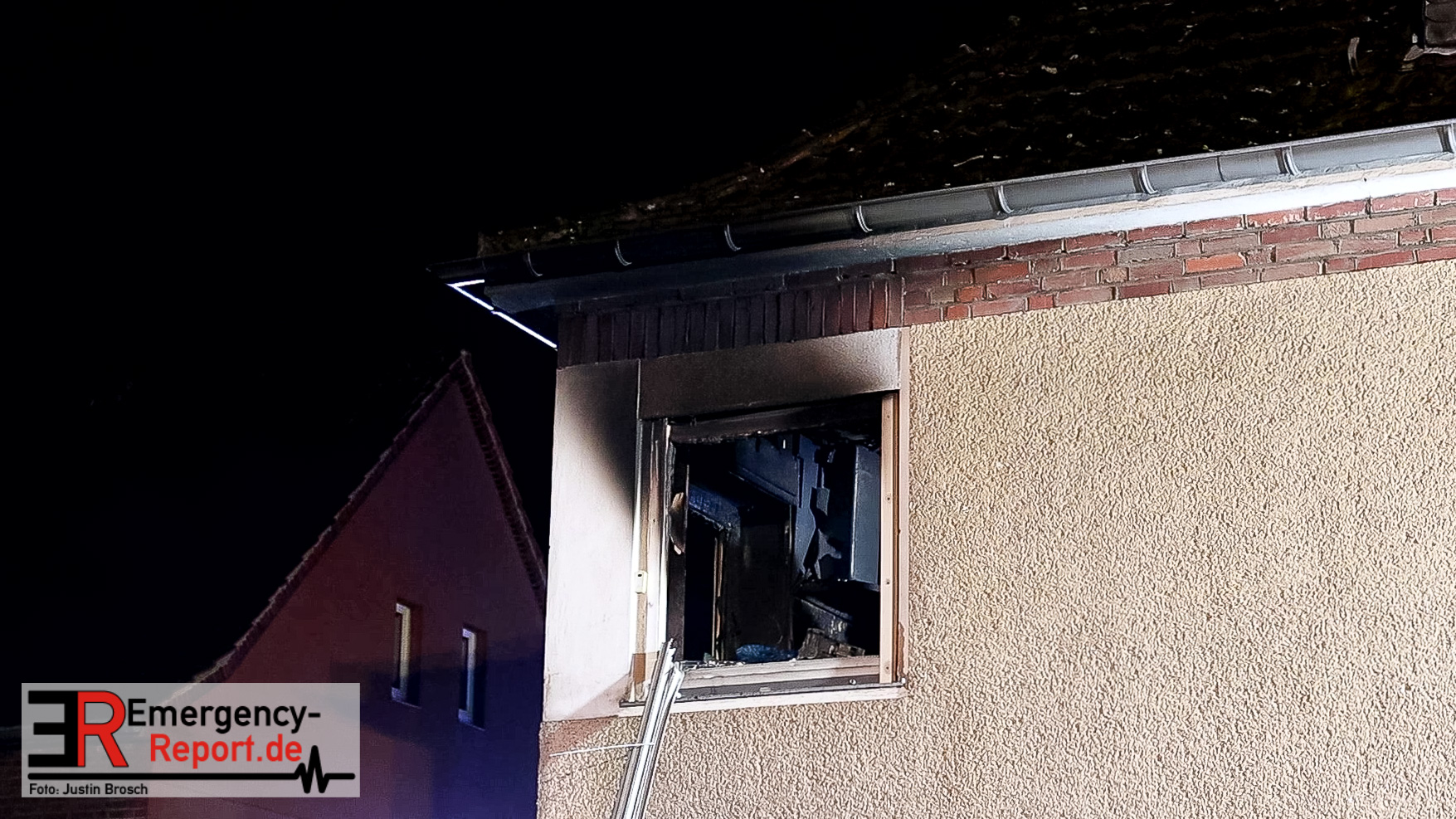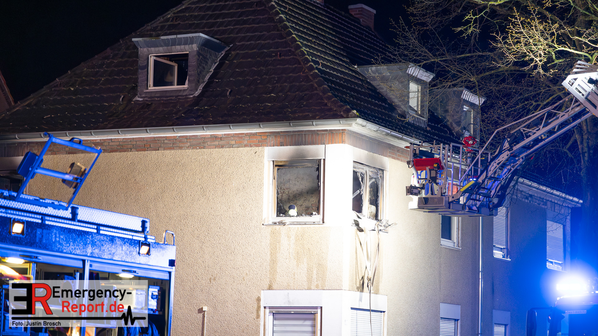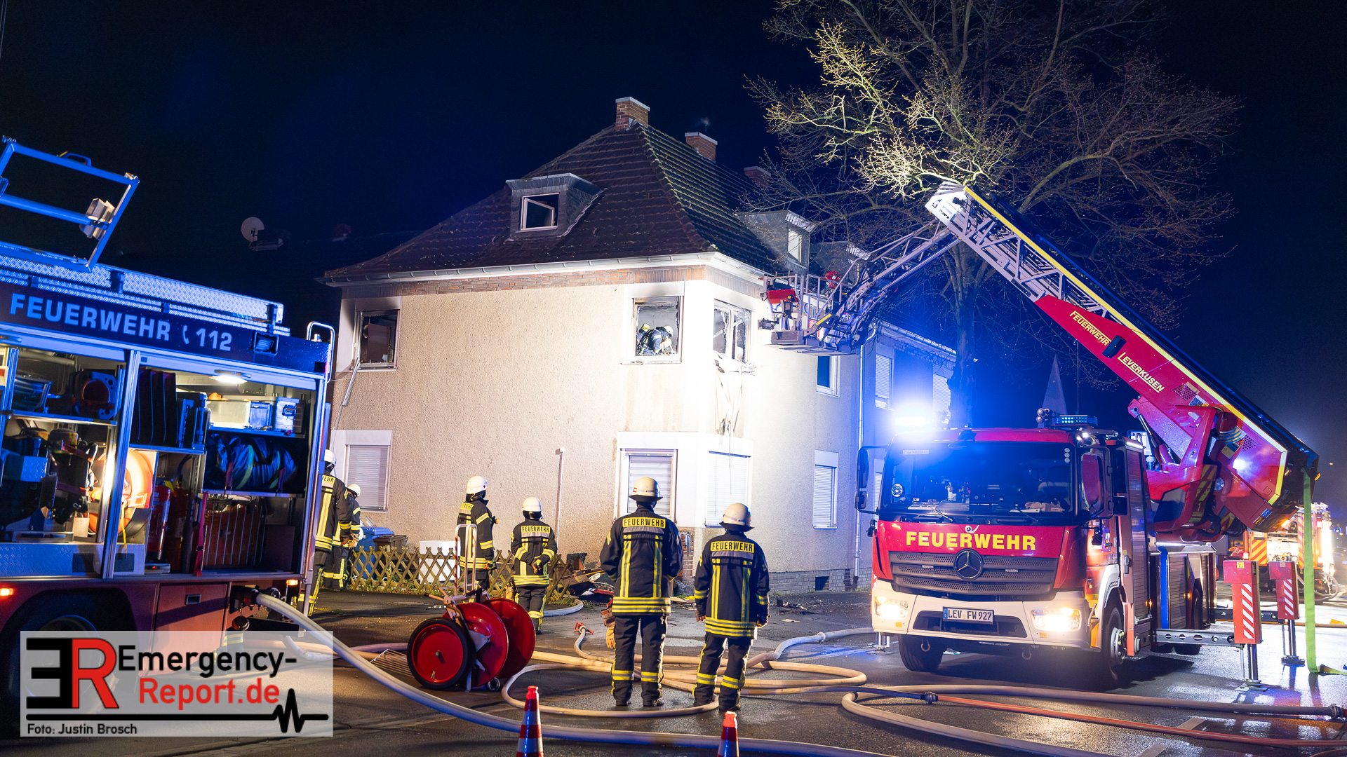Nach dem Eintreffen der ersten Kräfte am Einsatzort, konnte eine starke Rauchentwicklung im ersten Obergeschoss eines zweigeschossigen Wohnhauses festgestellt werden. Die Bewohner hatten das Gebäude bereits vor Eintreffen der Feuerwehr verlassen.