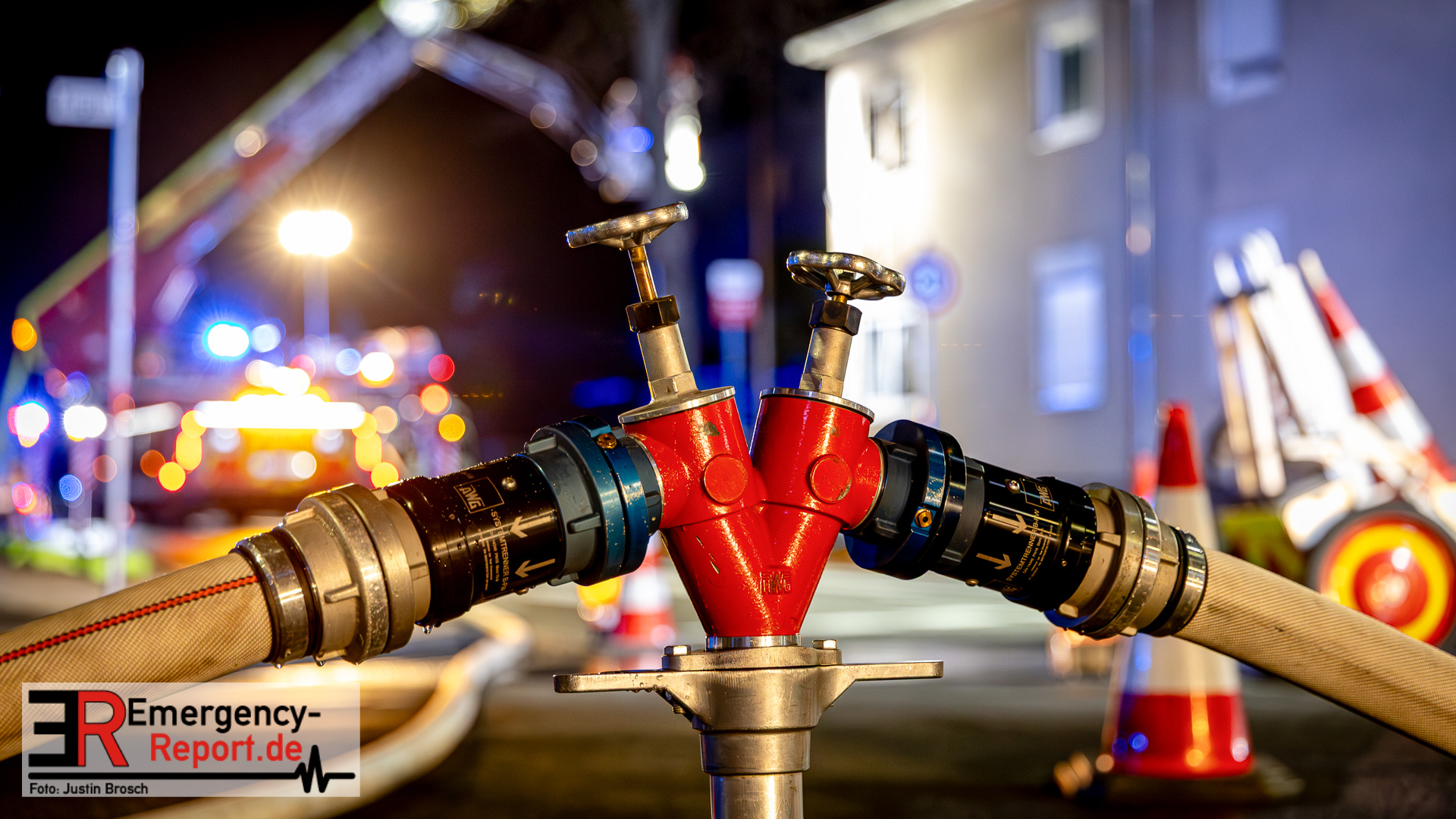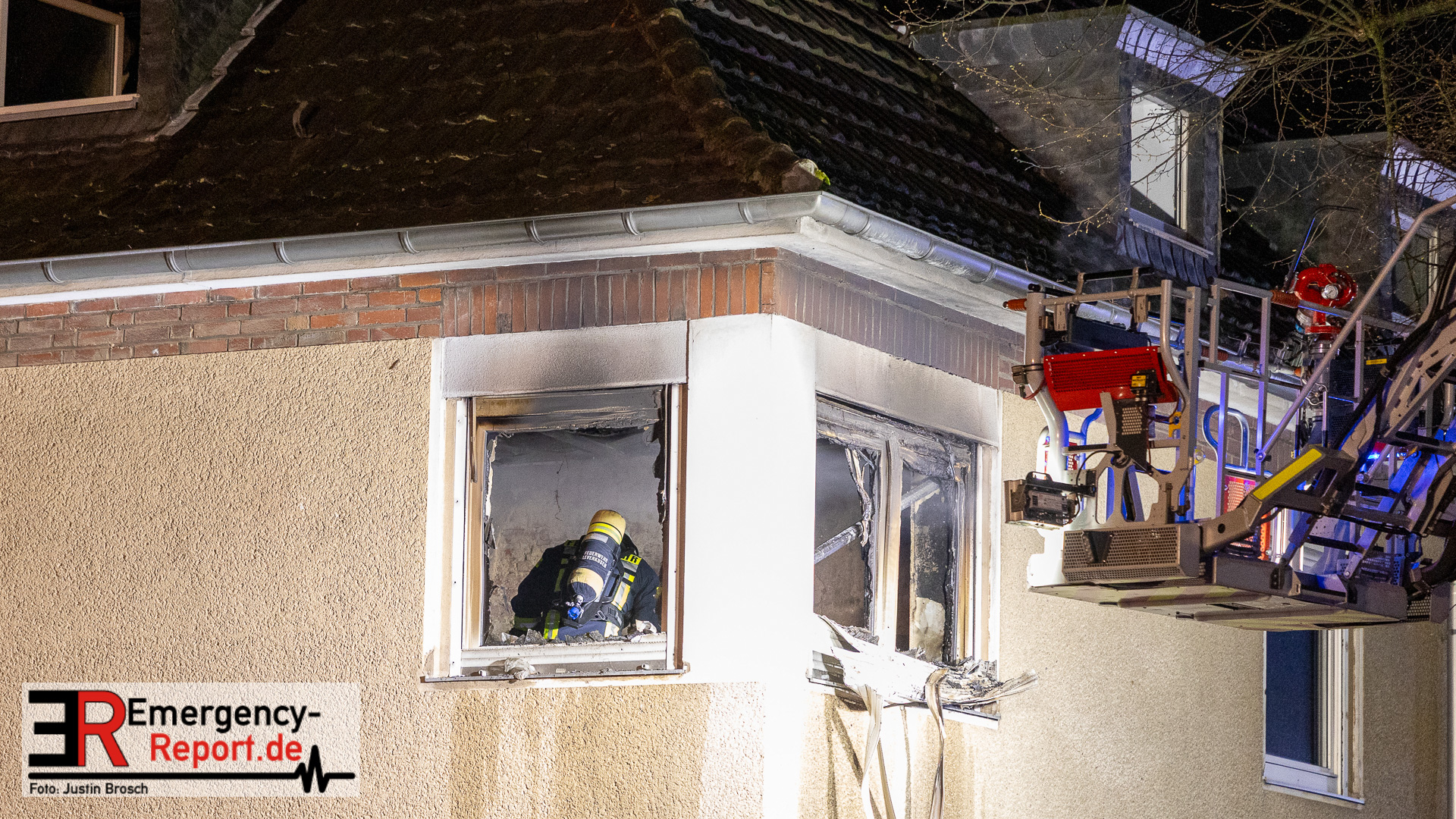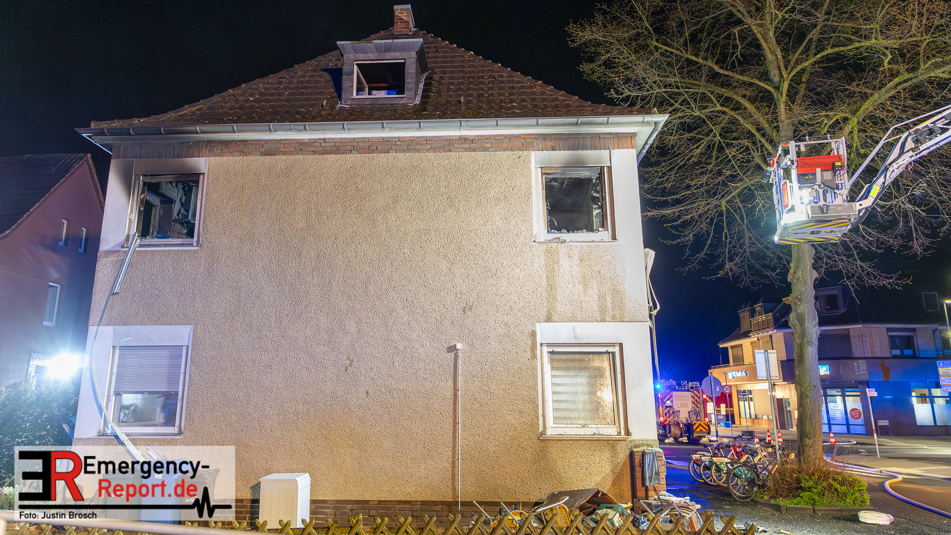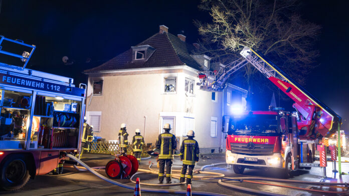 Nach dem Eintreffen der ersten Kräfte am Einsatzort, konnte eine starke Rauchentwicklung im ersten Obergeschoss eines zweigeschossigen Wohnhauses festgestellt werden. Die Bewohner hatten das Gebäude bereits vor Eintreffen der Feuerwehr verlassen.