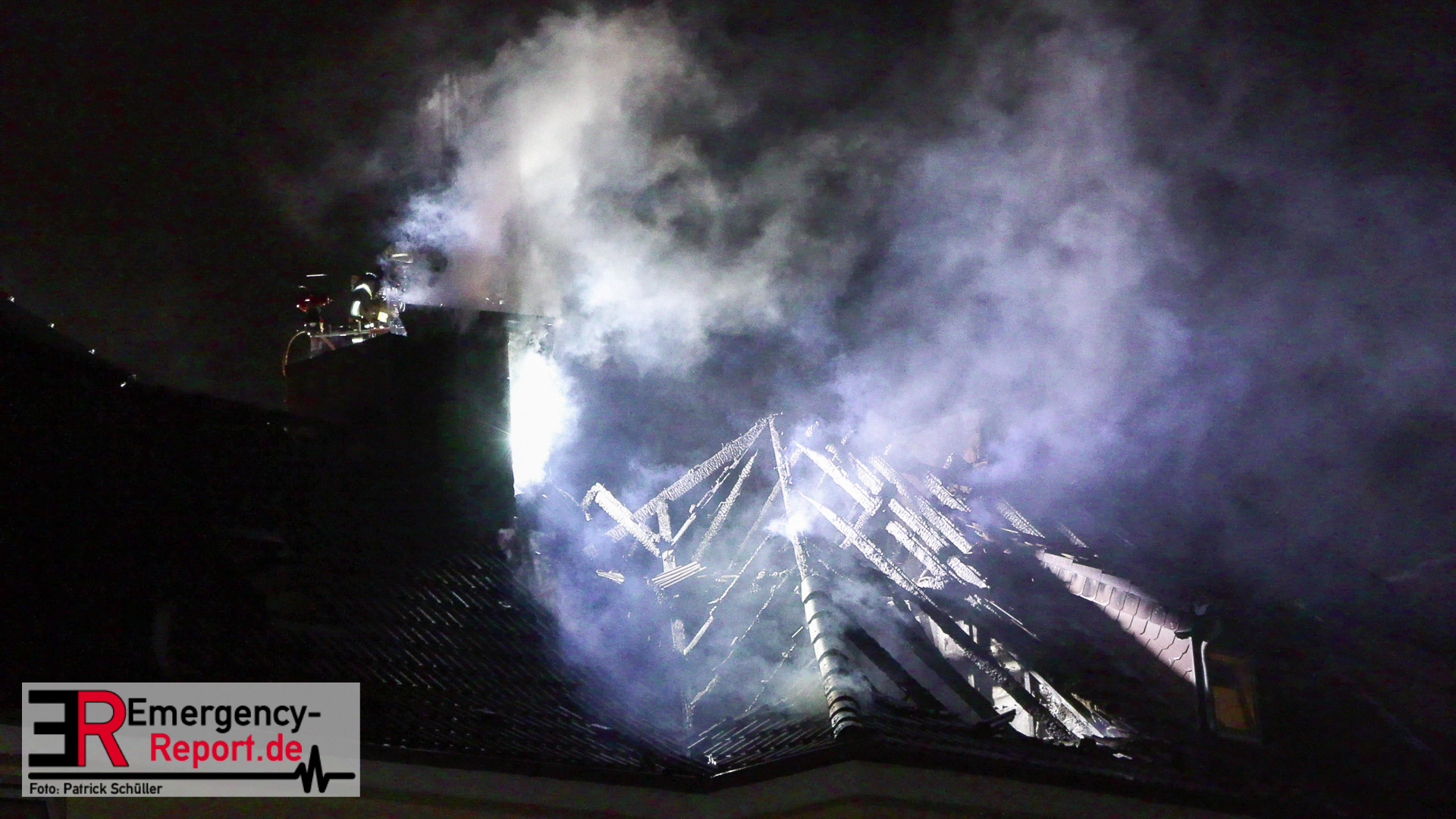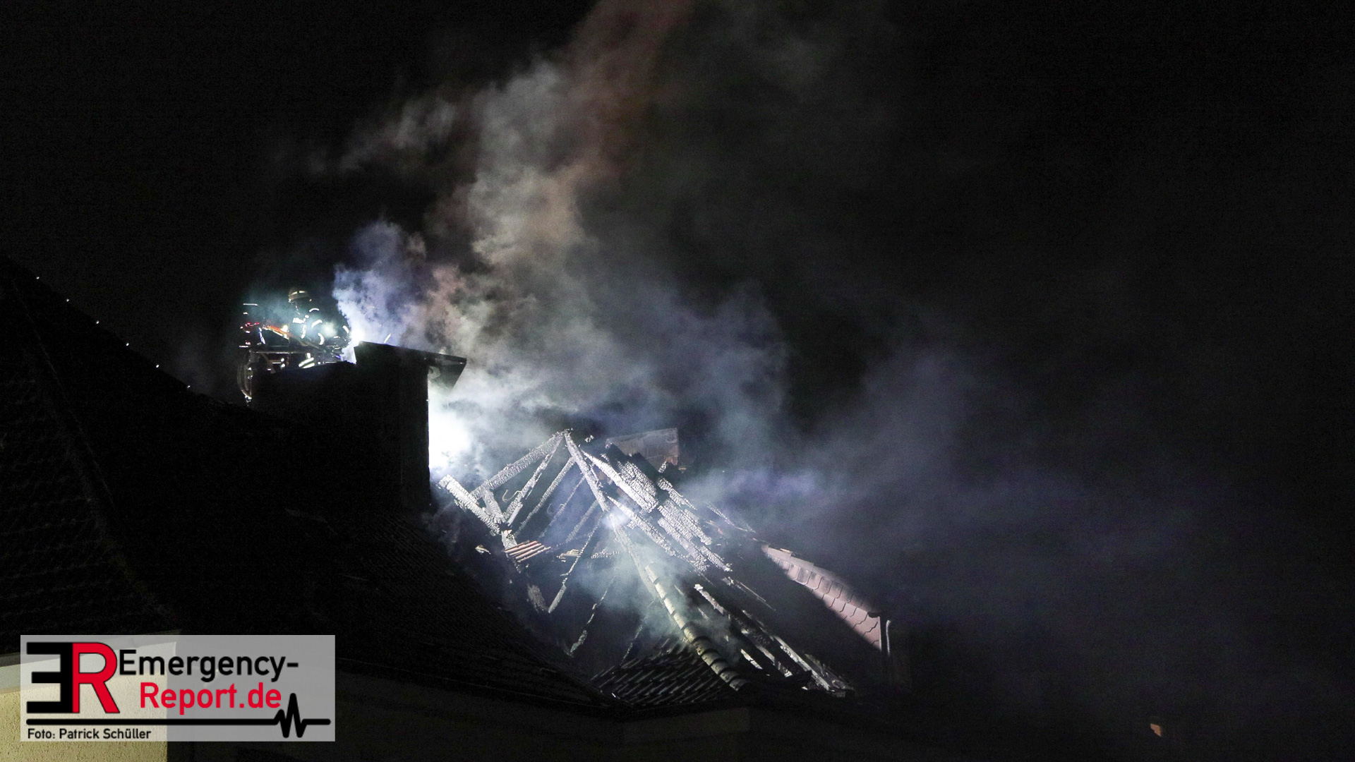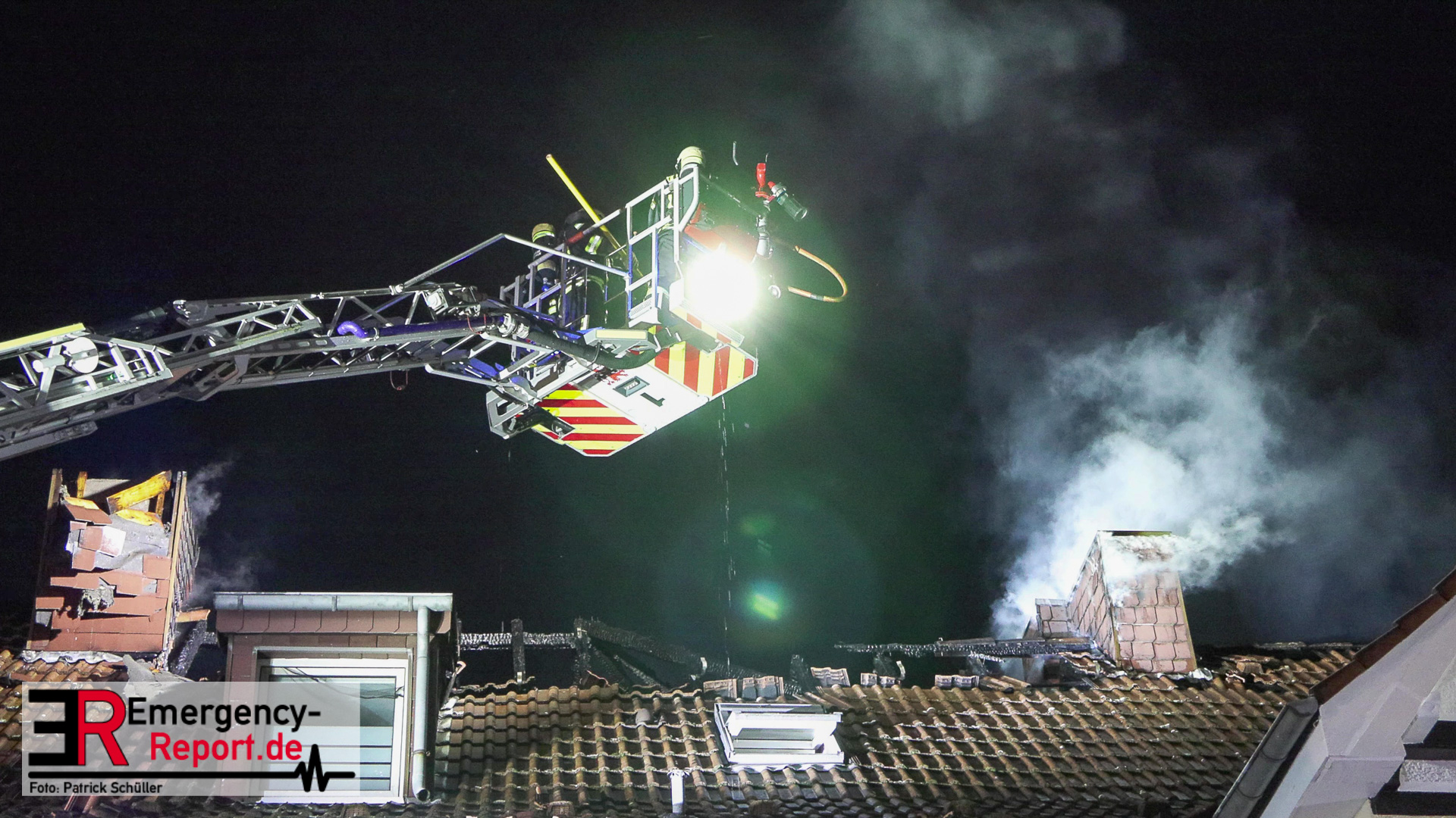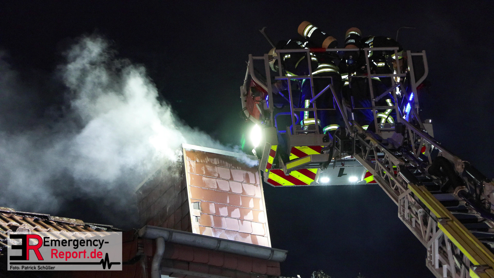 Bei Eintreffen der ersten Kräfte stellte sich die Lage so dar, dass der Dachstuhl eines Einfamilienhauses im Vollbrand war und das Feuer auf den Dachstuhl der beiden Nachbarhäuser übergegriffen hatte. Die Personen der betroffenen Häuser befanden sich bereits vor den Gebäuden. Aufgrund des Lagebildes wurde durch den Einsatzleiter eine Alarmstufenerhöhung veranlasst und weitere Kräfte zur Einsatzstelle entsandt.