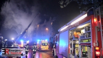 Bei Eintreffen der Feuerwehr brannte eine Wohnung im Dachgeschoss in voller Ausdehnung.