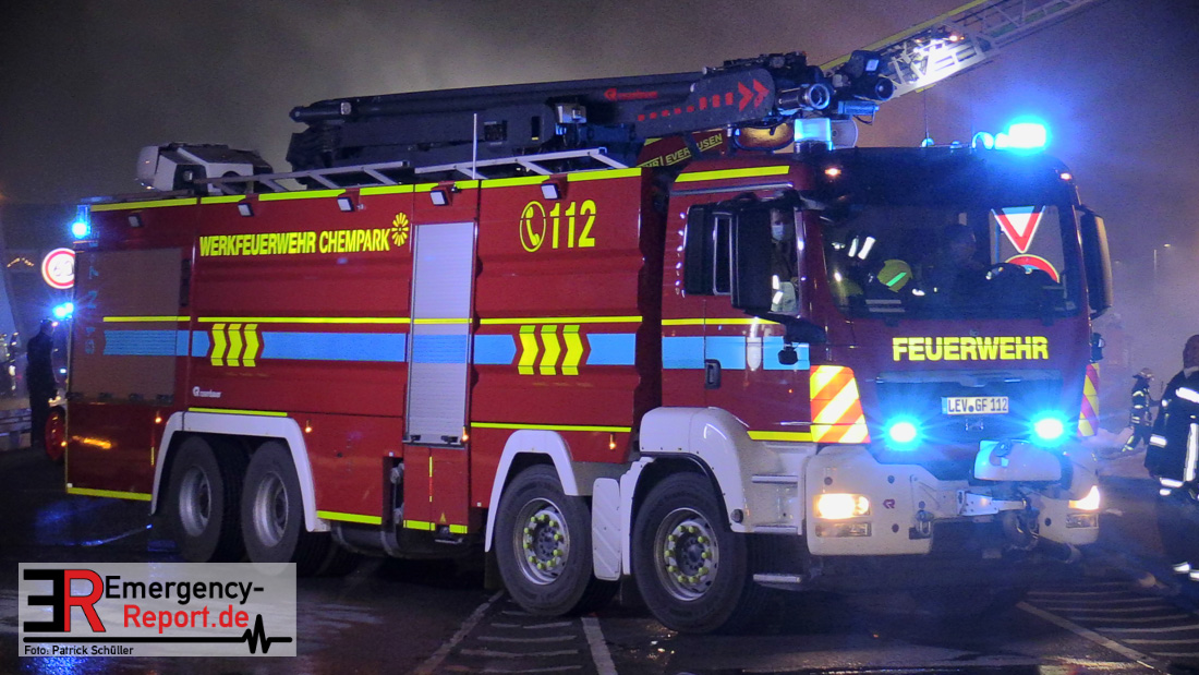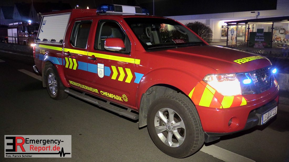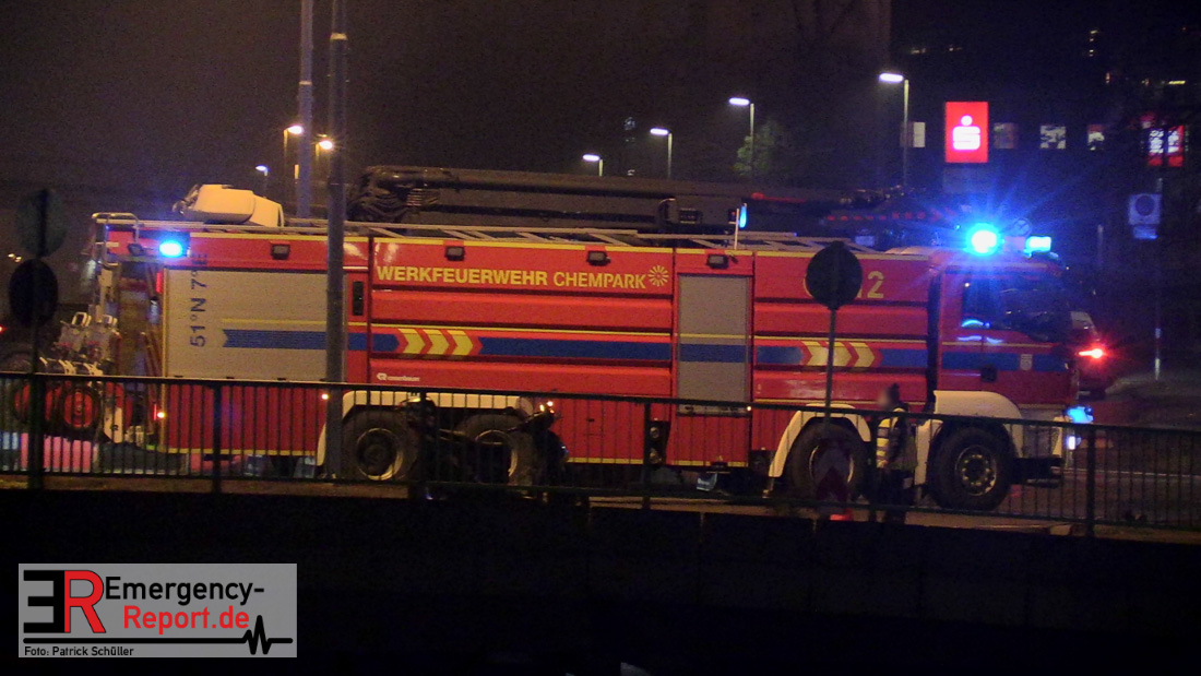 Des Weiteren wurde bei der Werkfeuerwehr Chempark ein Großtanklöschfahrzeug, ein Luftmesswagen sowie Atemschutzgeräte angefordert.