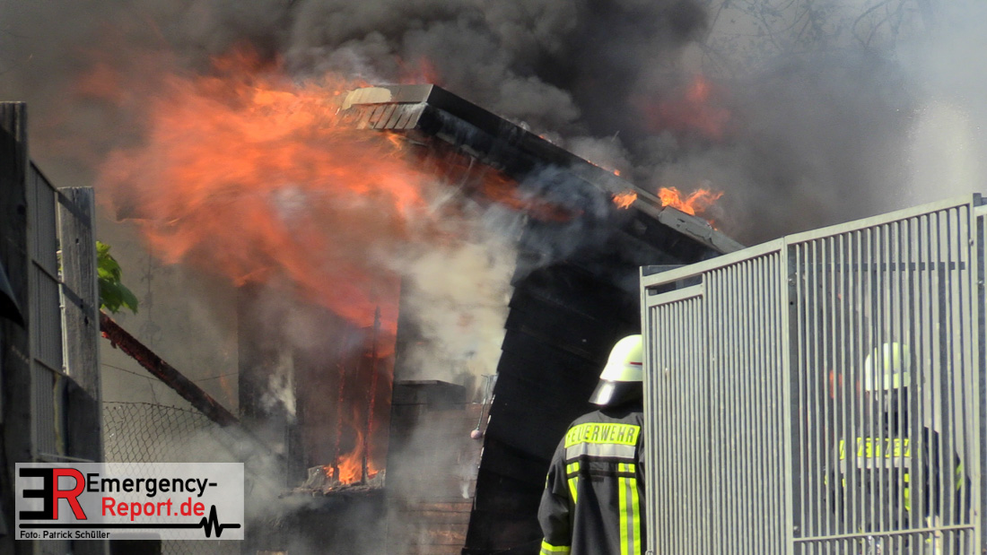 Die Erkundungen aus der Luft waren sehr hilfreich und zeigten schnell, dass der Einsatzschwerpunkt der Böschungsbrand in Alkenrath bildet. Dort hatte sich das Feuer zwischenzeitlich auf eine Gartenlaube ausgedehnt, war mittlerweile aber unter Kontrolle.