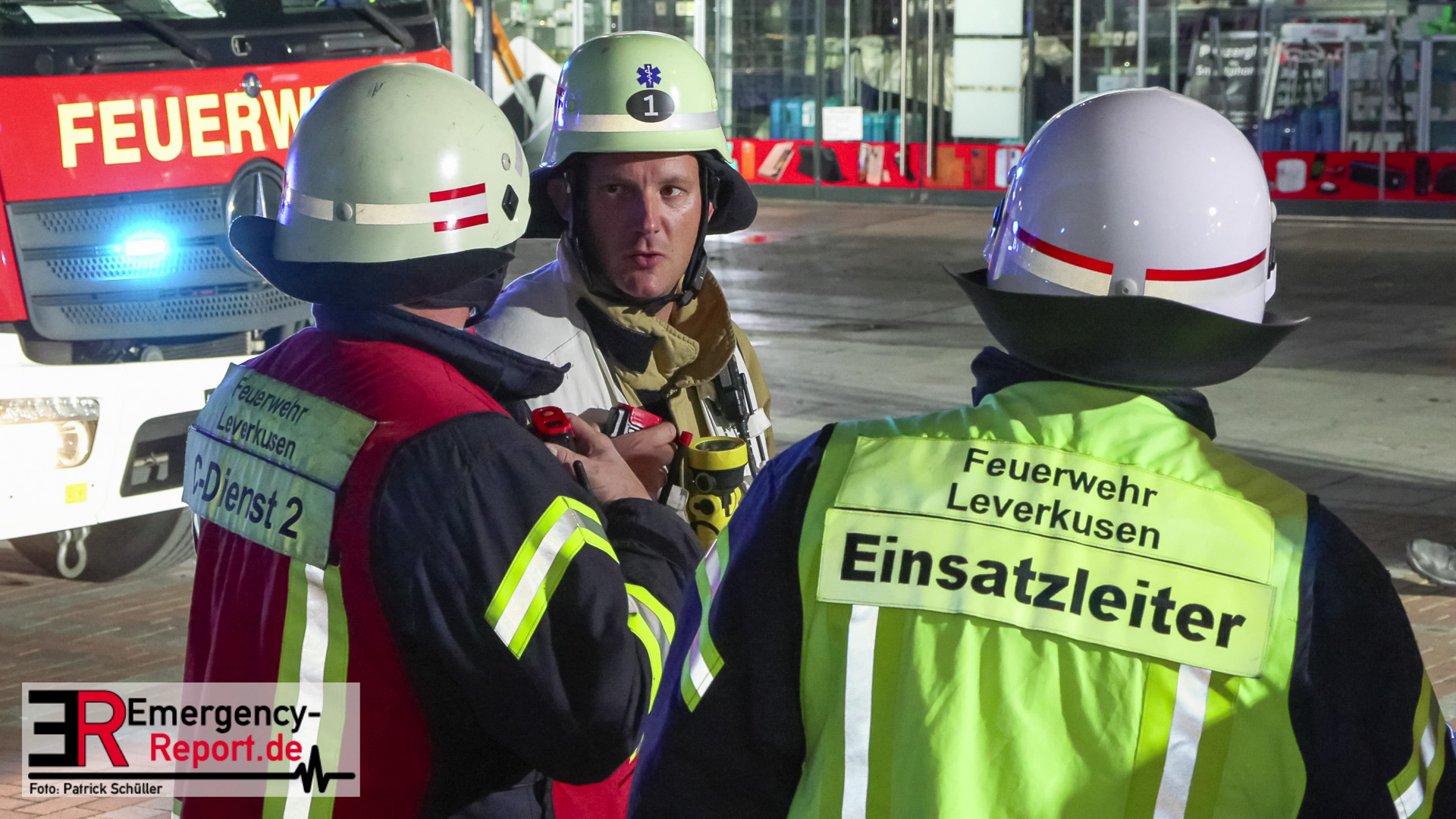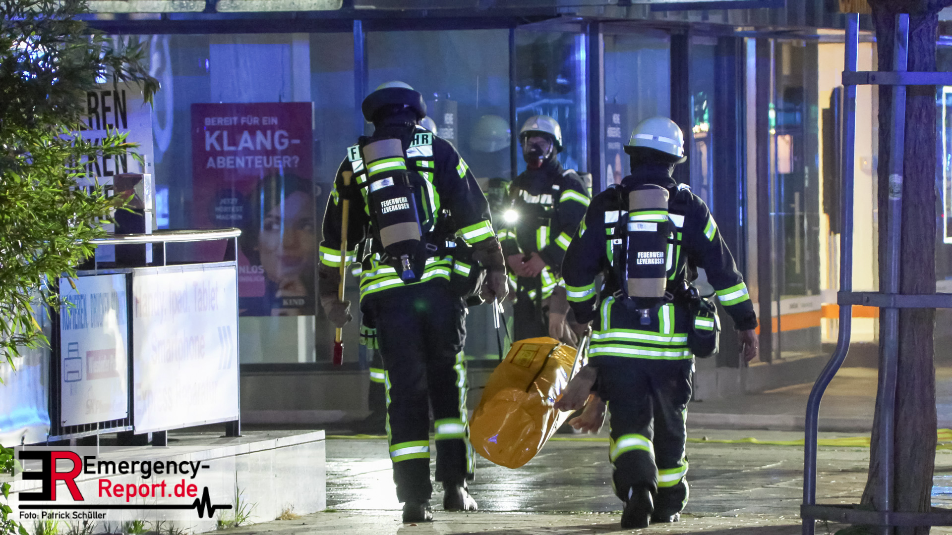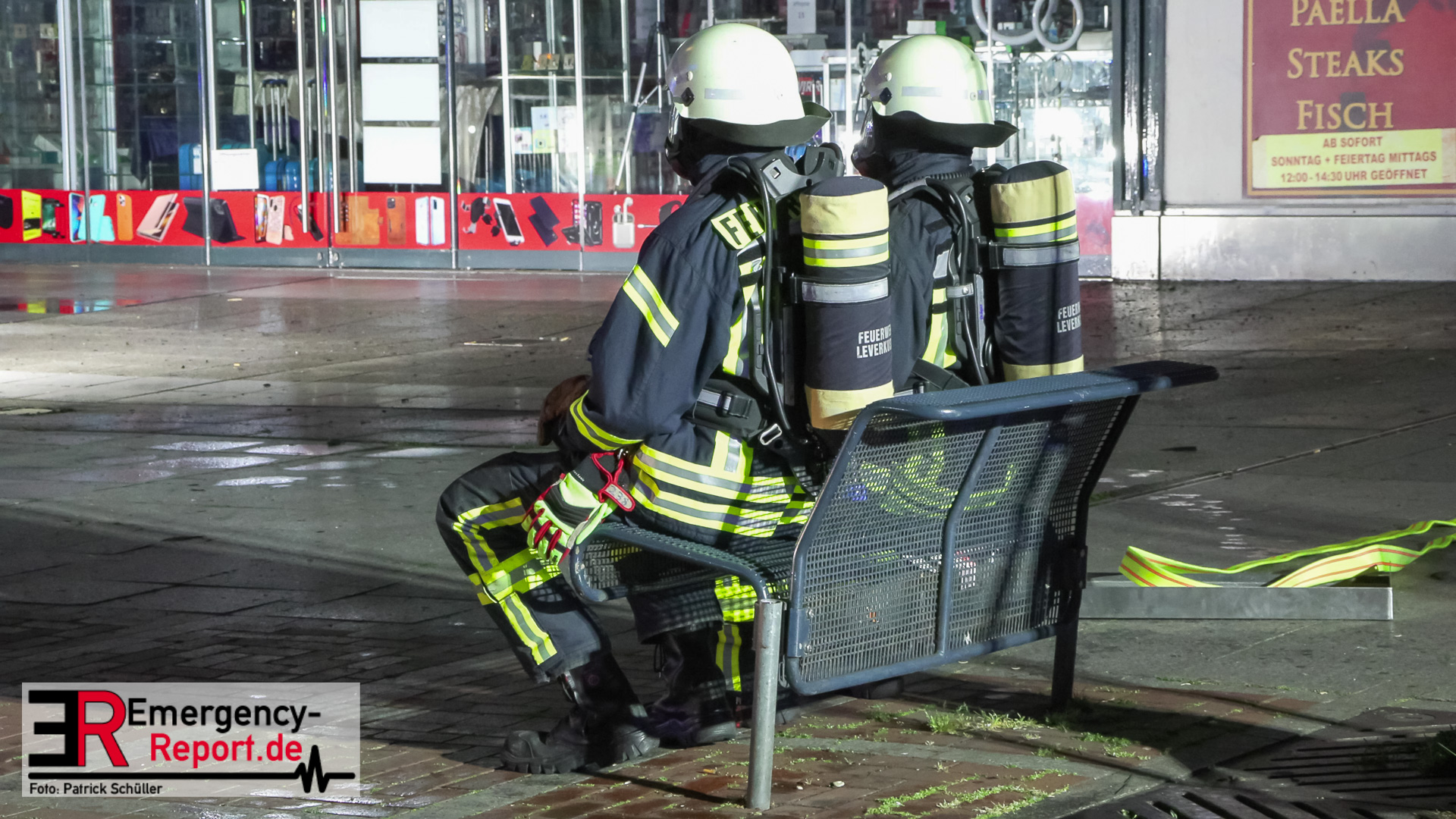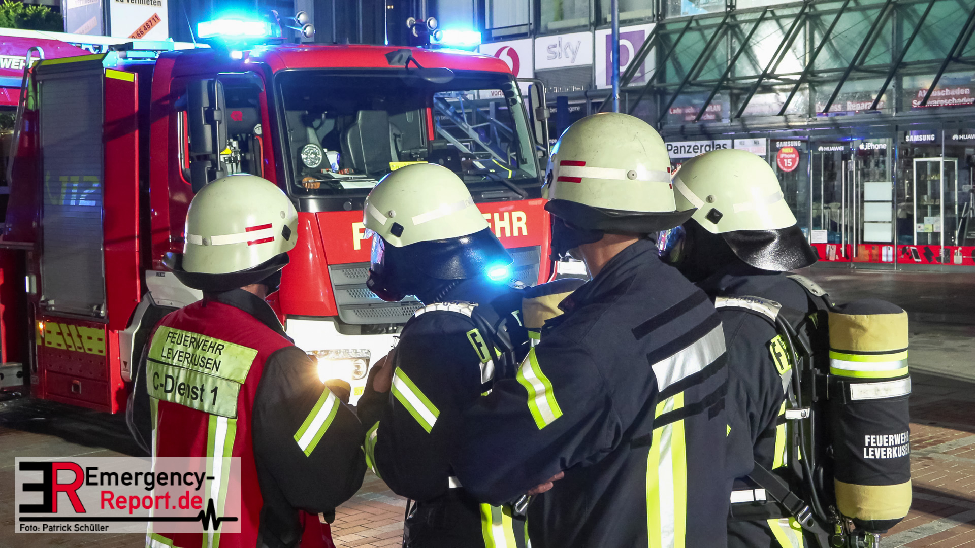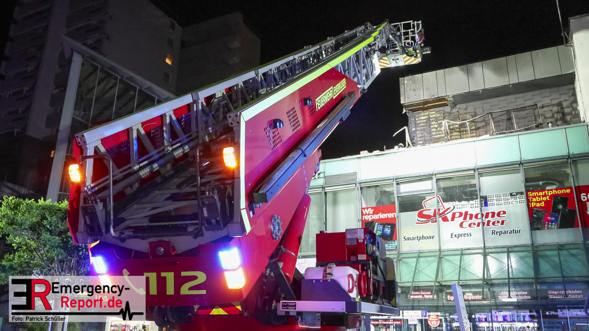 Leverkusen (ots) – Am 21.05.2025 um 23:51 Uhr wurde die Feuerwehr Leverkusen durch mehrere Anrufer über eine Rauchentwicklung im Bereich des Daches eines Geschäftsgebäudes in der Wiesdorfer Fußgängerzone informiert. Aufgrund der Vielzahl eingehen-der Notrufe wurde das Einsatzstichwort bereits auf der Anfahrt erhöht und Einsatzkräfte beider Berufsfeuerwehrwachen, die Einheiten Wiesdorf, Bürrig und Schlebusch der Freiwilligen Feuerwehr sowie Kräfte des Rettungsdienstes zur Einsatzstelle alarmiert. Vor Ort bestätigte sich die Meldung. Die Dachterrasse eines mehr-geschossigen Geschäftsgebäudes brannte.
