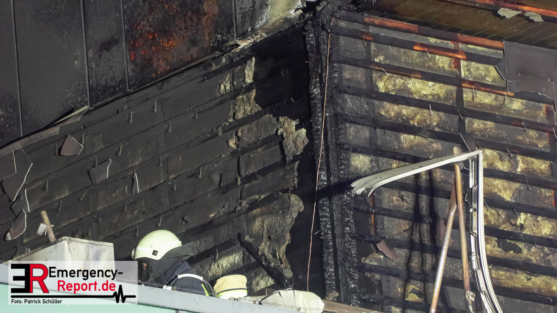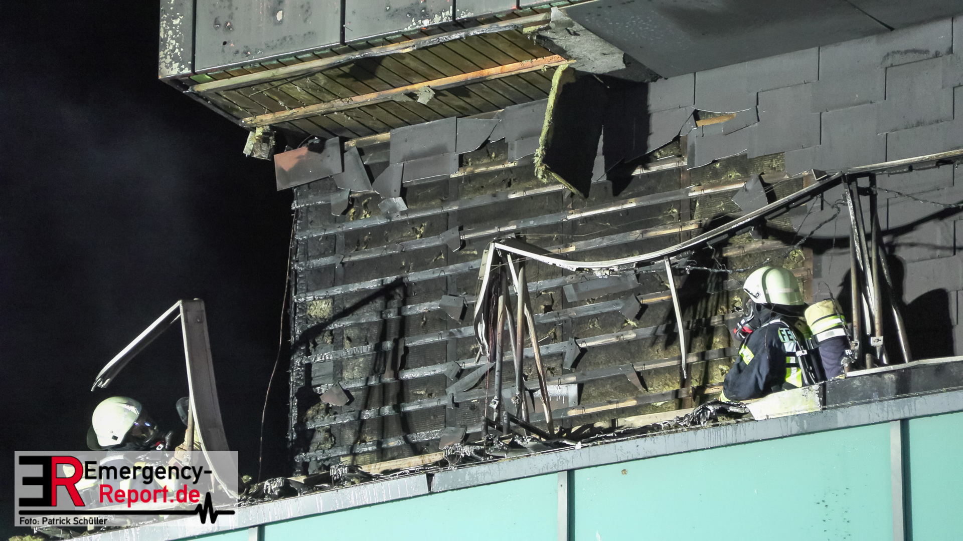 Bei Eintreffen der Feuerwehr wurde eine Person noch im Gebäude vermutet. Ein weiterer Beteiligter vor dem Gebäude hatte Rauchgase inhaliert, wurde durch den Rettungsdienst versorgt und zur weiteren Behandlung in ein Krankenhaus transportiert. Glücklicherweise wurde die vermisste Person kurze Zeit später unverletzt vor dem Gebäude angetroffen. Für die Brandbekämpfung wurden mehrere Trupps sowie ein Wenderohr über Drehleiter eingesetzt. Nach erstem Löscherfolg musste die Fassade geöffnet werden um weitere Glutnester auszuschließen.