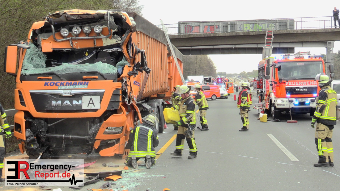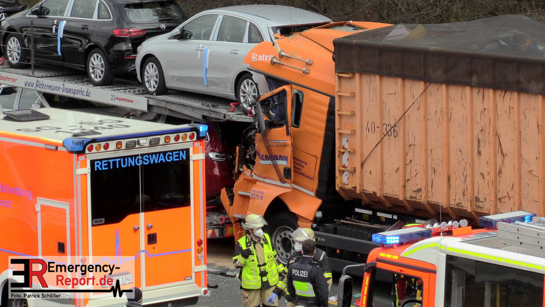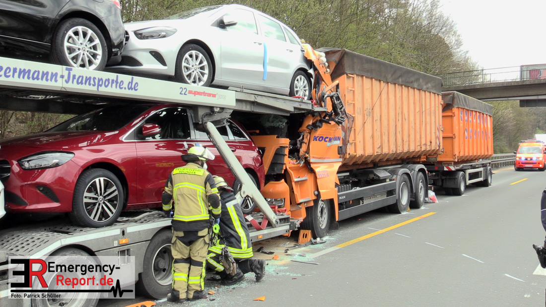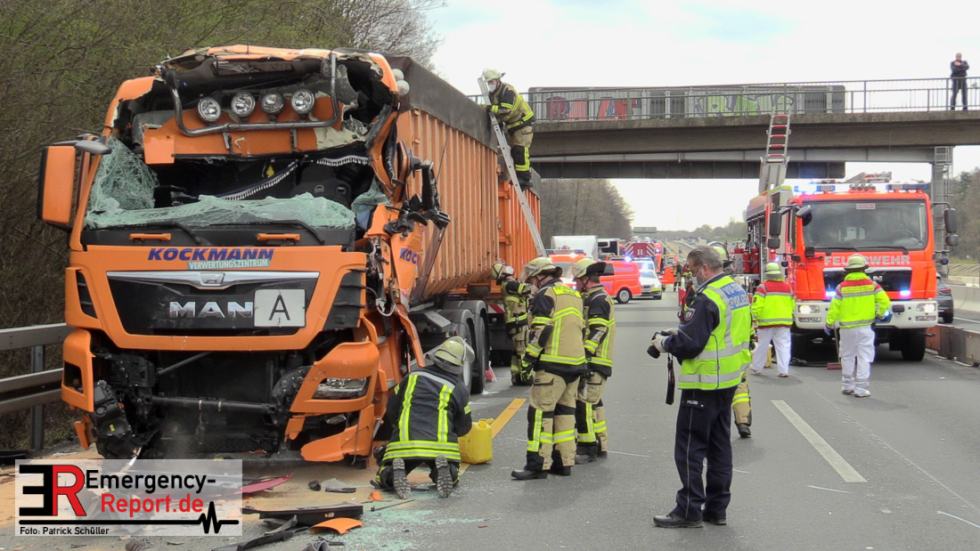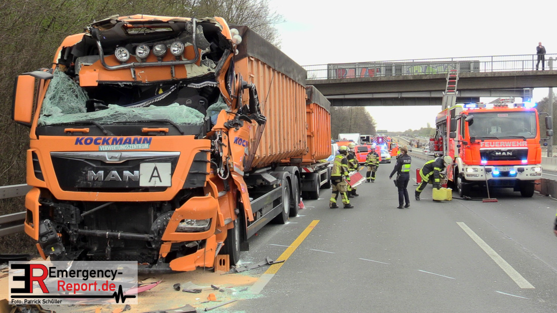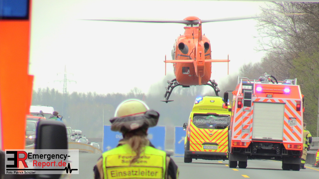 Am Freitagvormittag (09.04.2021) ereignete sich auf der Autobahn A3 in Fahrtrichtung Oberhausen ein Auffahrunfall zwischen zwei LKW. Die Fahrerkabine des einen LKW wurde dabei so schwer demoliert, dass der Fahrer schwerste Verletzungen davongetragen hat. Durch Ersthelfer konnte der Fahrer erstversorgt und aus dem LKW befreit werden. Für die eingesetzten Einsatzkräfte ereignete es sich sehr schwer zur Einsatzstelle zu gelangen, da die Rettungsgasse immer wieder durch Autofahrer zugefahren wurde. Nach Eintreffen der Einsatzkräfte am Unfallort konnte der schwerverletzte Fahrer vollumfänglich versorgt werden und wurde mit einem Rettungshubschrauber in ein Krankenhaus transportiert. Die Feuerwehr wurde noch im Bereich der Fahrzeugabsicherung und Flüssigkeitsaufnahme von auslaufenden Betriebsstoffen der geschädigten Fahrzeuge tätig. Während des Einsatzes war die A3 in Fahrtrichtung Oberhausen durch die Polizei vollgesperrt.
