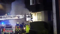 Am 13.01.2018 um 01:25 wurde die Feuerwehr Solingen zu einem Brand im Erdgeschoss eines viergeschossigen Wohnhauses an der Katternberger Straße alarmiert. Beim Eintreffen der Einsatzkräfte hatten sich die Bewohner der Brandwohnung bereits selbst in Sicherheit bringen können. Beide Personen wurden durch den Rettungsdienst versorgt und mit Verdacht auf Rauchgasvergiftung in das Klinikum Solingen transportiert. Durch die Vornahme zweier Strahlrohre unter Atemschutz konnten die Einsatzkräfte den Brand schnell unter Kontrolle bringen und eine weitere Ausbreitung verhindern.