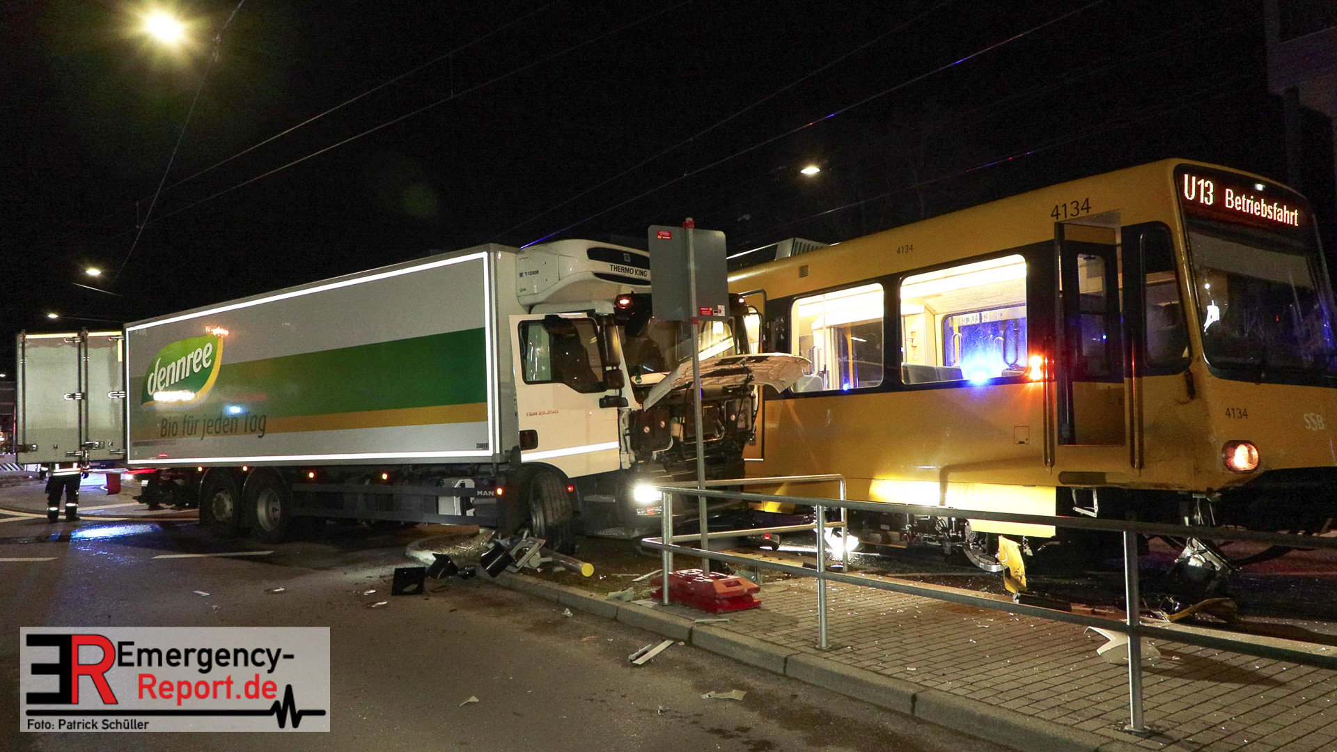 Stuttgart-Wangen (ots) – Mehrere 10.000 Euro Schaden und ein leichtverletzter Lastwagenfahrer sind die Bilanz eines Verkehrsunfalles in der Nacht zum Montag (16.01.2023) auf der Kreuzung Hedelfinger Straße/Otto-Konz-Brücken. Ein 39-Jähriger war mit seinem MAN-Lastwagen gegen 00.00 Uhr in der Hedelfinger Straße Richtung Hedelfingen unterwegs und wollte nach links auf die Otto-Konz-Brücken abbiegen. Dabei stieß er mit einer Stadtbahn der Linie U13 zusammen, die in Richtung Hedelfingen unterwegs war und von einem 43-Jährigen gesteuert wurde. Ersten Ermittlungen zufolge soll der Lastwagenfahrer das Rotlicht nicht beachtet haben. Er erlitt bei dem Aufprall leichte Verletzungen. Zeugen werden gebeten, sich unter der Rufnummer +4971189904100 bei der Verkehrspolizei zu melden.