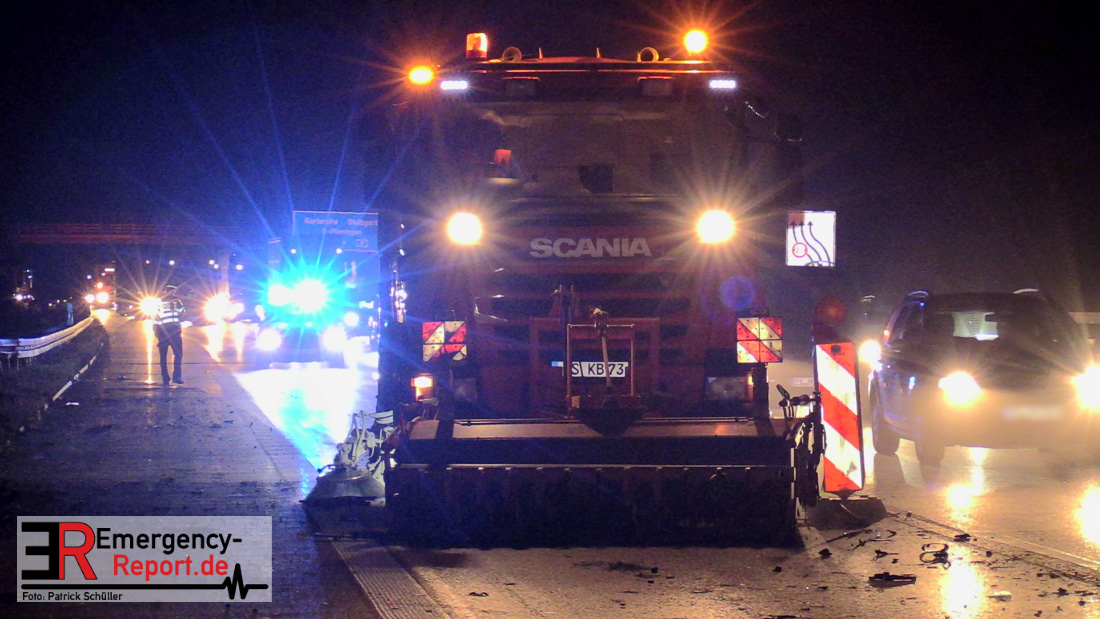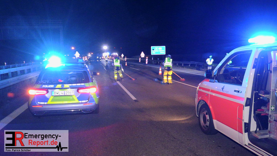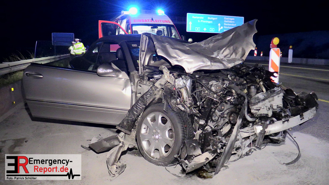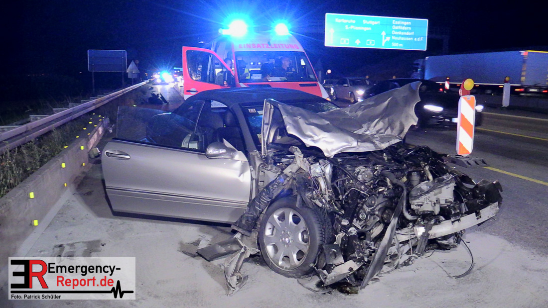 Am Montagabend (16.09.2019) gegen 20.50 Uhr kam es auf der BAB 8 in Fahrtrichtung München zu einem Verkehrsunfall mit zwei Fahrzeugen. Aus bislang unbekannter Ursache fuhr eine 50-Jährige mit einem Mercedes-Benz in das Heck des Peugeot eines 37-Jährigen. Beide Fahrzeuge fuhren hintereinander auf dem mittleren Fahrstreifen. Der Peugeot geriet nach dem Aufprall nach links in die Leitplanke, drehte sich und kam zwischen dem linken und mittleren Fahrsteifen zum Stillstand. Der Mercedes-Benz schleuderte nach rechts, kollidierte mit der Leitplanke sowie einer Betonmauer und kam auf dem Standstreifen zum Stehen. Durch den Unfall wurden beide Fahrer leicht verletzt und in umliegende Krankenhäuser verbracht. Beide Fahrzeuge waren nicht mehr fahrbereit und mussten abgeschleppt werden. Der Sachschaden an den Fahrzeugen beläuft sich ersten Schätzungen zufolge auf 25.000 Euro. Der Sachschaden an der Leitplanke beträgt 3.000 Euro. Zur Unfallaufnahme waren zwei Streifen der Verkehrspolizeidirektion Ludwigsburg im Einsatz. Zur Beseitigung des Trümmerfeldes musste die BAB 8 für etwa eineinhalb Stunden voll gesperrt werden. Hierzu war die Autobahnmeisterei eingesetzt. Zeitweise gab es bis zu sechs Kilometer Rückstau.