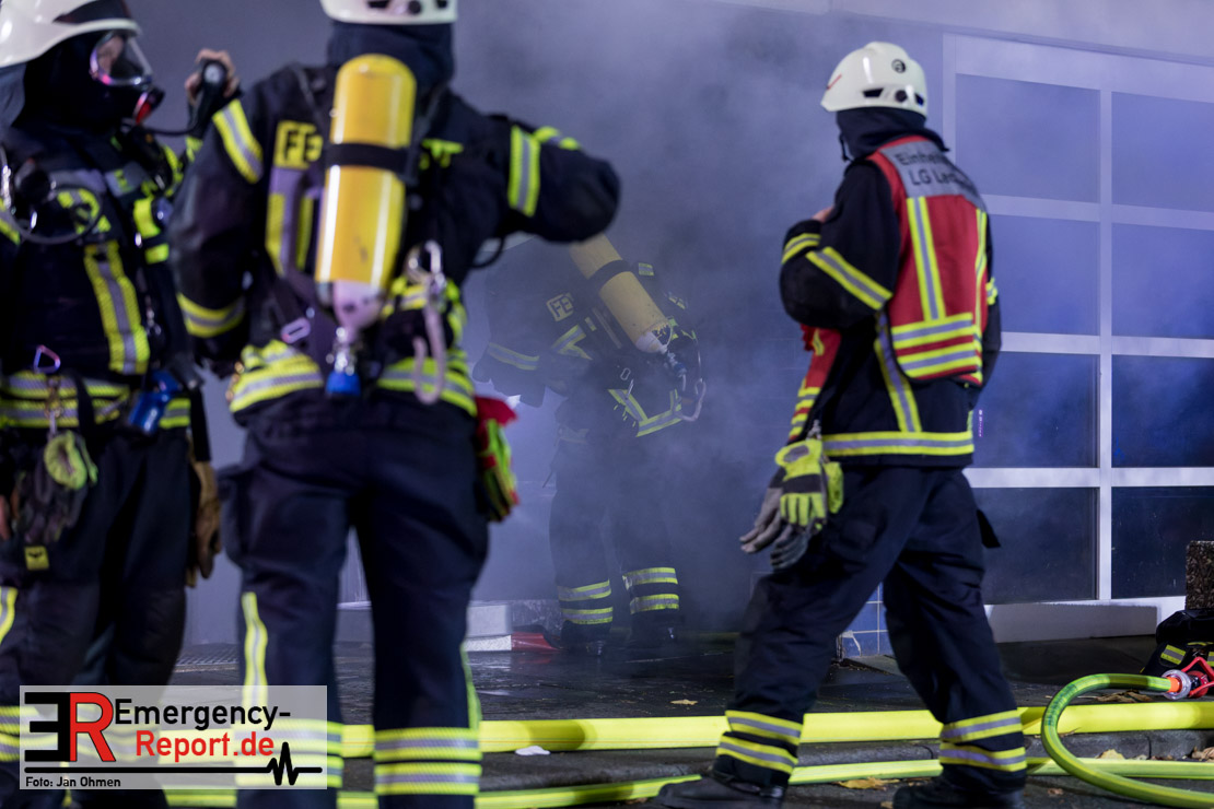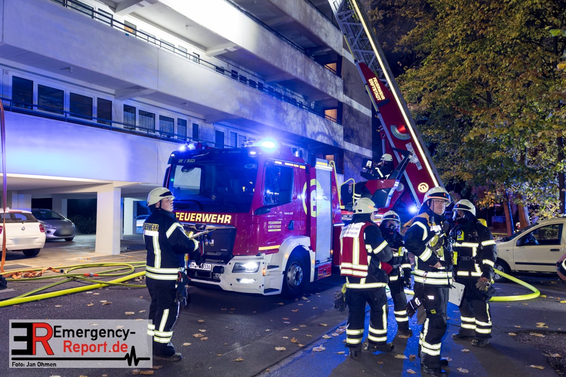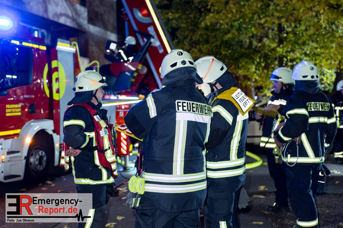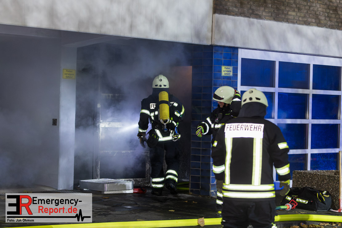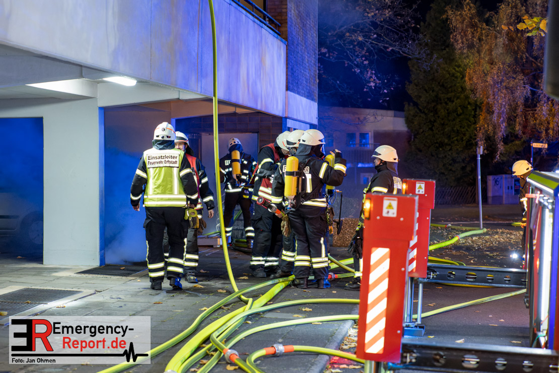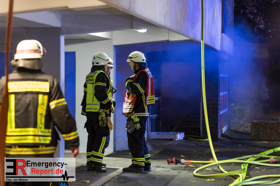 Zu einem Gebäudebrand nach Lechenich wurde die Feuerwehr Erftstadt am Montag Abend um kurz nach neun Uhr alarmiert. Den ersteintreffenden Kräften an dem Wohnblock, in dem über hundert Personen gemeldet waren, stellte sich die Lage so dar, dass massive Rauchentwicklung aus dem Kellergeschoss zu erkennen war, während Kräfte der Polizei bereits dabei waren, die Bewohner über das nicht verrauchte der beiden Treppenhäuser ins Freie zu holen. Während der Rettungsdienst begann, die knapp 50 im Gebäude betroffenen Personen zu sichten, wurde gleichzeitig die Brandbekämpfung im Keller eingeleitet und das zweite, verrauchte Treppenhaus sowie die Wohnungen des Gebäudes kontrolliert. Nachdem der Rettungsdienst alle Betroffenen nach der Untersuchung als „weiß“, d.h. gesundheitlich unbeeinträchtigt einstufen konnte, öffnete Pfarrerin Friederike Schädlich das schräg gegenüberliegende evangelische Gemeindezentrum, so dass die Betroffenen betreut werden konnten. Da die Wohnungen aufgrund der offenen Bauweise des Gebäudes weder vom Feuer noch von Rauch betroffen waren, konnten die Bewohner nach dem Ende der Löscharbeiten wieder in ihre Wohnungen zurückkehren. Derzeit ist geplant, eine Brandwache bis 03:00 Uhr am Objekt zu belassen.
