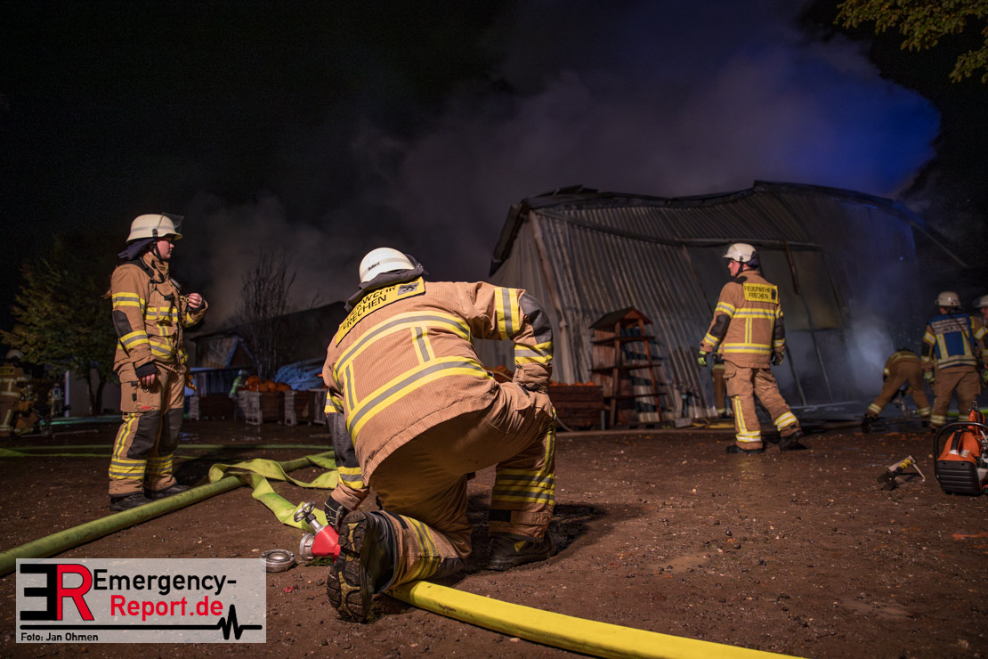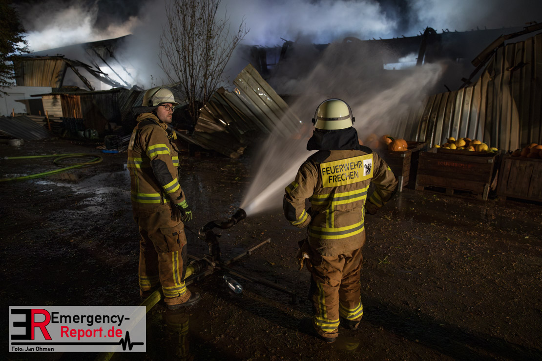 Am Mittwochabend (25. Oktober) ist in Frechen die Lagerhalle eines Gutshofs aus bislang ungeklärter Ursache in Brand geraten. Während Feuerwehrleute die Flammen bekämpften, evakuierten Polizisten Wohnhäuser und sperrten mehrere Straßen rund um den Brandort ab. Die Beamten des zuständigen Kriminalkommissariats 11 haben den Brandort bereits beschlagnahmt und die Ermittlungen aufgenommen.