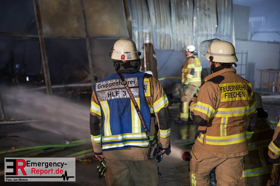 Unter dem Einsatzleiter Brandoberinspektor Torsten Kremer waren neben der freiwilligen Feuerwehr Frechen Einheiten aus den Feuerwehren Bergheim, Pulheim, Hürth, Erftstadt, Bedburg und der Kerpen im Einsatz. Unterstützend vor Ort waren die Polizei, Vertreter der Stadtentwässerung der Stadt Frechen und der unteren Wasserbehörde. Die Bürgermeisterin Susanne Stupp.