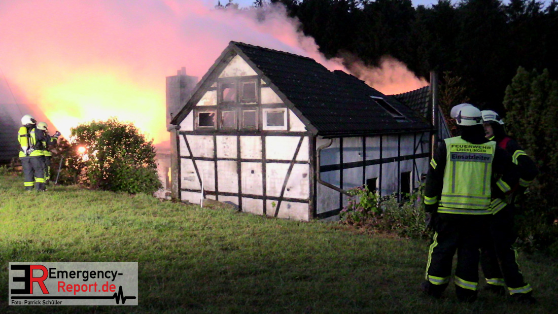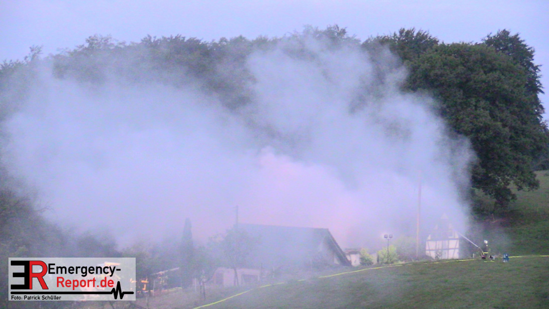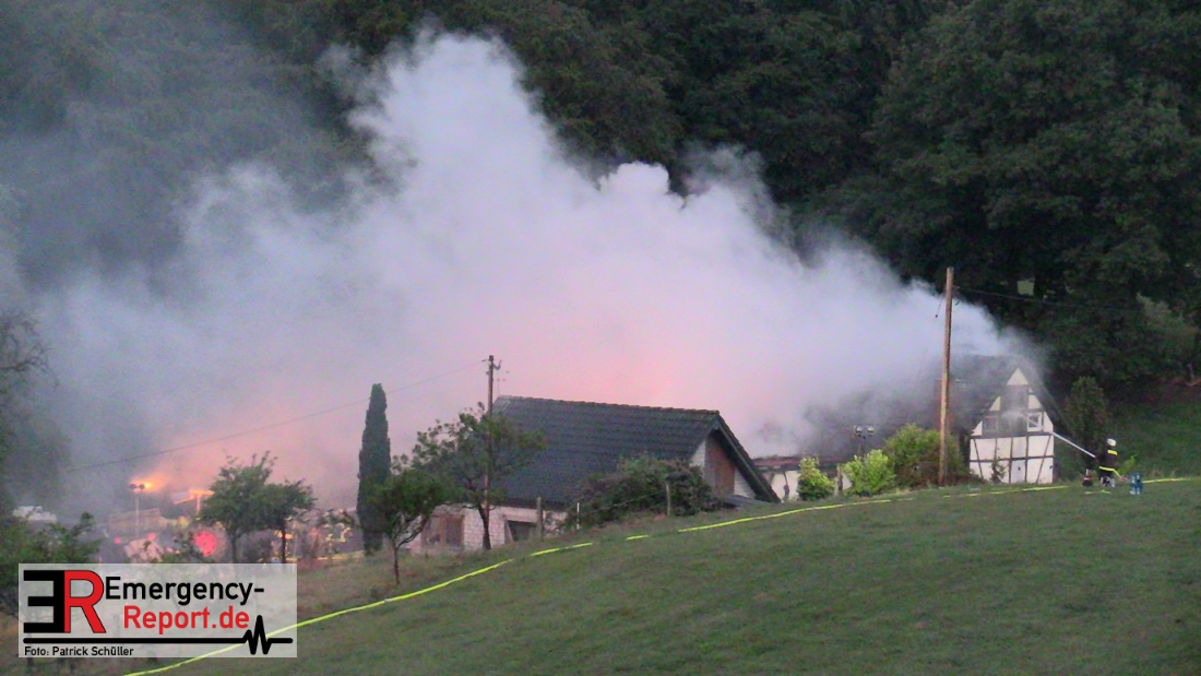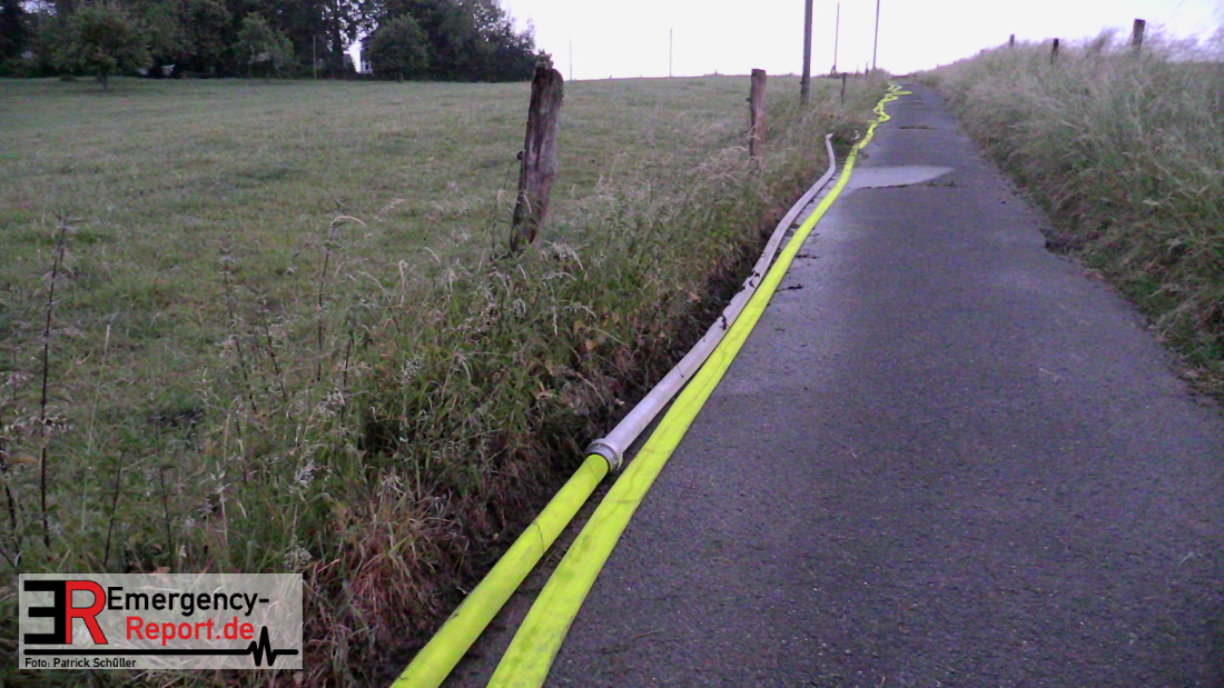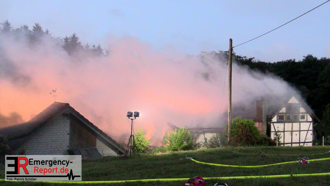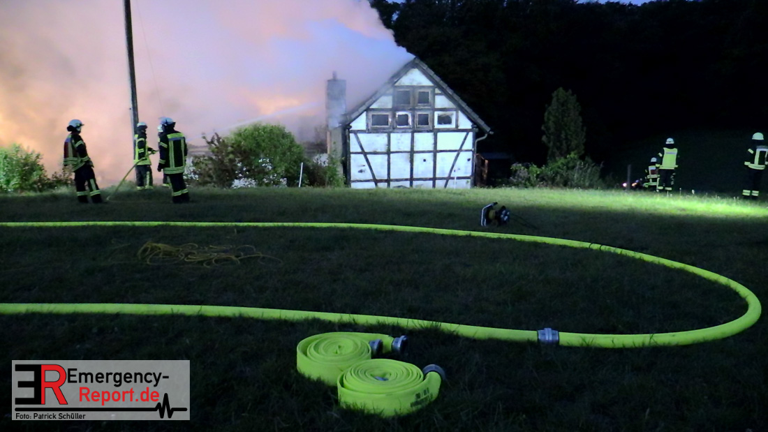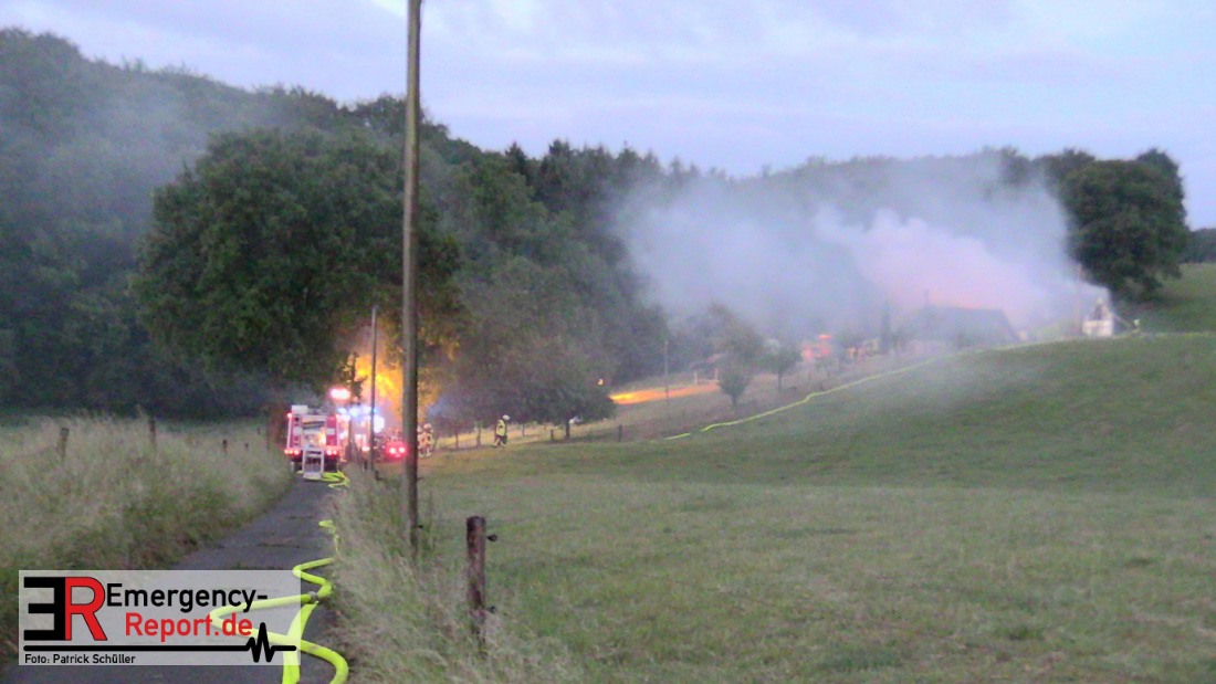 Die Kreisleitstelle alarmierte umgehend die Löschzüge Metzholz und Witzhelden sowie den Einsatzleitwagen und die Drehleiter des Löschzug Stadtmitte. Den ersteintreffenden Einsatzkräften bot sich schreckliches Lagebild: ein etwas von der Landstraße abgelegenes Fachwerkhaus stand lichterloh in Flammen. Landwirtschaftliche Gerätschaften und Fahrzeuge die sich in direkter Nähe befanden brannten ebenfalls schon. Zu diesem Zeitpunkt war völlig unklar ob sich noch Personen in dem brennenden Haus befinden.