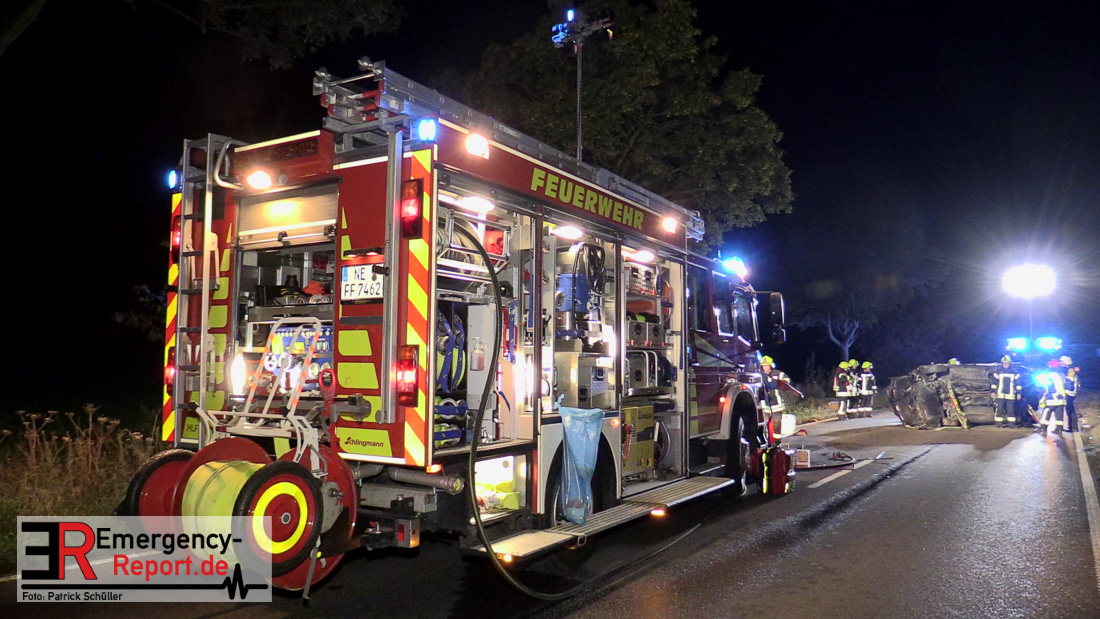 Am Montagmorgen (04.10.2021) wurde bereits innerhalb einer Erstalarmierung ein größerer Kräfteansatz von Feuerwehr und Rettungsdienst zu einem gemeldeten Verkehrsunfall mit 3 eingeklemmten Personen auf die L116, kurz vor der Ortslage Neuenhoven, alarmiert. Die ersteintreffenden Kräfte fanden einen Alleinunfall eines mit 5 Personen besetzten PKW vor. Aufgrund des Unfallhergangs kam der PKW auf der Seite zum Liegen. 2 Personen konnten vor Eintreffen der Rettungskräfte den verunfallten PKW verlassen. Die 3 verbleibenden Insaßen waren im PKW eingeschlossen, sodass eine technische Rettung mit hydraulischem Rettungsgerät von Nöten war. Aufgrund des Zustands der noch im PKW befindlichen Insaßen wurde in Rücksprache mit dem Notarzt nach der Stabilisierung des Fahrzeuges umgehend eine sogenannte Sofortrettung eingeleitet und alle Patienten an den Rettungsdienst zur weiteren Behandlung übergeben. Seitens des Rettungsdienstes erfolgte ein Transport in Kliniken mit Maximalversorgung. Weitere Aufgaben der Feuerwehr bestanden u.a. in der Sicherstellung des Brandschutzes sowie der Ausleuchtung der Einsatzstelle. Die L116 war im Bereich der Unfallstelle während des Einsatzes und der anschließenden Unfallaufnahme der Polizei voll gesperrt. Im Einsatz befanden sich neben rund 40 Einsatzkräften der Feuerwehr noch 5 Rettungswagen, 3 Notärzte, sowie der Leitende Notarzt und organisatorische Leiter Rettungsdienst des Rhein-Kreis Neuss. Vorbildlich erwähnenswert ist die Betreuung der Insaßen durch Ersthelfer bis zum Eintreffen der Rettungskräfte.