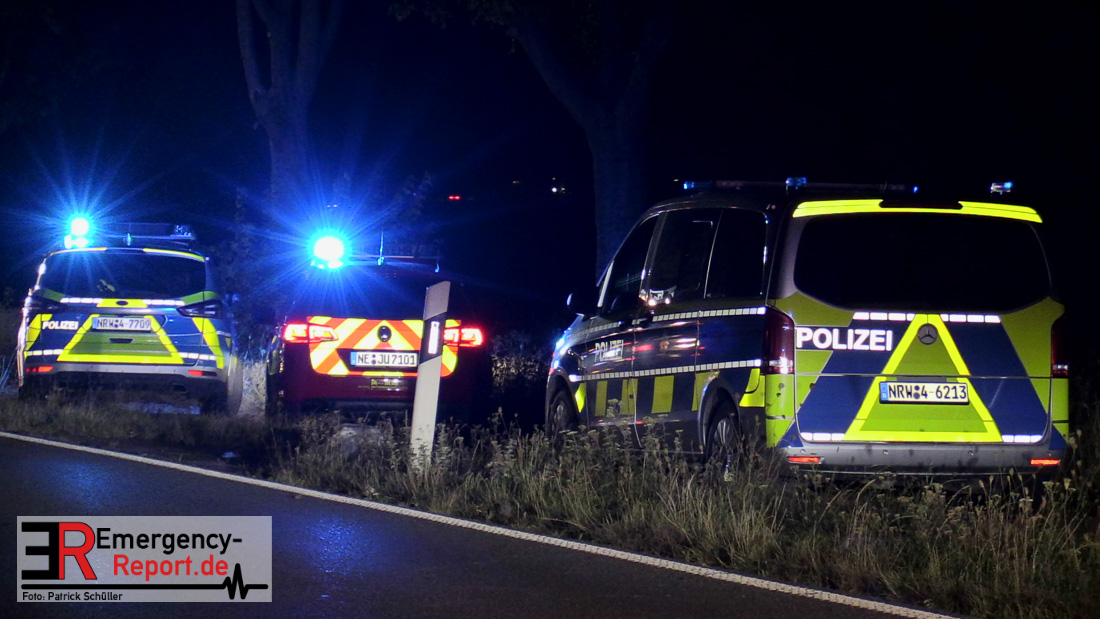 Am Montag (04.10.), um kurz nach 5 Uhr morgens, kam es auf der Landstraße 116, zwischen den Ortsteilen Neuenhoven und Gierath aus bislang unklaren Gründen zu einem Verkehrsunfall, bei dem fünf Personen zum Teil schwer verletzt wurden. Nach ersten Erkenntnissen war der 44 Jahre alte Fahrer eines Audis in Richtung Gierath unterwegs, als er aus bislang unbekannten Gründen nach rechts von der Fahrbahn abkam. Infolgedessen überschlug sich das Fahrzeug in einem Straßengraben und wurde so schwer beschädigt, dass die Insassen im Fond von der Feuerwehr geborgen werden mussten. Drei Fahrzeuginsassen erlitten schwere Verletzungen, der Fahrzeugführer und ein weiterer Insasse leichte Verletzungen. Alle wurden in umliegende Krankenhäuser transportiert. Die Unfallaufnahme und Spurensicherung erfolgt durch das Zentrale Unfallaufnahmeteam der Kreispolizeibehörde Rhein-Kreis Neuss. Das Fahrzeug wurde sichergestellt und durch ein Abschleppunternehmen geborgen. Die Sperrung der Landstraße 116 wurde nach Abschluss der Reinigungsarbeiten gegen 09:30 Uhr aufgehoben. Die weiteren Ermittlungen hat das Verkehrskommissariat Grevenbroich übernommen.