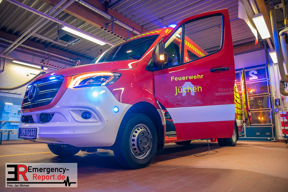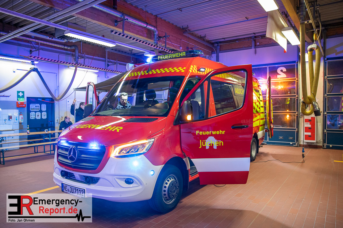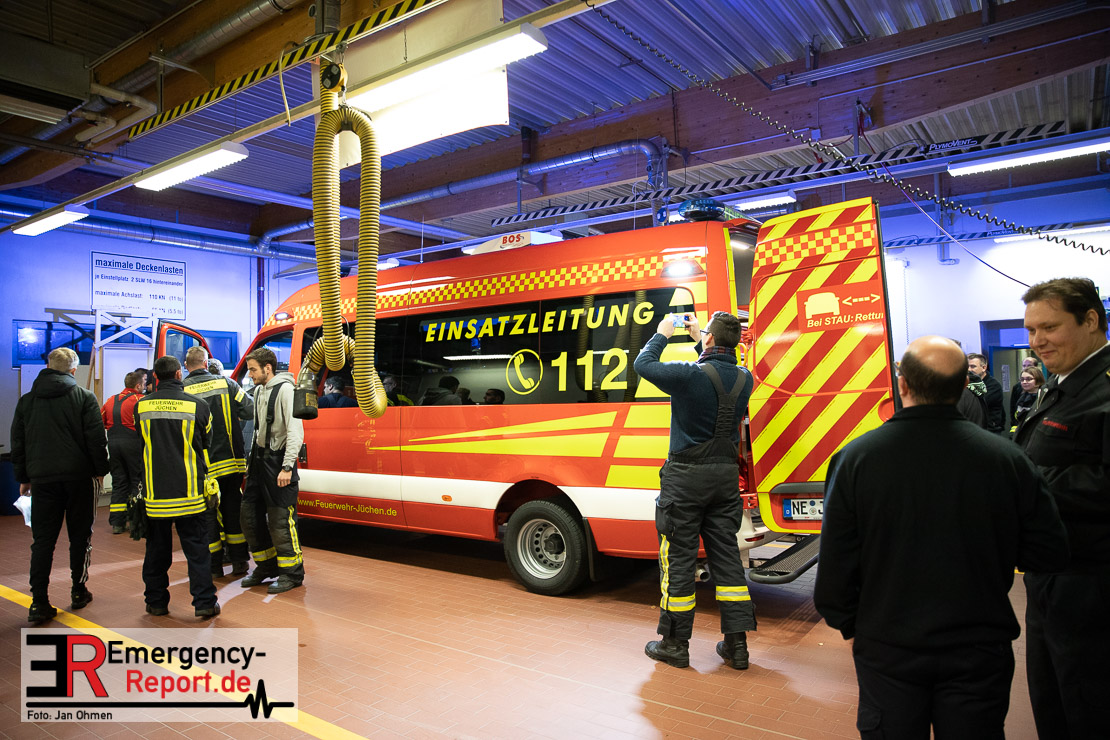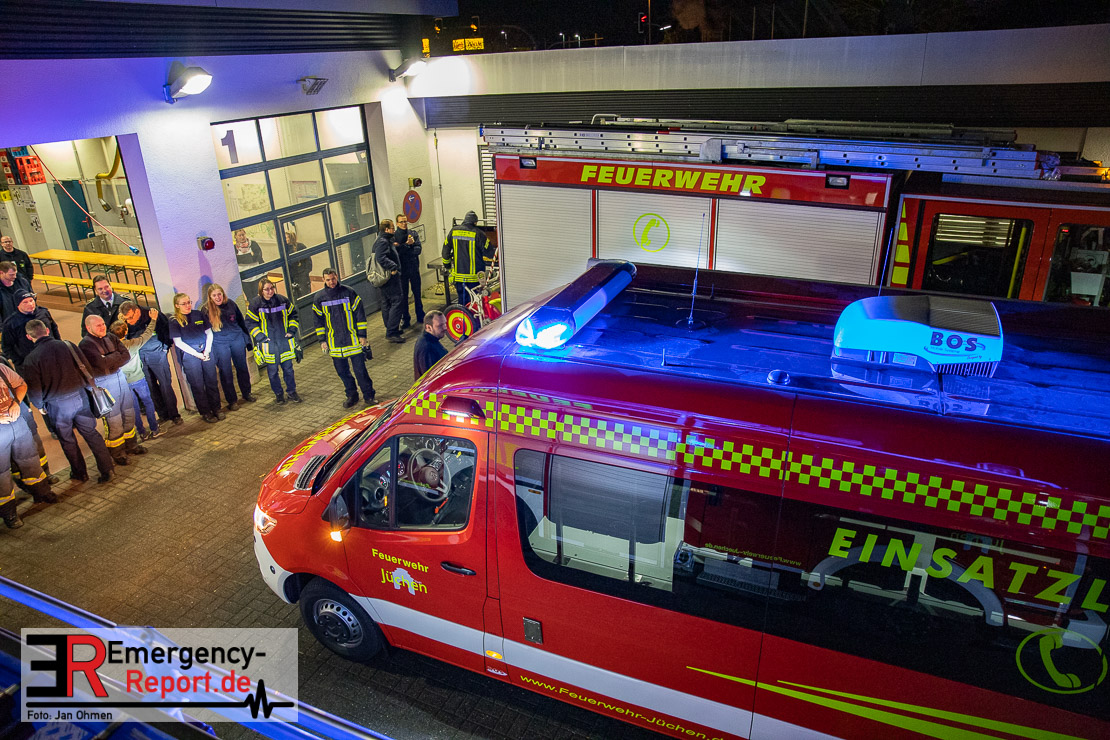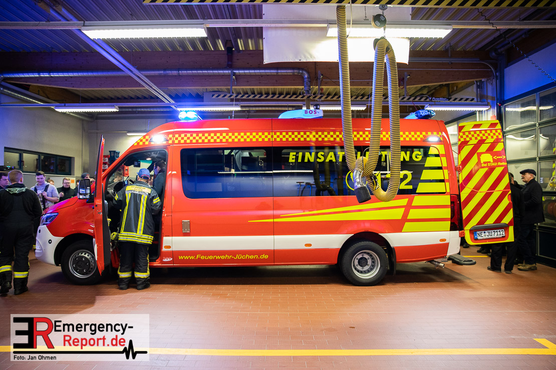 Am Abend war es endlich soweit. Die Feuerwehr Jüchen hat ihren neuen ELW1 in Empfang genommen. Nach knapp 3 Jahren intensiven Besprechungen, Planungen und der eigentlichen Produktion des Fahrzeuges war es am heutigen Abend endlich soweit – Sie konnten den neuen ELW1 bei sich im Gerätehaus begrüßen. Das Fahrzeug basiert auf einem Mercedes Benz Sprinter. Zu den Technischen Daten wird noch ein ausführlicher Text folgen. Vielen Dank für die Einladung!