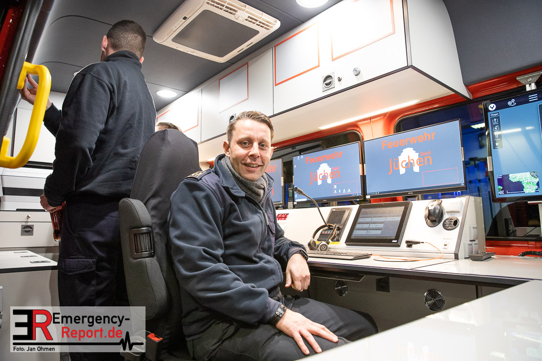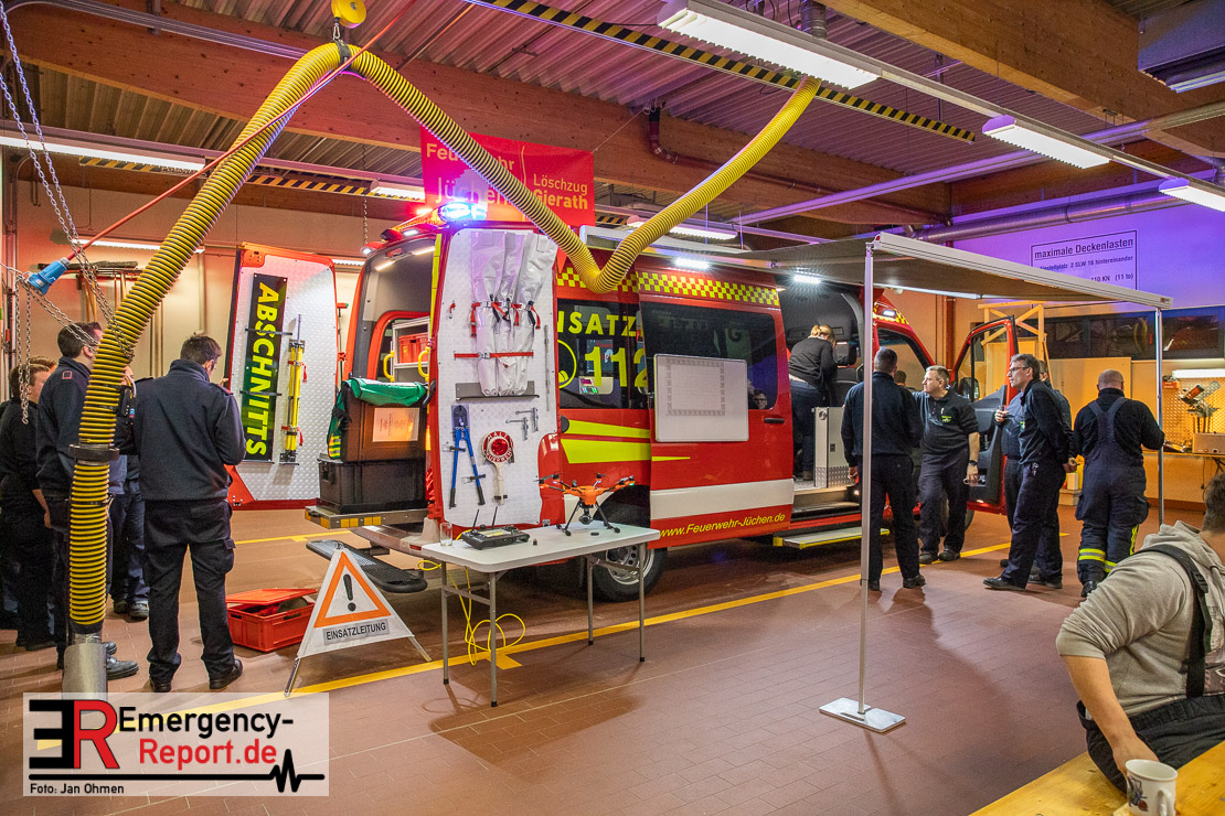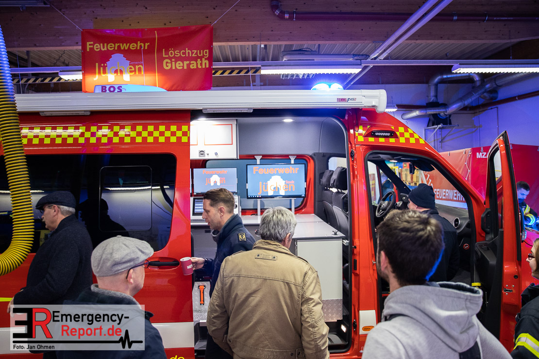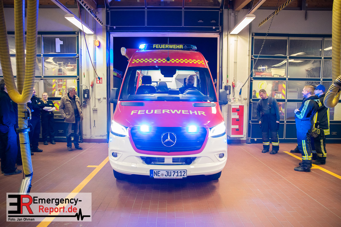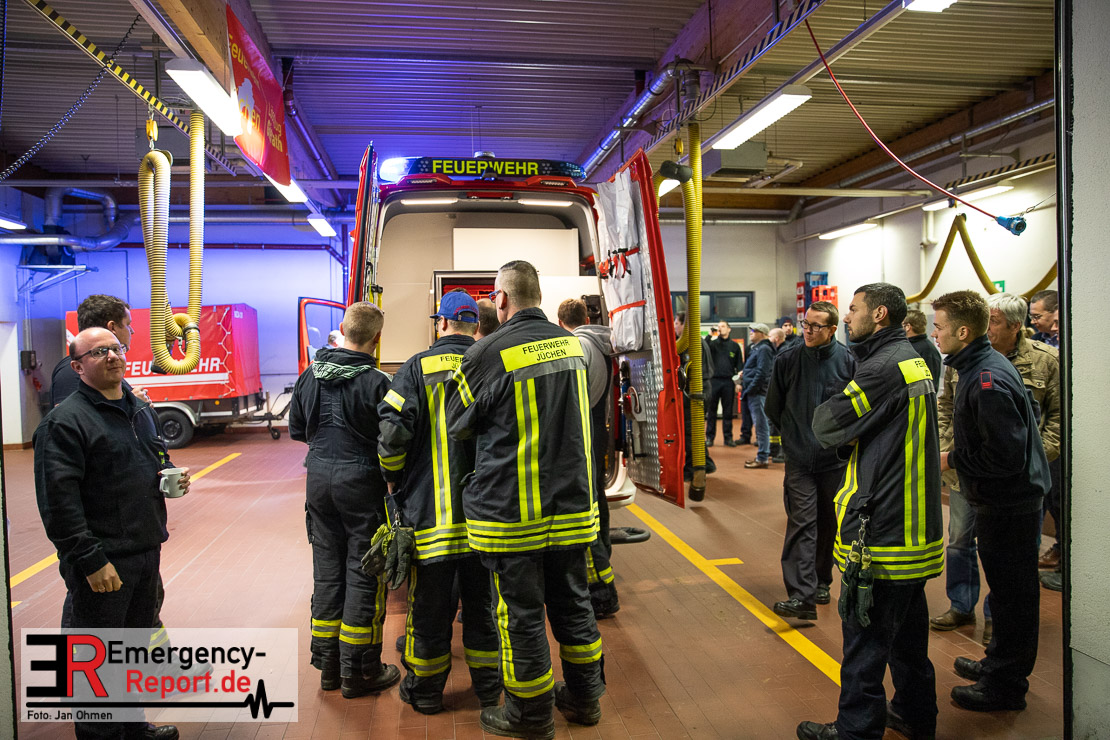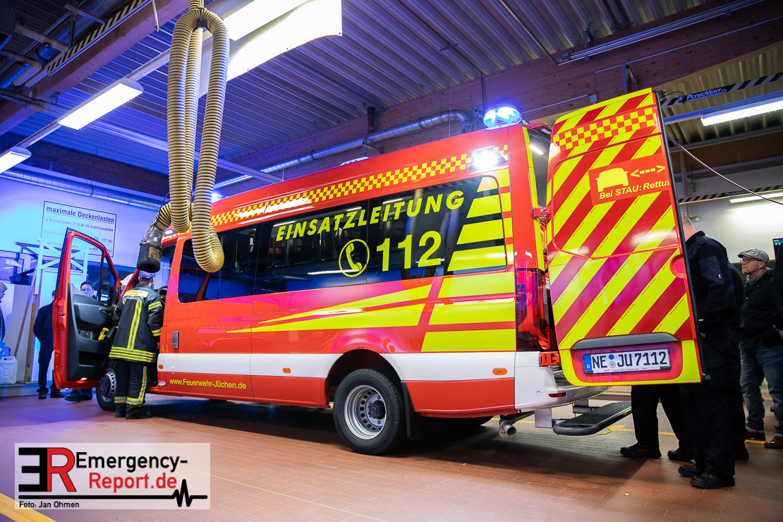 Am Abend war es endlich soweit. Die Feuerwehr Jüchen hat ihren neuen ELW1 in Empfang genommen. Nach knapp 3 Jahren intensiven Besprechungen, Planungen und der eigentlichen Produktion des Fahrzeuges war es am heutigen Abend endlich soweit – Sie konnten den neuen ELW1 bei sich im Gerätehaus begrüßen. Das Fahrzeug basiert auf einem Mercedes Benz Sprinter. Zu den Technischen Daten wird noch ein ausführlicher Text folgen. Vielen Dank für die Einladung!