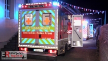 Um 02.33 Uhr wurde die Feuerwehr Dormagen am Donnerstag, den 05.07.2018 zu einem Zimmerbrand mit Menschenleben in Gefahr in die Altstadt von Zons alarmiert. Beim Eintreffen der ersten Kräfte wurde ein ausgedehnter Zimmerbrand mit starker Rauchentwicklung im Untergeschoss eines Mehrfamilienhauses festgestellt. Die Bewohner konnten ihre Wohnungen glücklicherweise bis zum Eintreffen der Feuerwehr selbstständig verlassen. Umgehend wurde die Brandbekämpfung im Innen- und Außenangriff unter Atemschutz durch 2 Trupps eingeleitet. Ein weiterer Trupp unter Atemschutz kontrollierte und belüftete die anderen Wohnungen. Alle Anwohner wurden durch den Rettungsdienst gesichtet und betreut. Von den acht betroffenen Anwohnern wurden sechs mit Verdacht auf einer Rauchgasvergiftung zur weiteren Untersuchung in ein Krankenhaus transportiert. Der Transport wurde mittels eines Großkrankentransportwagens der Feuerwehr Düsseldorf unter notärztlicher Begleitung durchgeführt. Die Brandwohnung ist unbewohnbar. Drei weitere Wohnungen wurden durch den Brandrauch in Mitleidenschaft gezogen, so dass hier eine Nutzung vorerst untersagt wurde. Die betroffenen Anwohner kommen bei Verwandten unter.