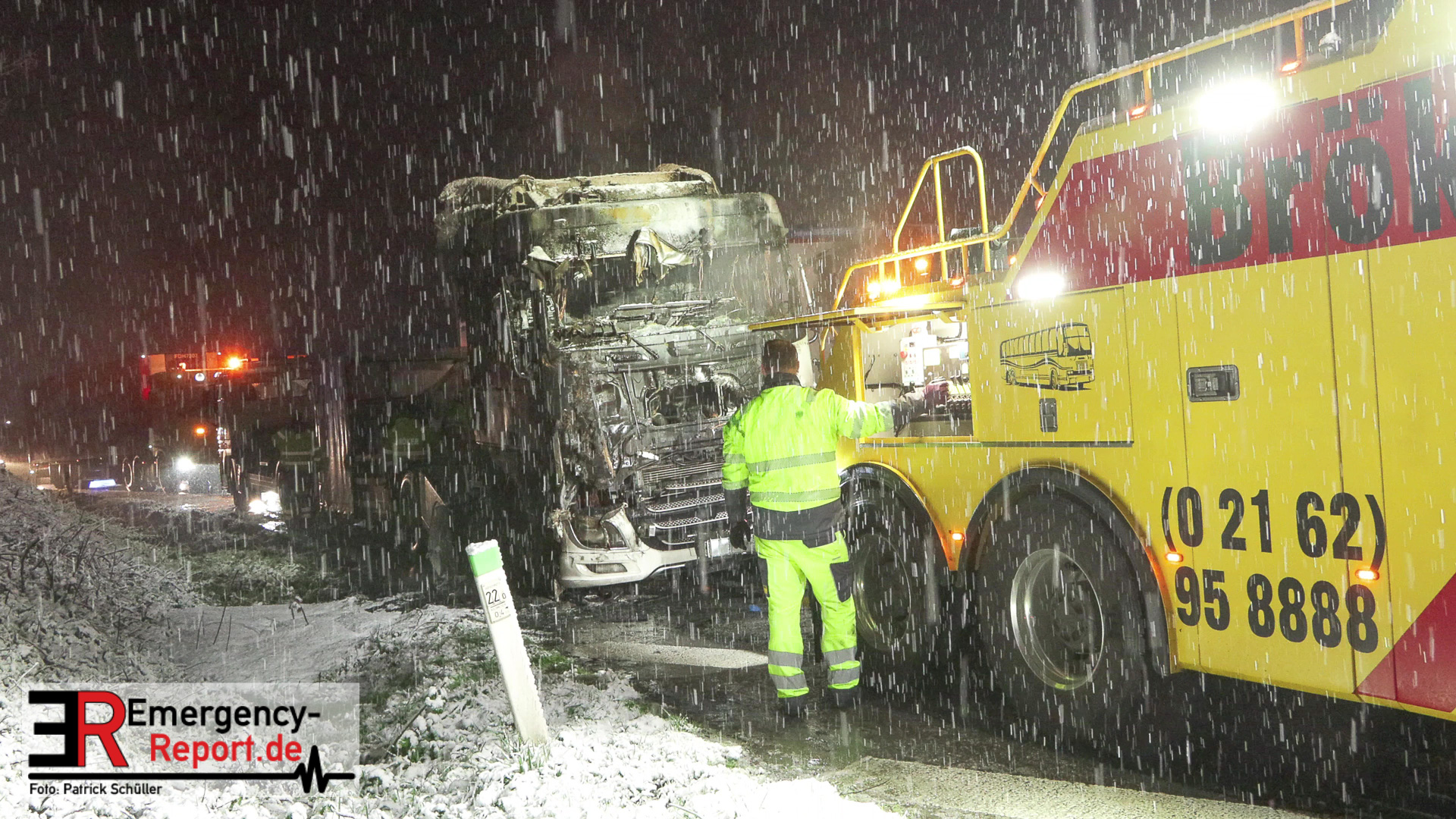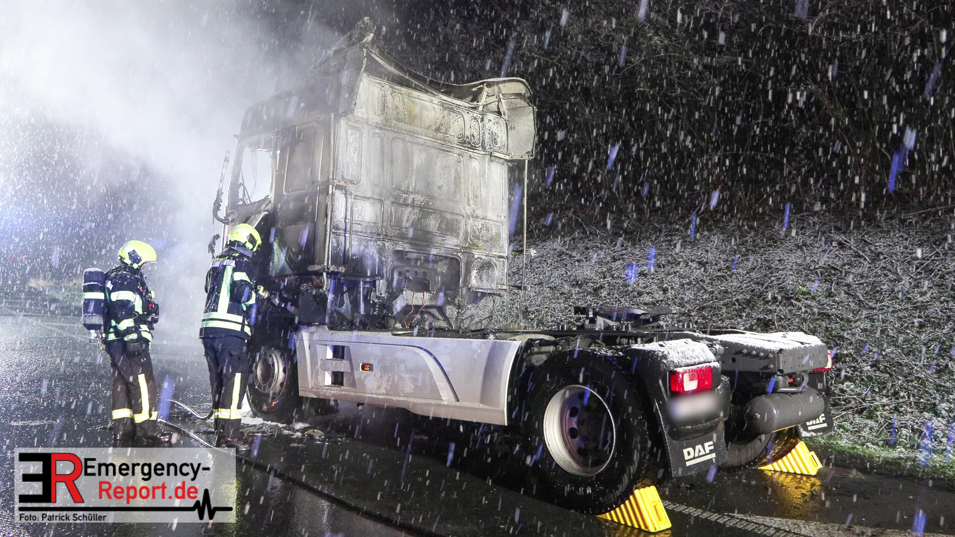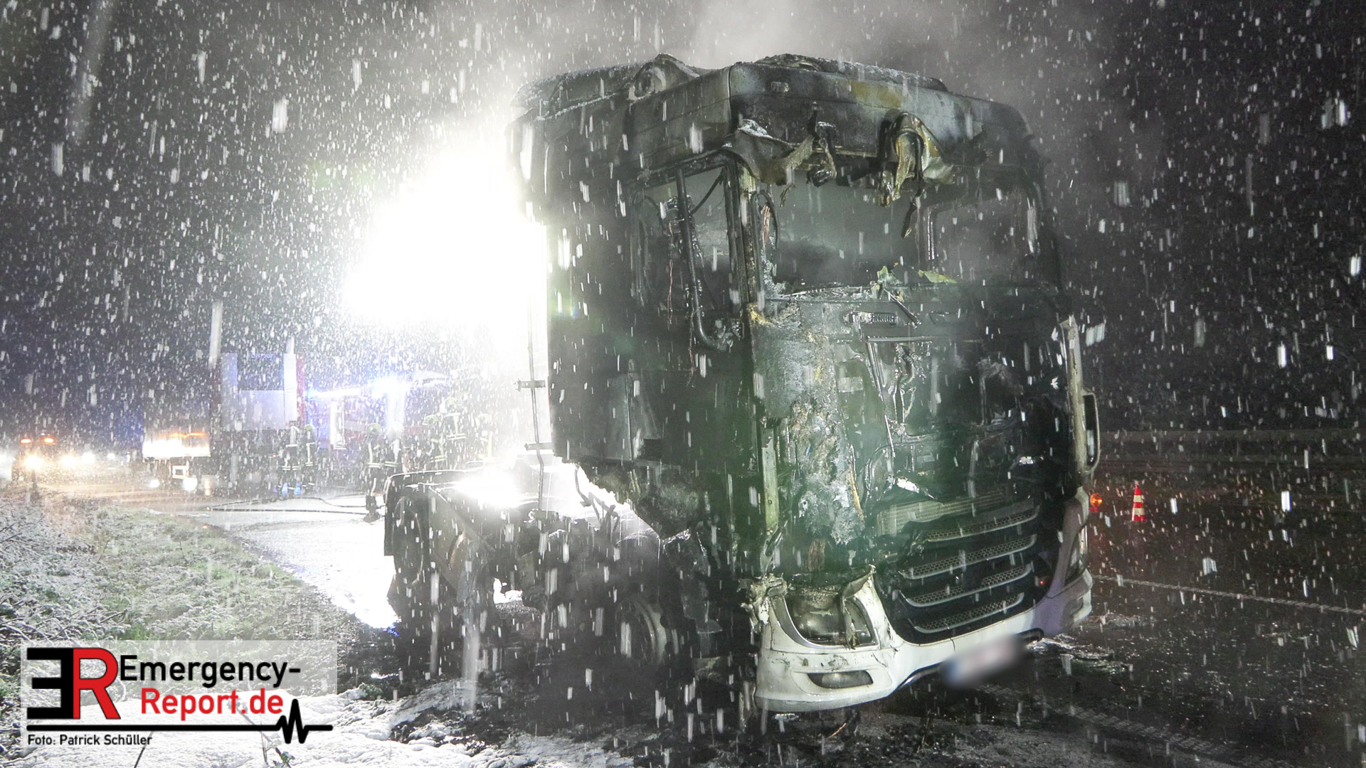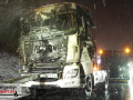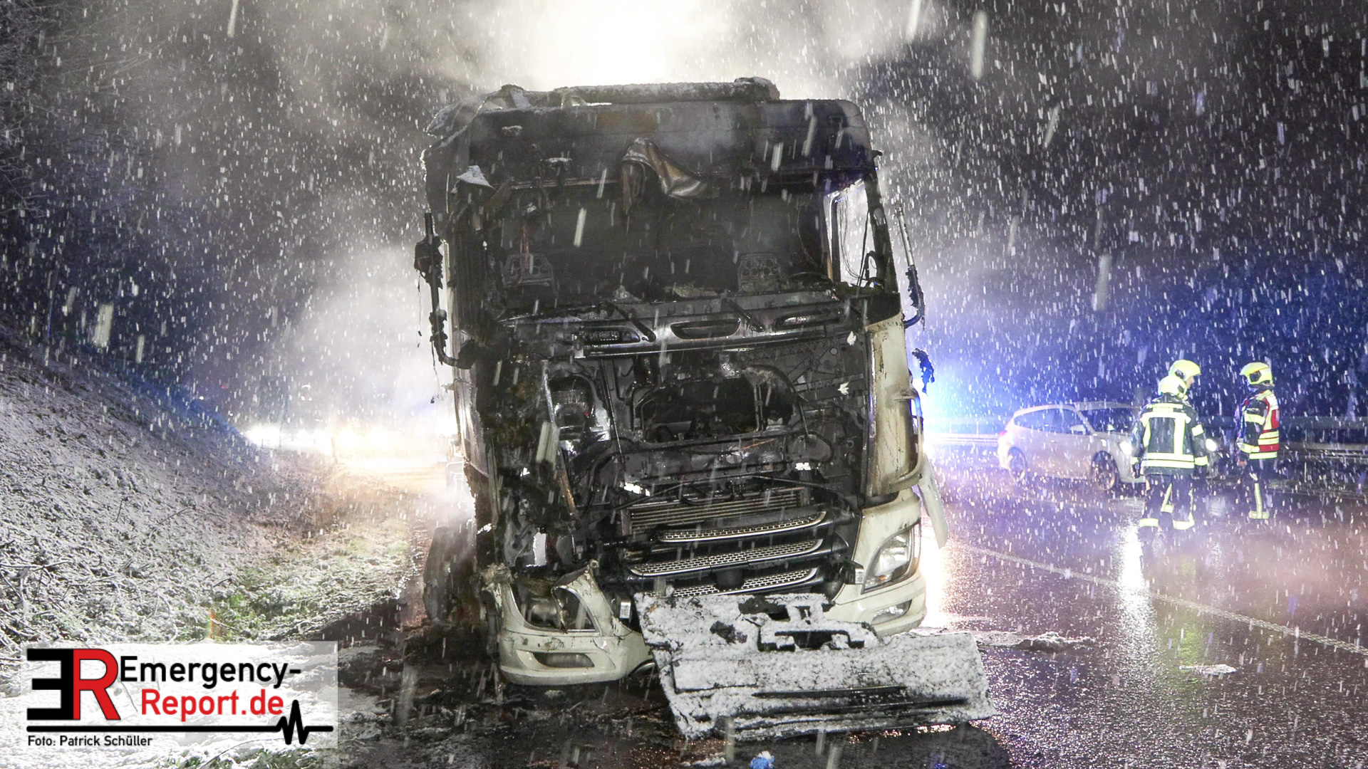 Der Fahrer des LKW bemerkte ebenso den Defekt seines Fahrzeuges und handelte geistesgegenwärtig, bevor schlimmeres passierte. Er stoppte seinen Sattelzug umgehend, kuppelte innerhalb kürzester Zeit den Auflieger von der bereits brennenden Zugmaschine ab und fuhr den Sattelschlepper mit letzter Maschinenkraft weg von dem Auflieger. Kurz danach ging die gesamte Zugmaschine in Flammen auf und stand innerhalb kürzester Zeit in Vollbrand. Der Sattelschlepper musste durch die eintreffende Feuerwehr gelöscht werden. Die Löschmaßnahmen zogen sich aufgrund immer wieder aufflackernder Glutnester über etwa eine Stunde.