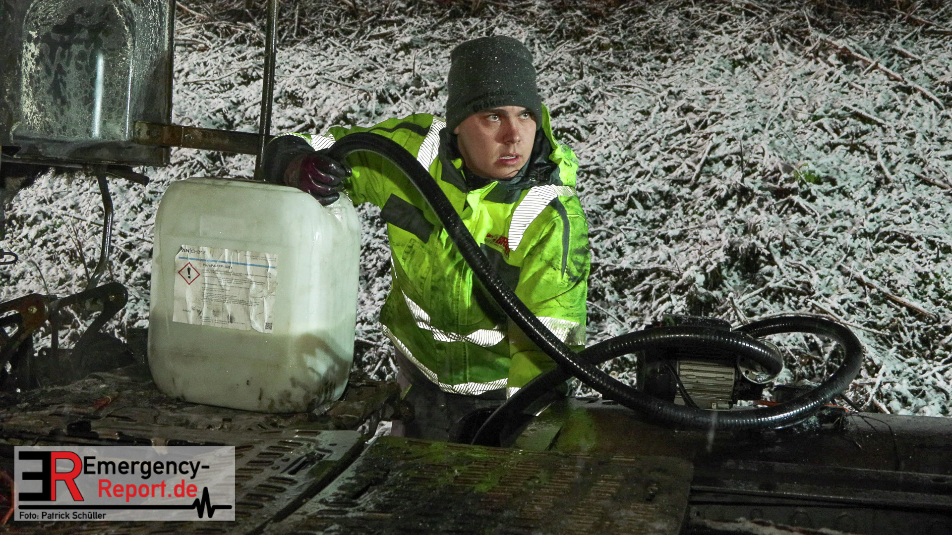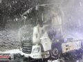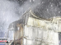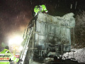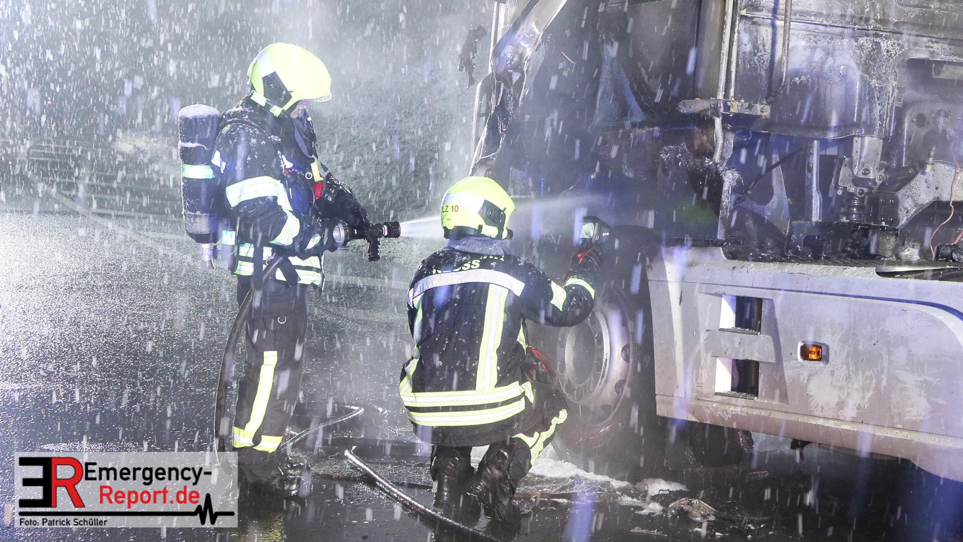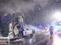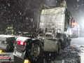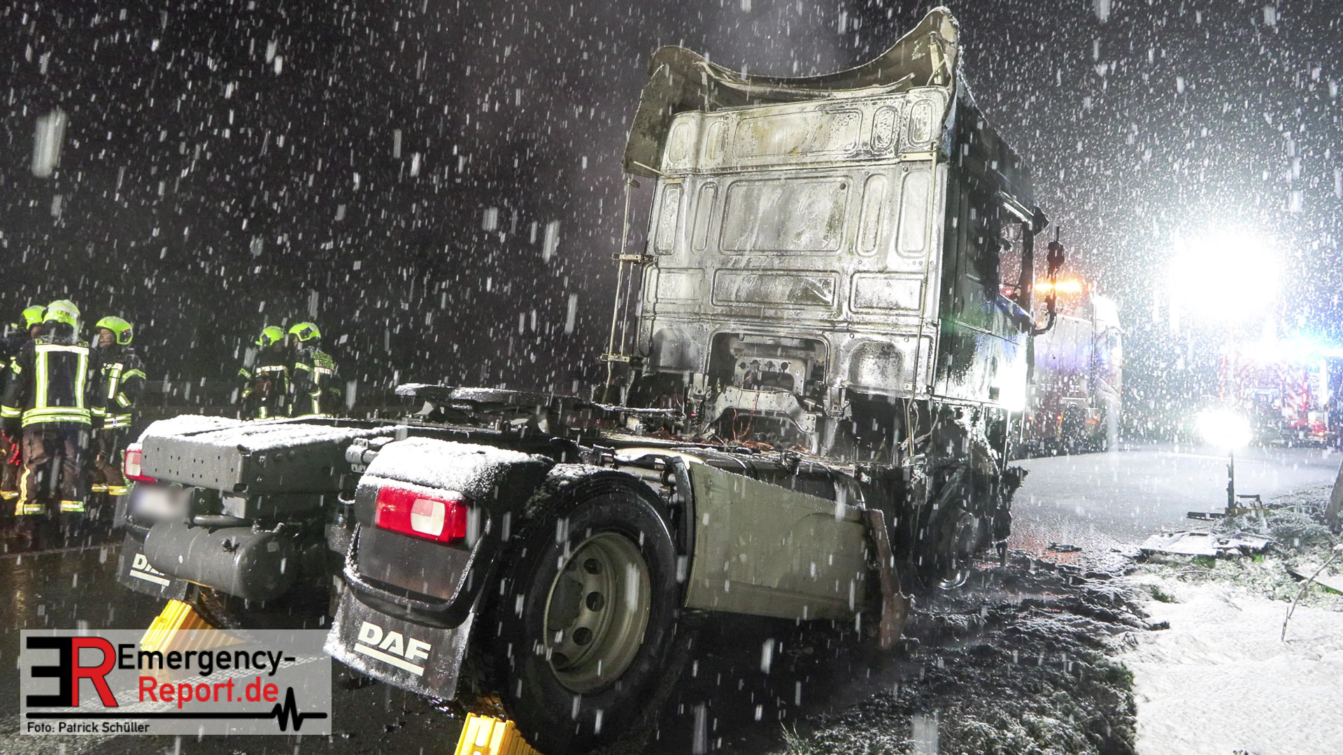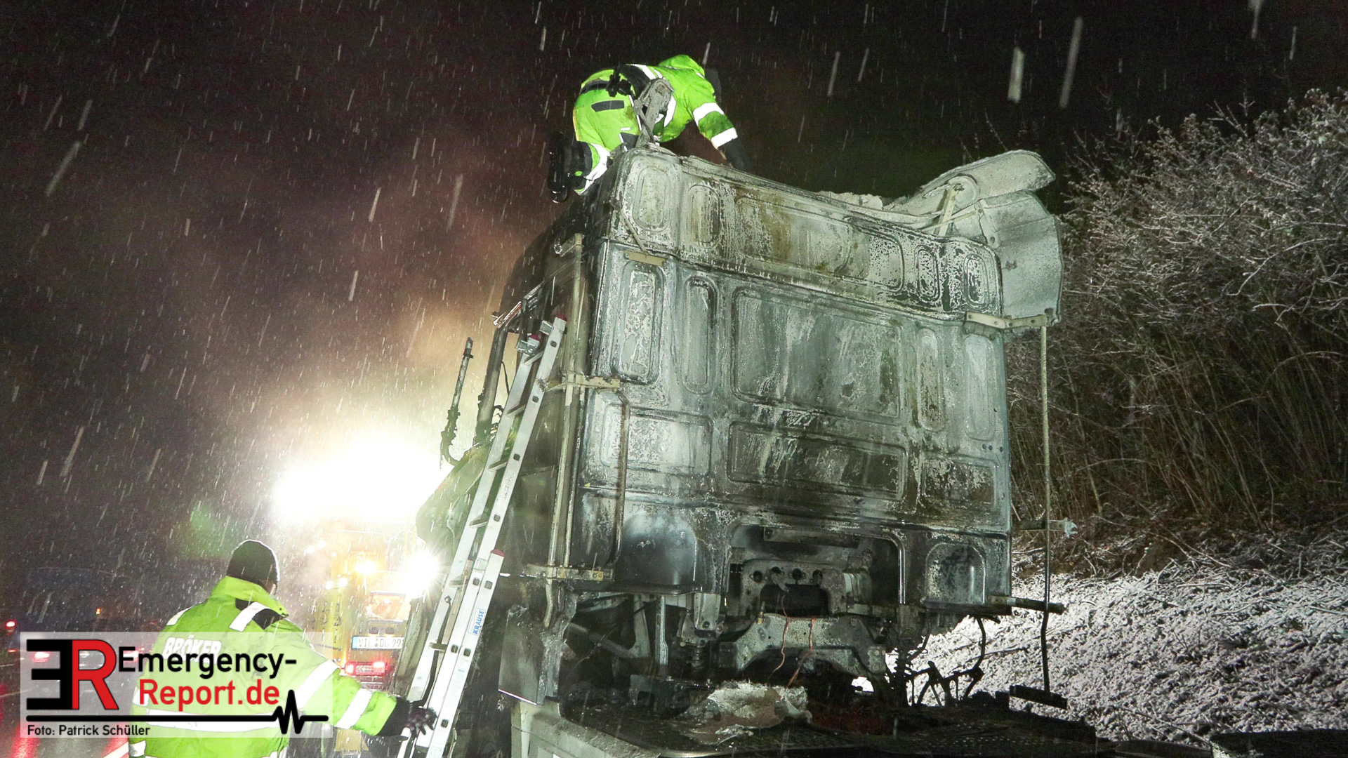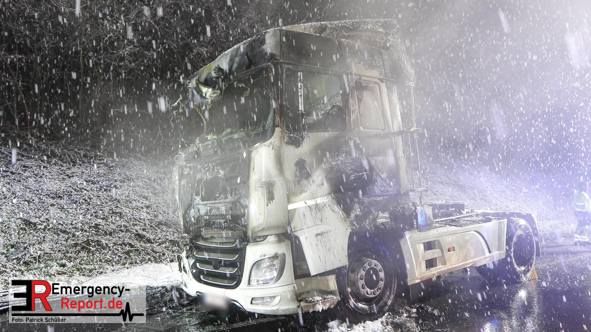Der Fahrer des LKW bemerkte ebenso den Defekt seines Fahrzeuges und handelte geistesgegenwärtig, bevor schlimmeres passierte. Er stoppte seinen Sattelzug umgehend, kuppelte innerhalb kürzester Zeit den Auflieger von der bereits brennenden Zugmaschine ab und fuhr den Sattelschlepper mit letzter Maschinenkraft weg von dem Auflieger. Kurz danach ging die gesamte Zugmaschine in Flammen auf und stand innerhalb kürzester Zeit in Vollbrand. Der Sattelschlepper musste durch die eintreffende Feuerwehr gelöscht werden. Die Löschmaßnahmen zogen sich aufgrund immer wieder aufflackernder Glutnester über etwa eine Stunde.