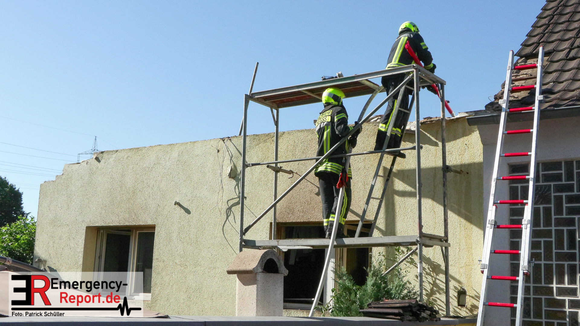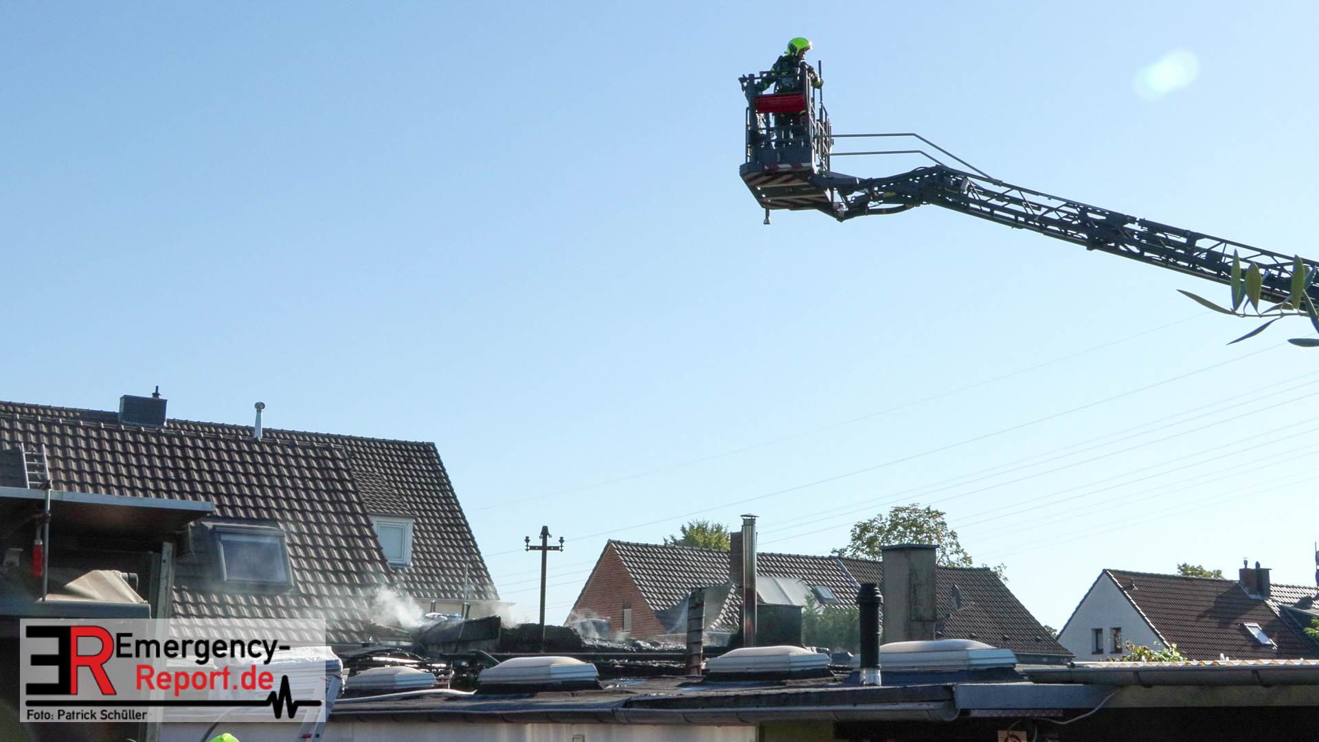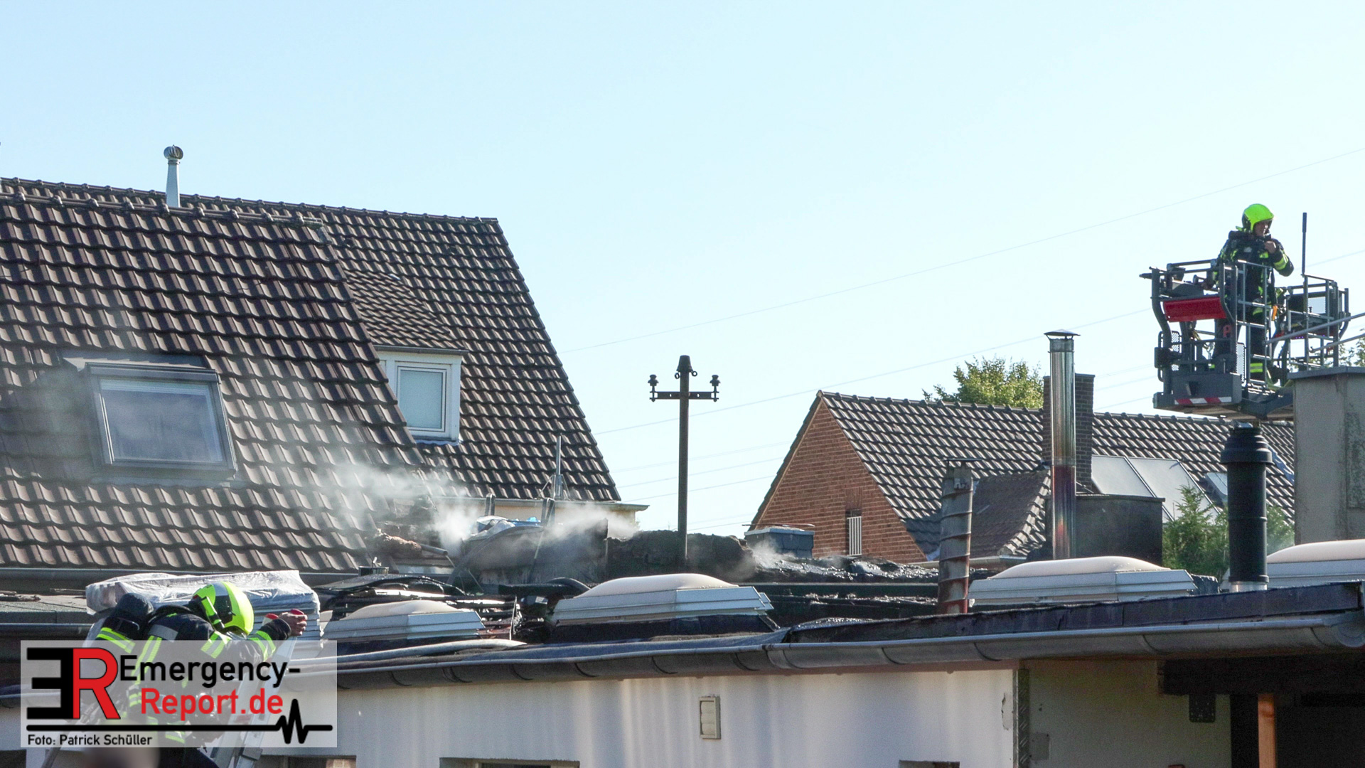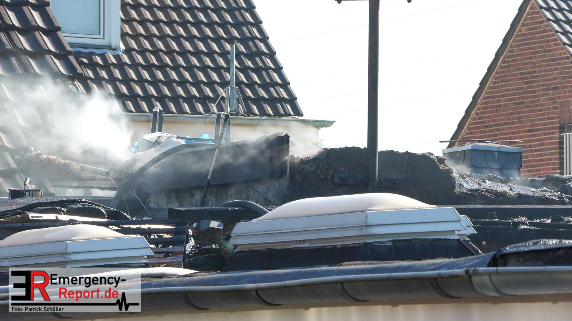Aufwändig gestaltete sich die Suche nach Glutnestern im Flachdach, da auch nicht klar war, ob das Dach nach dem Brand noch tragfähig war und somit initial nur mittels Drehleiter Teile des Dachs geöffnet werden konnten.