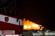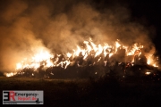 Die Feuerwehr Neuss wurde am 07.10.2018 gegen 01:30 Uhr auf den Berger Weg alarmiert. Anrufer meldeten eine brennende Strohmiete auf einem Feld. Bei Eintreffen der Feuerwehr standen 200 Strohballen bereits im Vollbrand. Die Einsatzkräfte entschieden sich dafür die Ballen kontrolliert niederbrennen zu lassen. Der Löschzug Holzheim der freiwilligen Feuerwehr war vor Ort und überwachte das Feuer.
