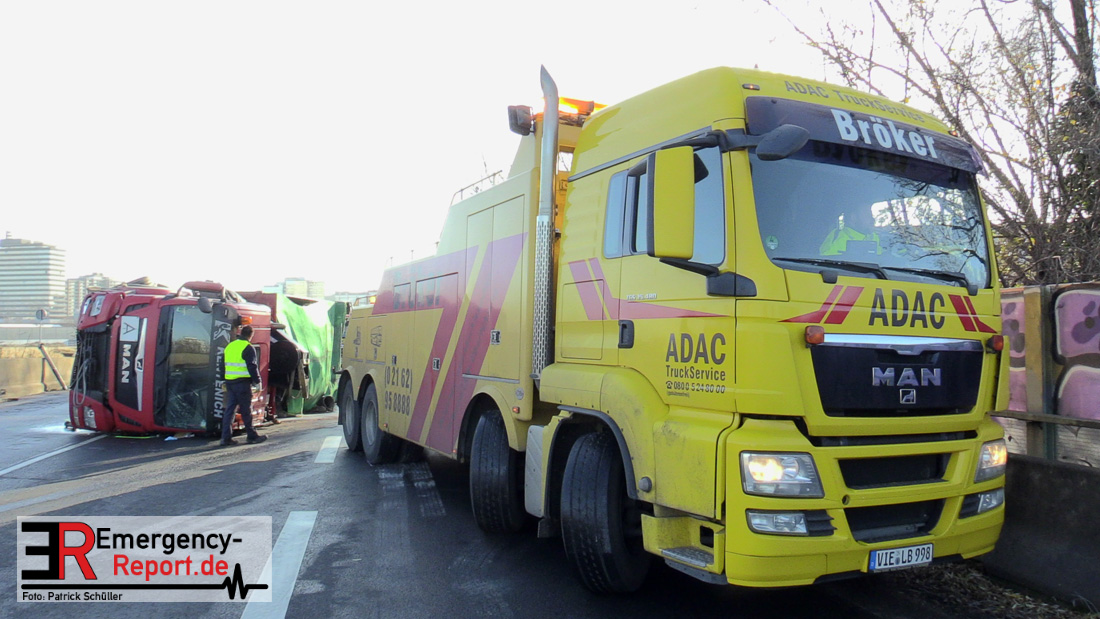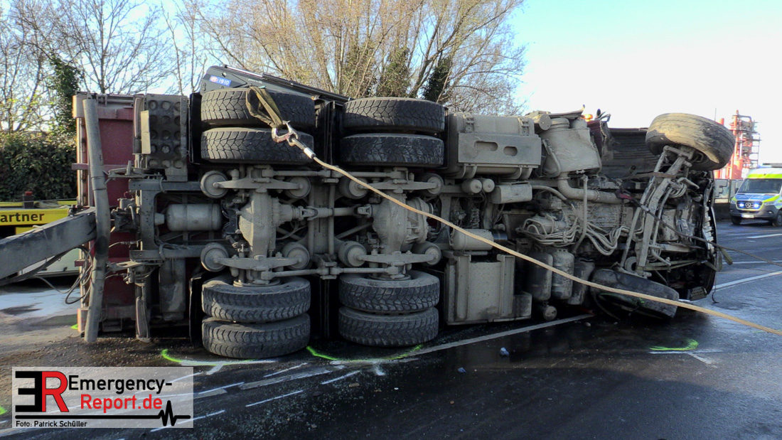 Am Dienstag (7.12.), gegen 10:40 Uhr, erhielt die Polizei Kenntnis von einem, aus bisher ungeklärter Ursache, umgekippten Lastwagen auf dem Willy-Brandt-Ring in Neuss.