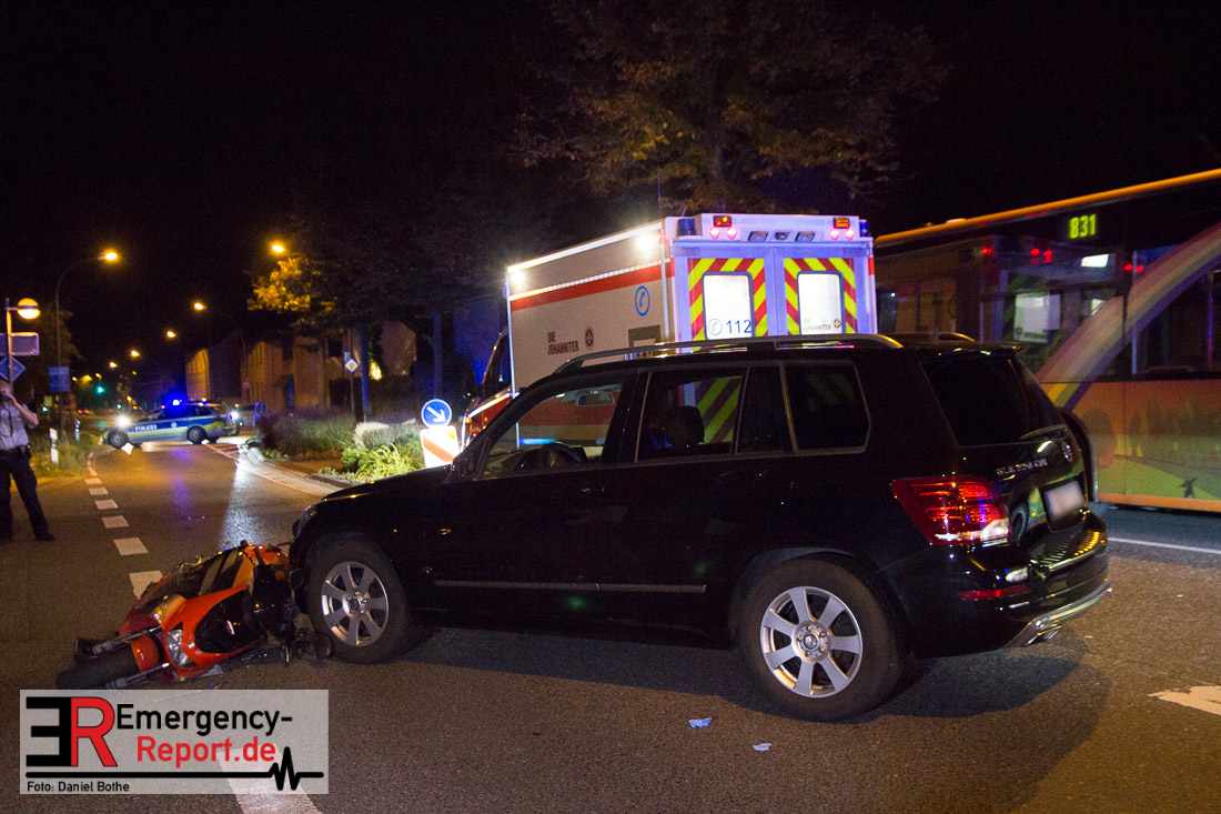 Der Fahrer des Kraftrades wurde hierbei verletzt und unter notärztlicher Begleitung in ein Krankenhaus transportiert.