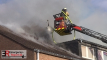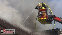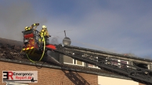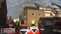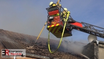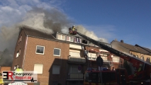 Beim Eintreffen der ersten Einsatzkräfte brannte der Dachstuhl eines Mehrfamilienhauses in voller Ausdehnung. Die Bewohner hatten das Haus glücklicherweise bereits unverletzt verlassen können. Die Feuerwehr konnte ein Übergreifen des Feuers auf eine angrenzendes Einfamilienhaus verhindern.