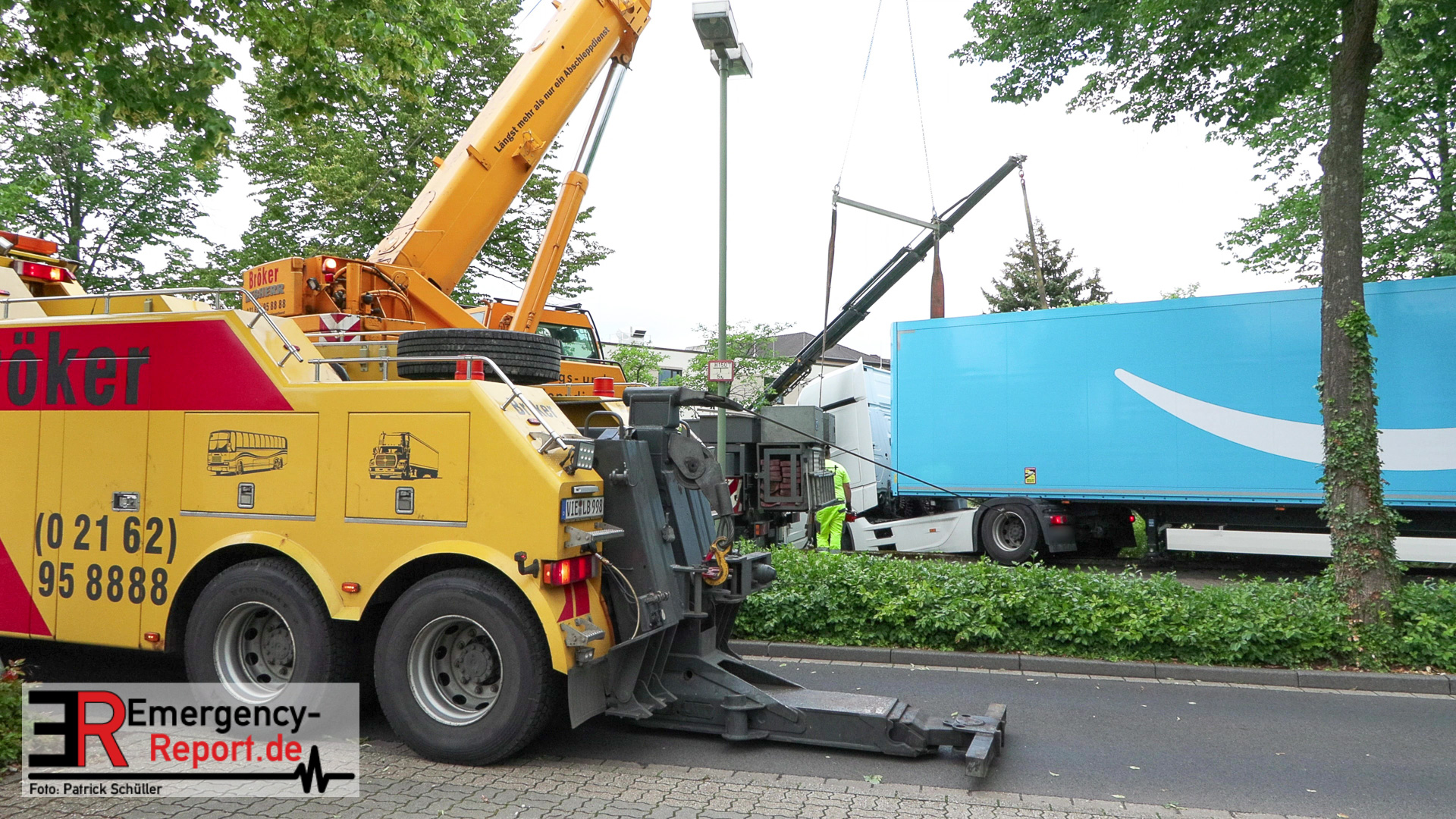 Am Donnerstagvormittag (09.06.2022), gegen 11:15 Uhr, befuhr ein 39 Jahre alter Fahrer eines Sattelzuges die Claudiusstraße in Richtung Uerdinger Straße. Auf Höhe des St.-Elisabeth-Hospitals kam der Fahrer nach rechts von der Fahrbahn ab. Der Sattelzug überfuhr zunächst den Geh- und Radweg, durchbrach einen Zaun und wurde schließlich von einem Baum gestoppt.