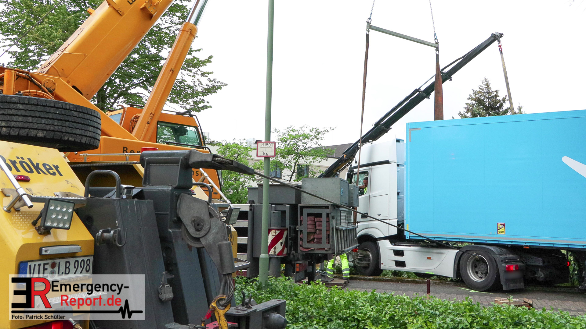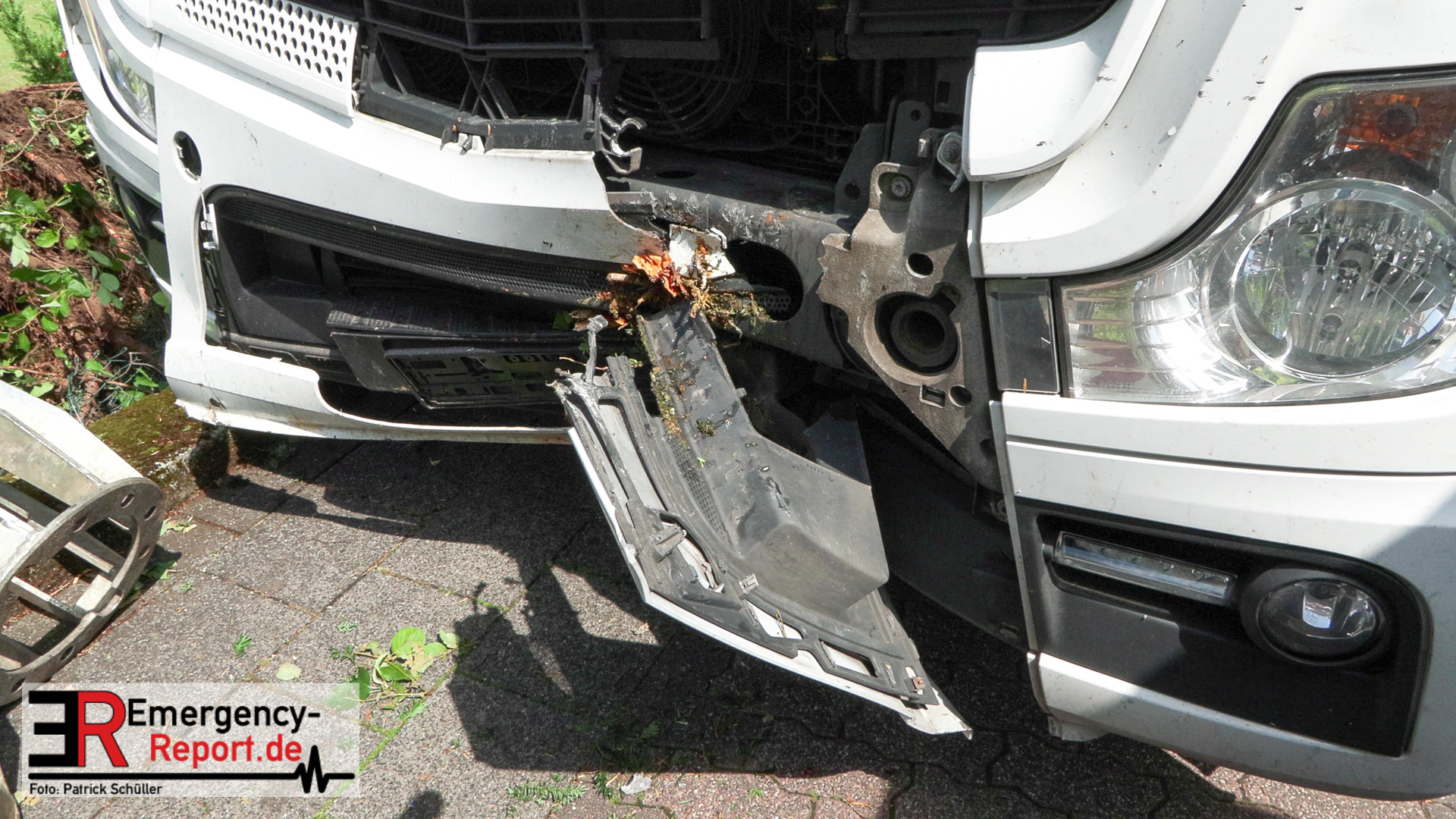 Die im Frontbereich beschädigte Sattelzugmaschine wurde durch ein Abschleppunternehmen geborgen.