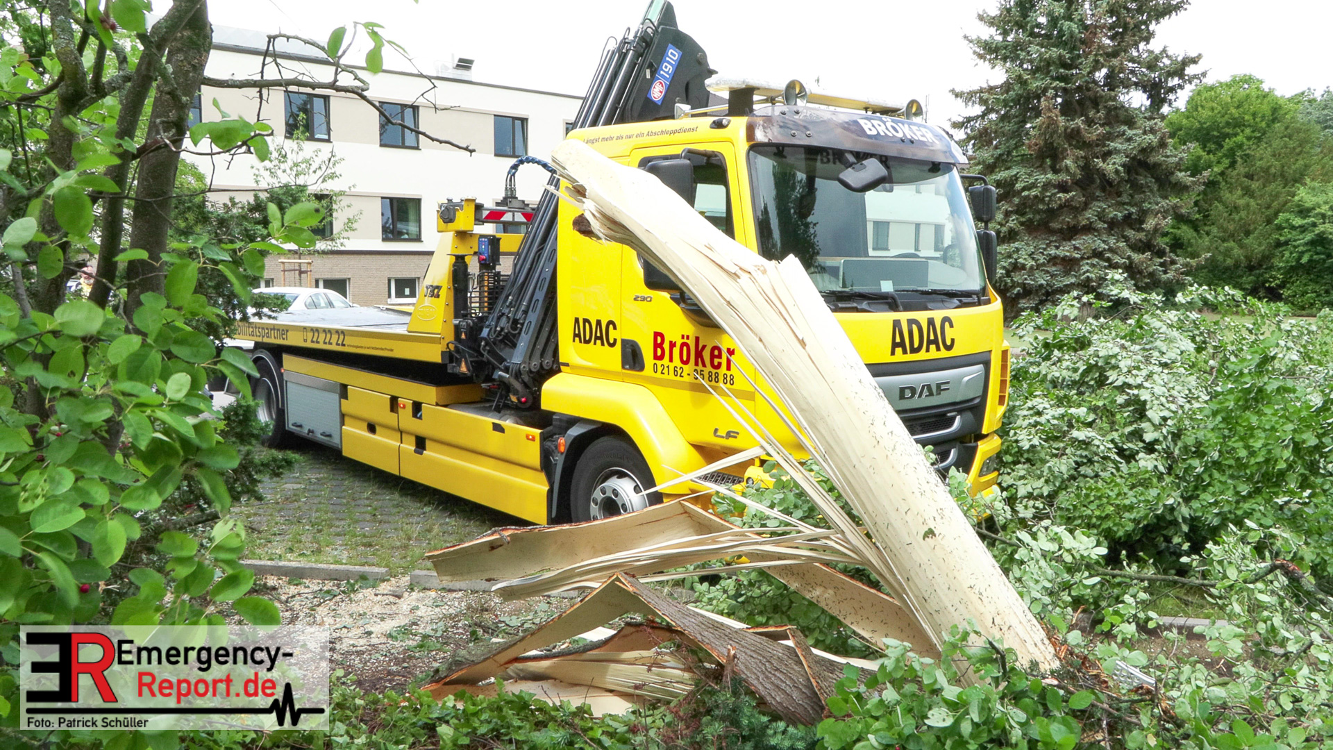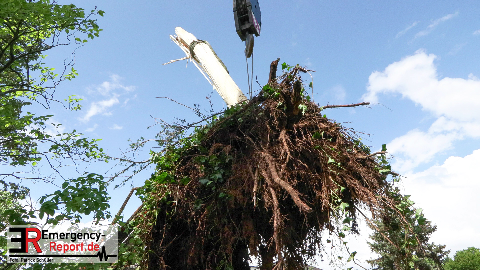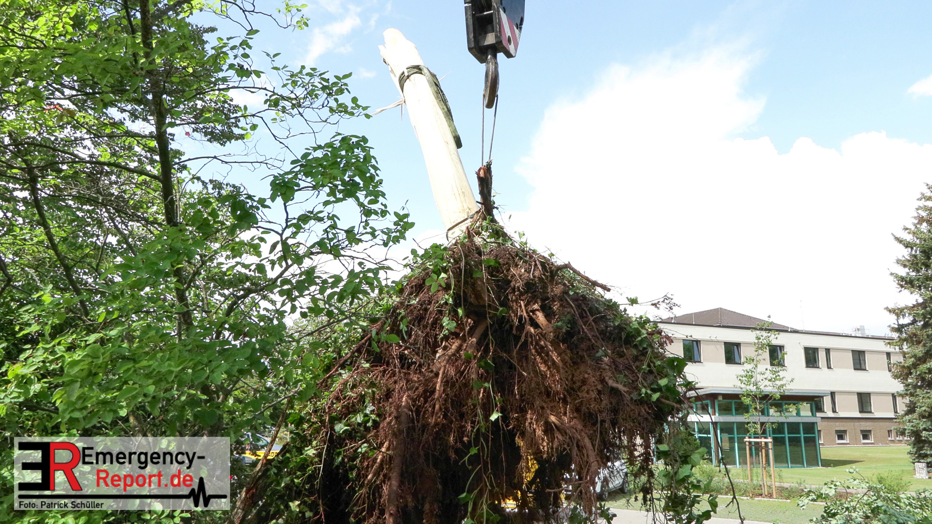 Der Stamm des angefahrenen Baumes knickte ab. Äste und Blätter bedeckten vier auf dem Gelände des Hospitals geparkte Fahrzeuge, beschädigten diese aber nicht.