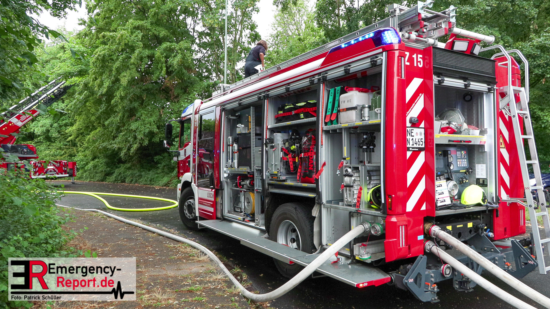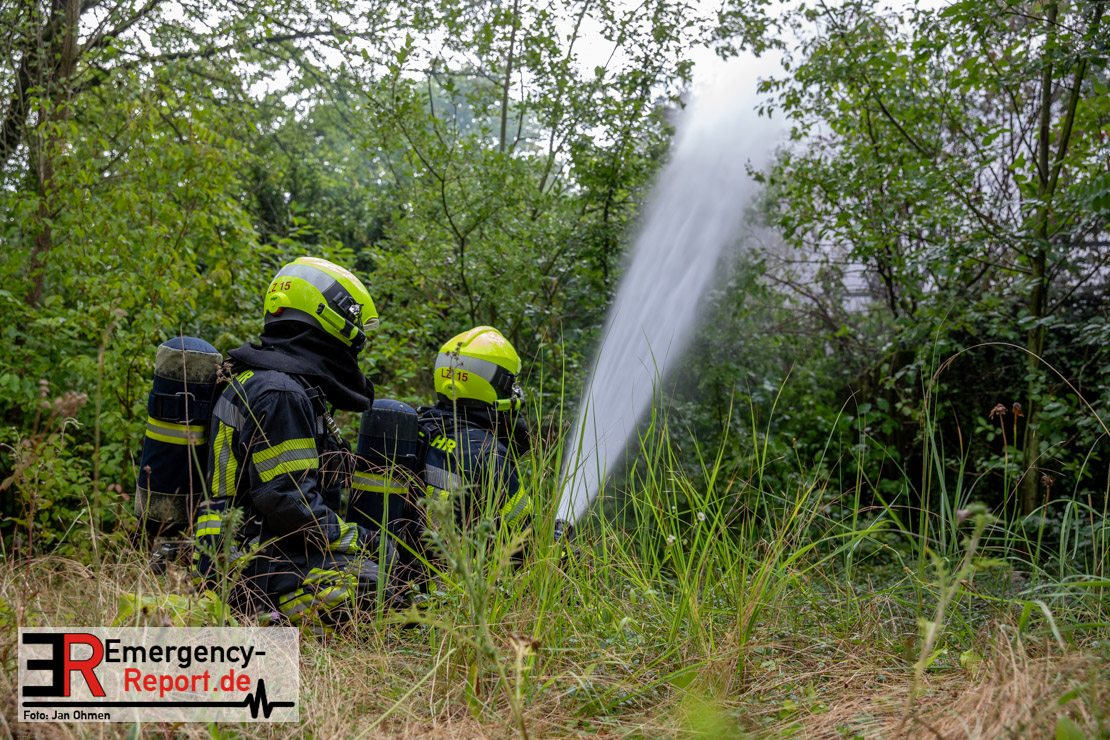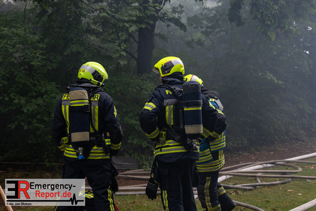 Polizei und Feuerwehr wurden am Sonntag (09.07.2023), gegen 17:30 Uhr, zu einem Tennisheim an der Parisstraße in Neuss alarmiert. Den Einsatzkräften wurde ein Vollbrand des Gebäudes gemeldet.