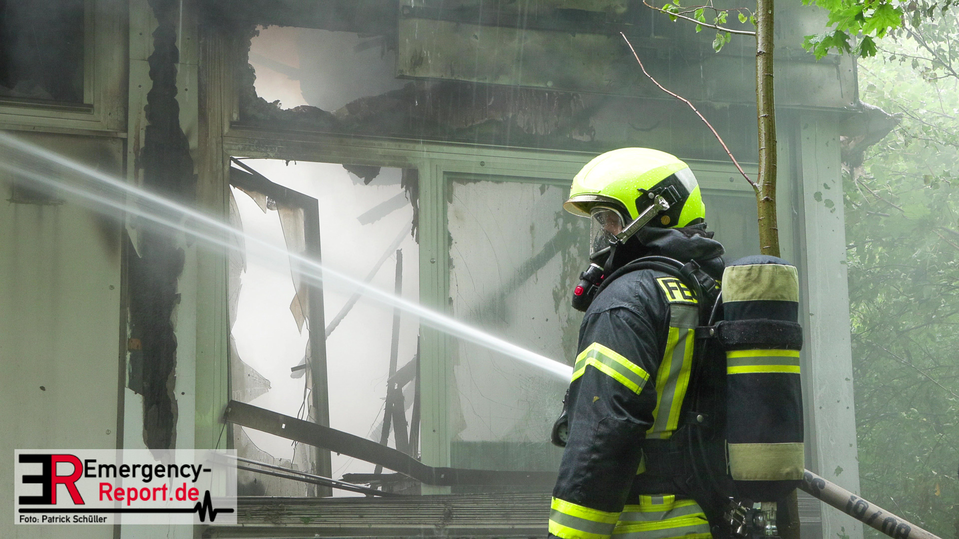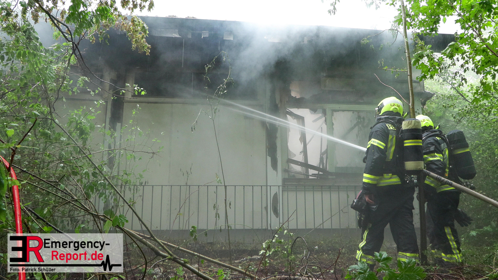 Bei Eintreffen der Beamten brannte das Gebäude lichterloh, eine Rauchsäule war auch im weiten Umkreis sichtbar.